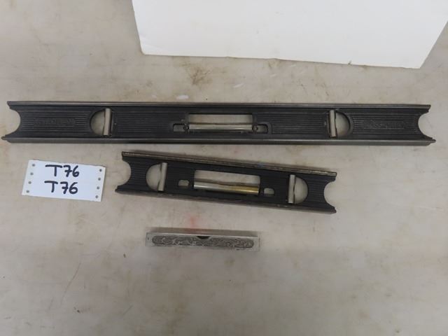 3 Vintage Antique Metal Spirit Levels; Wooden one is a Winchester 18” 98-08-18 + Longest metal 18” Made by the M.W. Robinson Co. No. 8 from New York + (3rd) is metal 12” - made by the Springfield level and tool Co with very elaborate metal scrolling.
