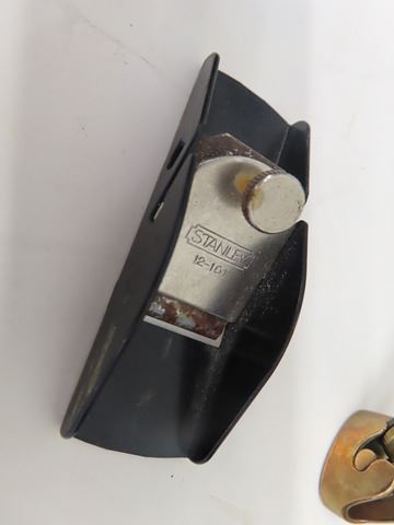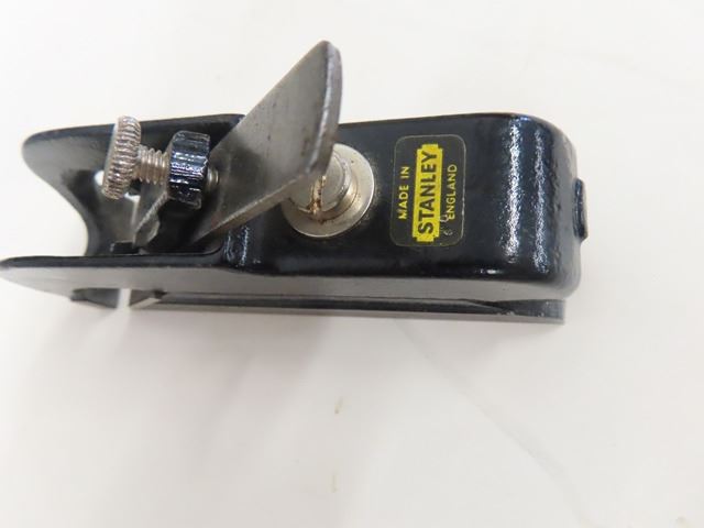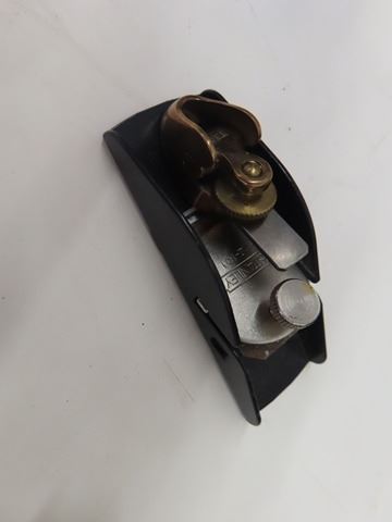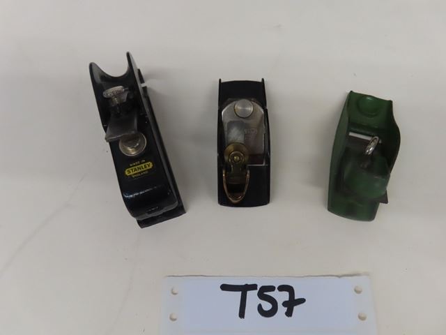 3 Vintage Antique Small Planes: Largest at 4” is a Stanley Bullnose Plane - No. 75 with original sticker - appears unused + (2nd) 3.5” is a Stanley No.12-101 + (3rd) 3.5" is a very small green-no maker’s mark but has the number 5 on top & smallest of the planes at 1” or (2” with the blade) is a tiny violin Plane made by IBEX.