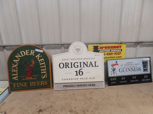 3 Vintage Beer Signs from Local Winnipeg Pub ; Alexander Keiths ( Wooden) , Great Western Brewing ( Wooden), Guiness Brewers - Light Up St Patrick's Day Countdown Sign