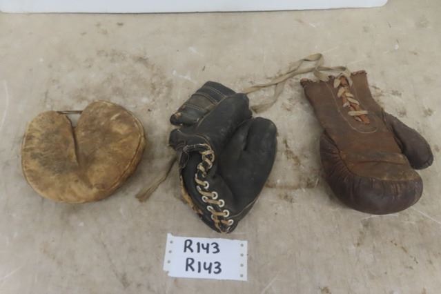 3 Vintage Child's Sports Gloves ; Baseball, Back Catcher, Boxing