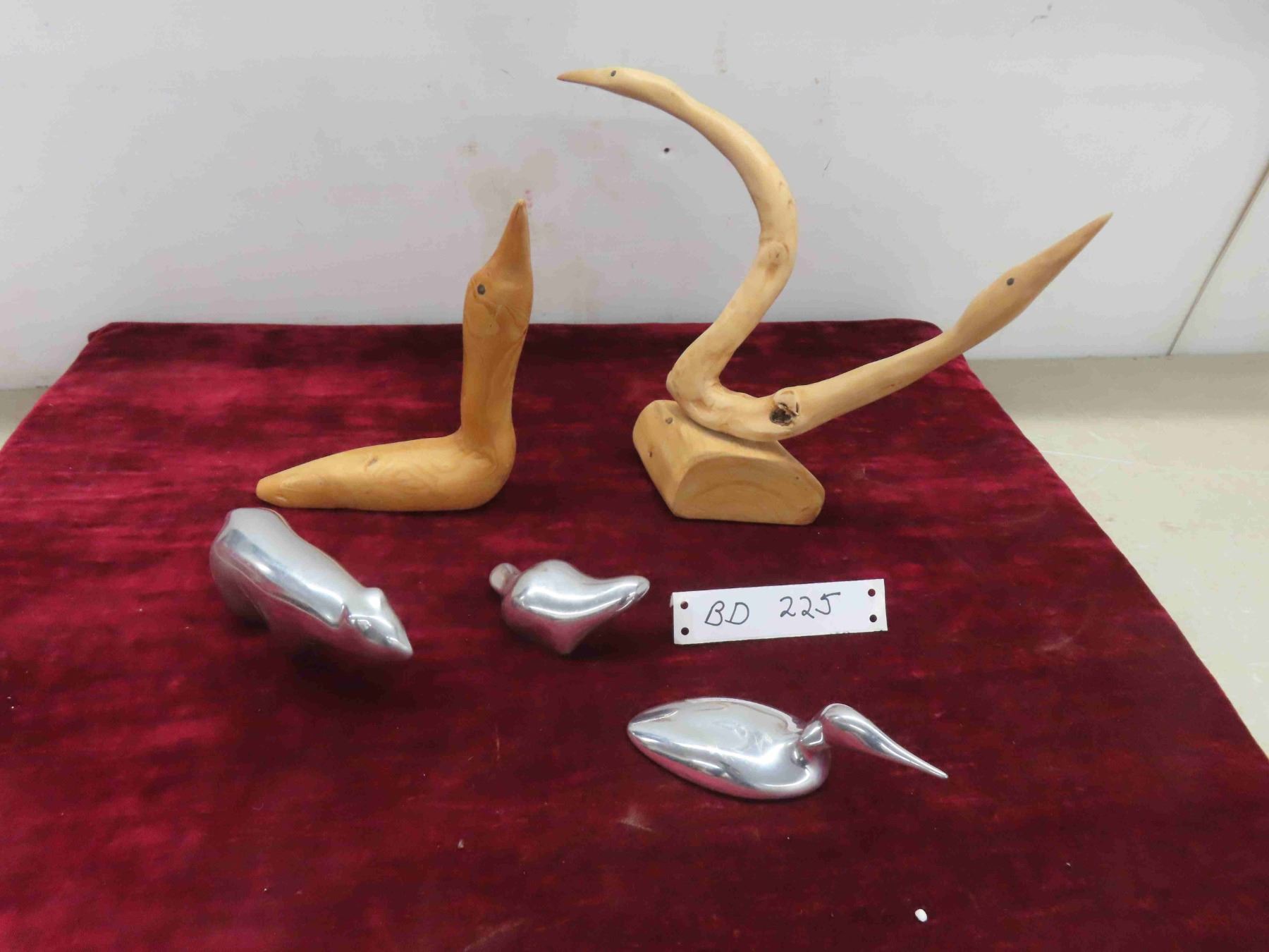 3 Vintage Chrome Sculptures by Artist Hoselton #1554, 860, +1 , Canadian Artist, Plus 2 Wood Carvings by Alex Mowatt