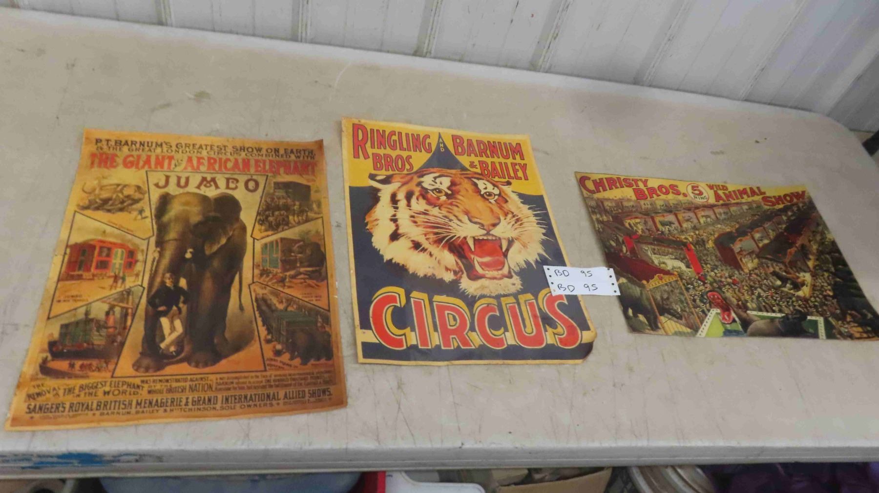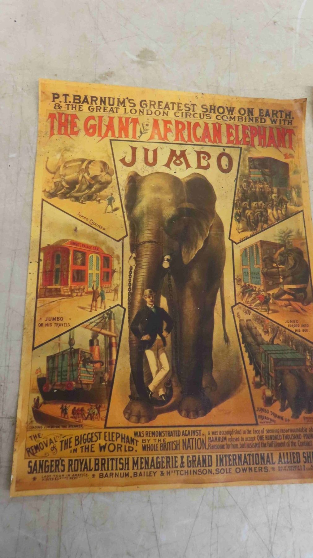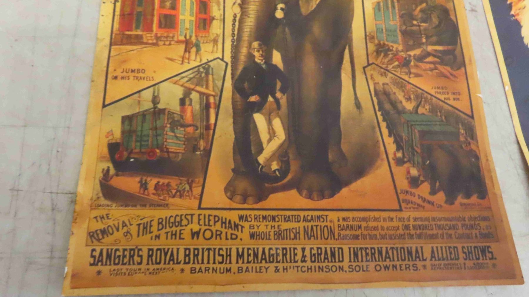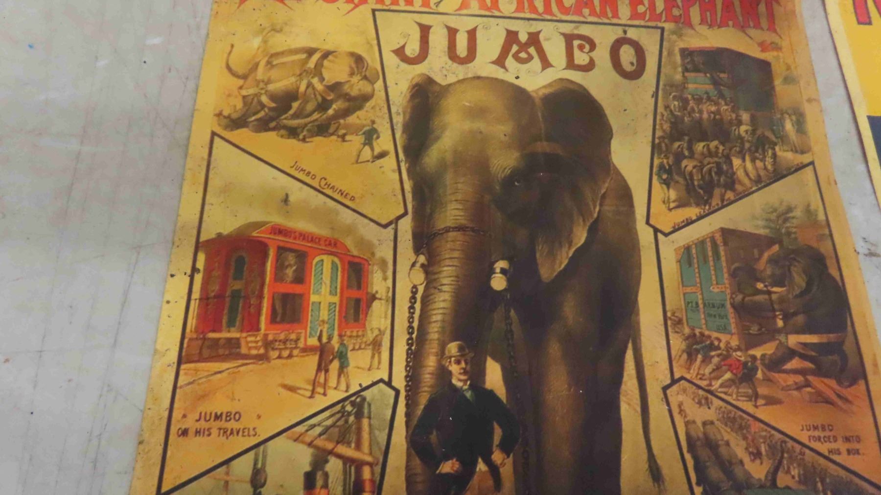 3 Vintage Circus Posters 'Jumbo the Elephant' , 'Barnum and Bailey', 'Caristy Bros'