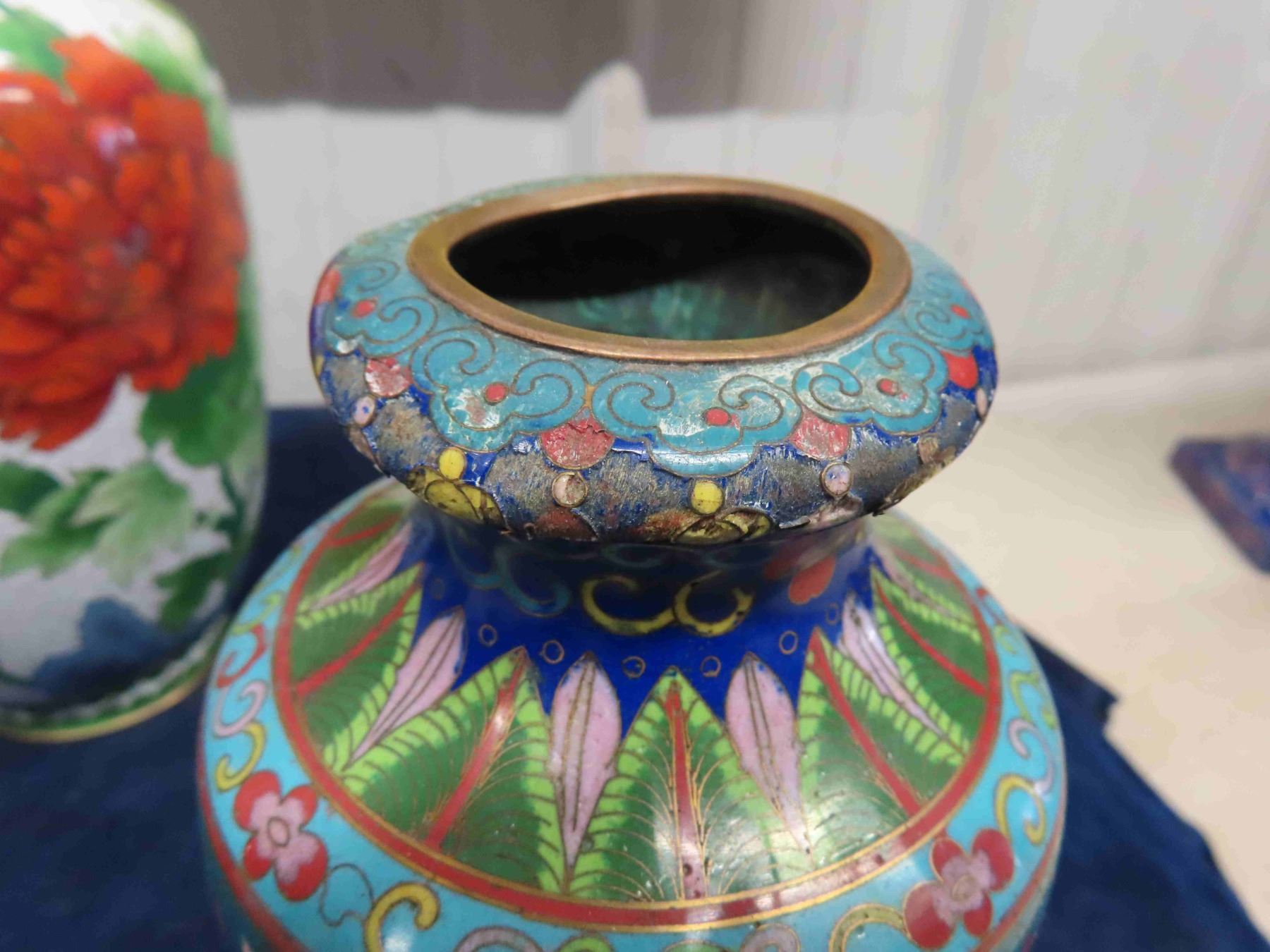 3 Vintage Cloisonne Vases - 2 Matching Floral 12" Tall & Oriental Dragon