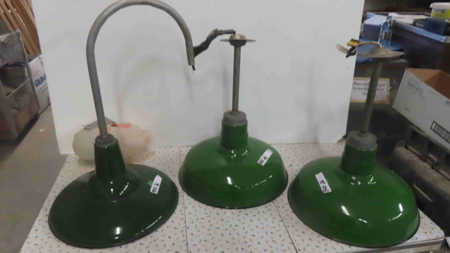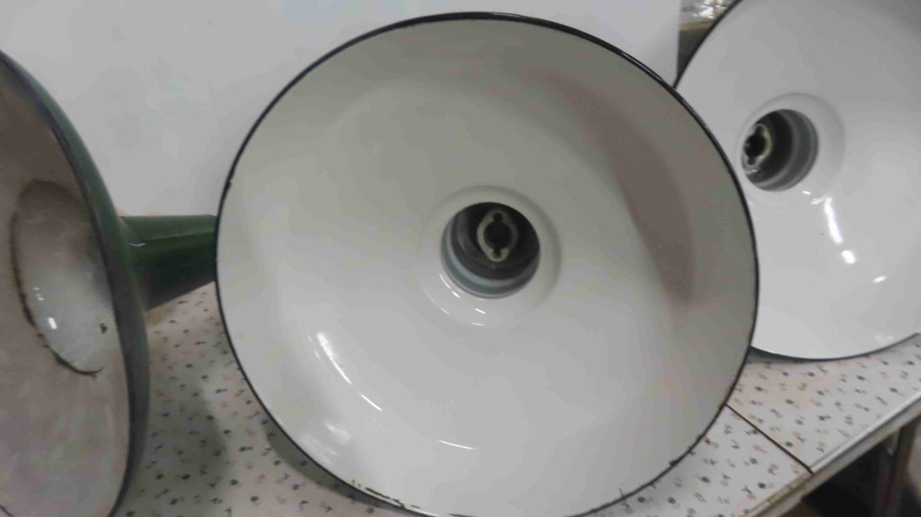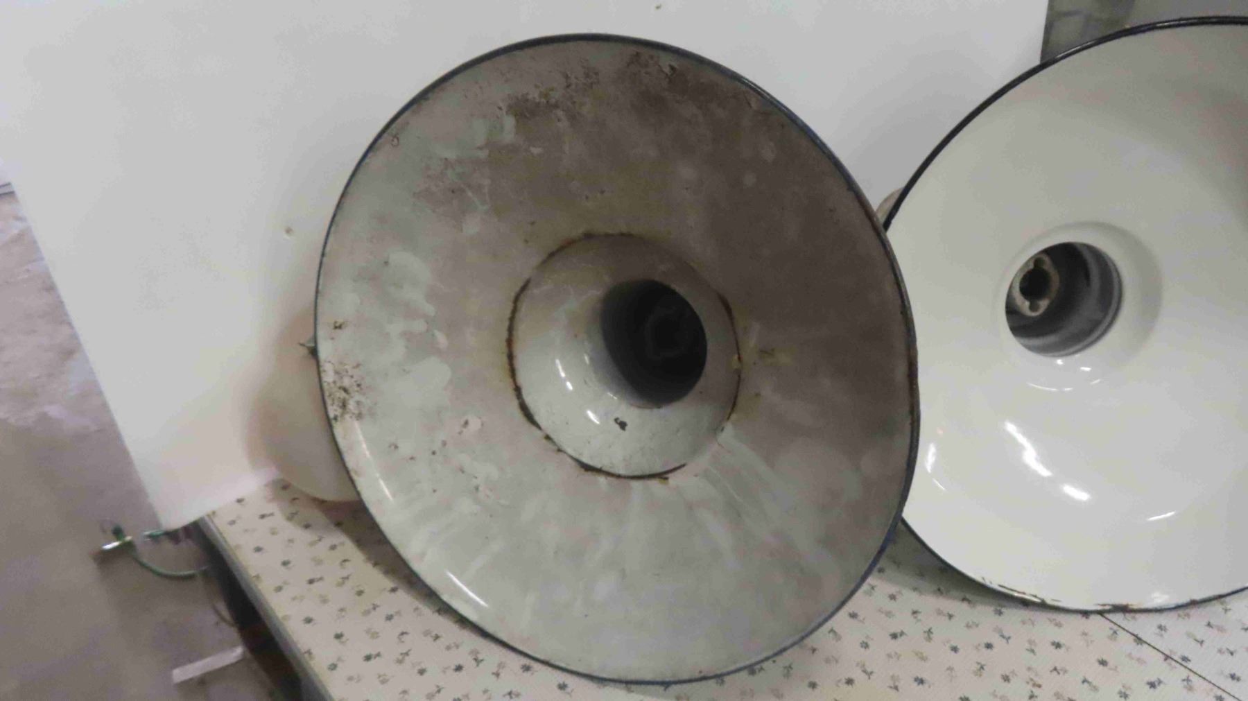 3 Vintage Gas Station/Service Station Metal Porcelain Light Shades 16'' Diameter - Very Good Condition