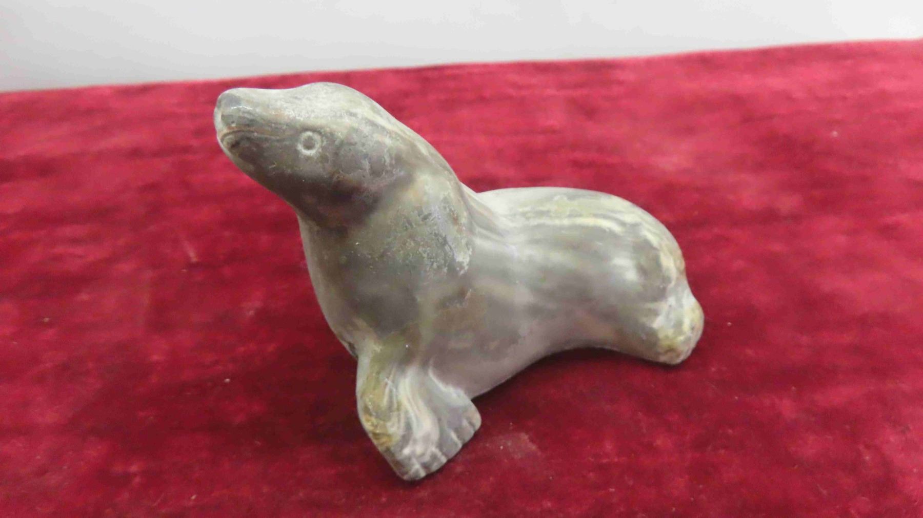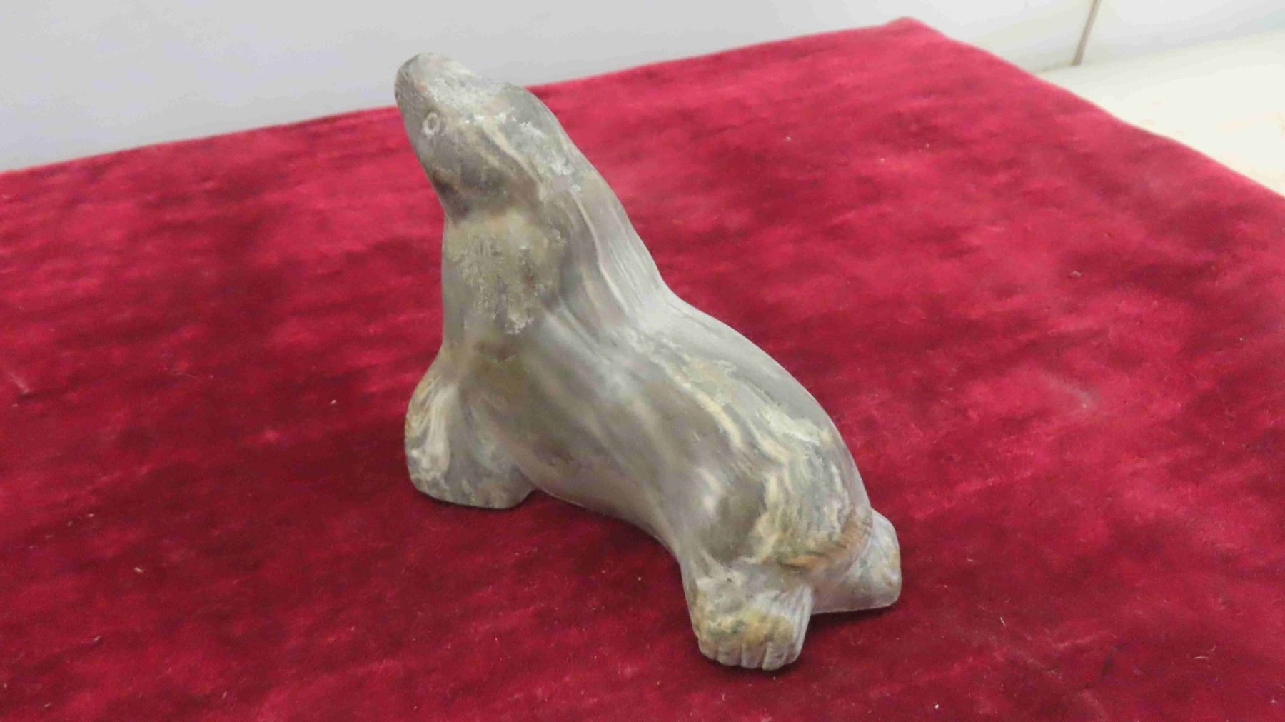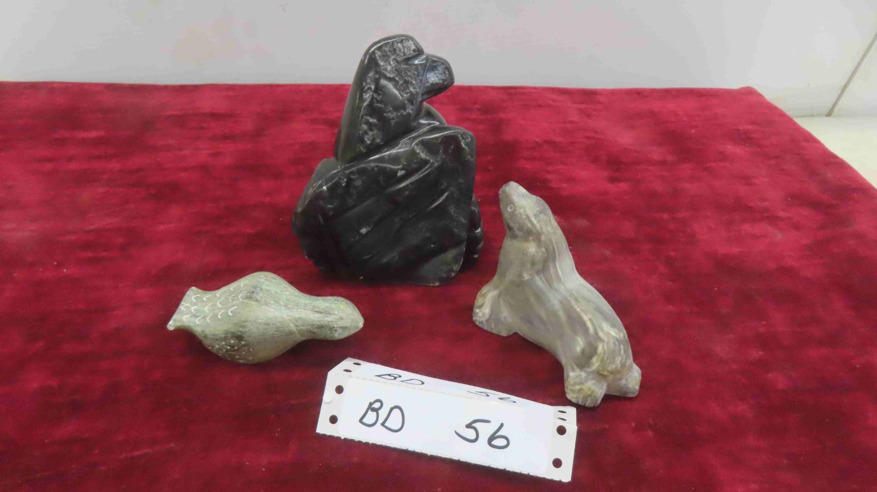 3 Vintage Inuit First Nations Soapstone Carvings : Large Eagle (Signed) , Small Seal (Signed), Large Molded Seal