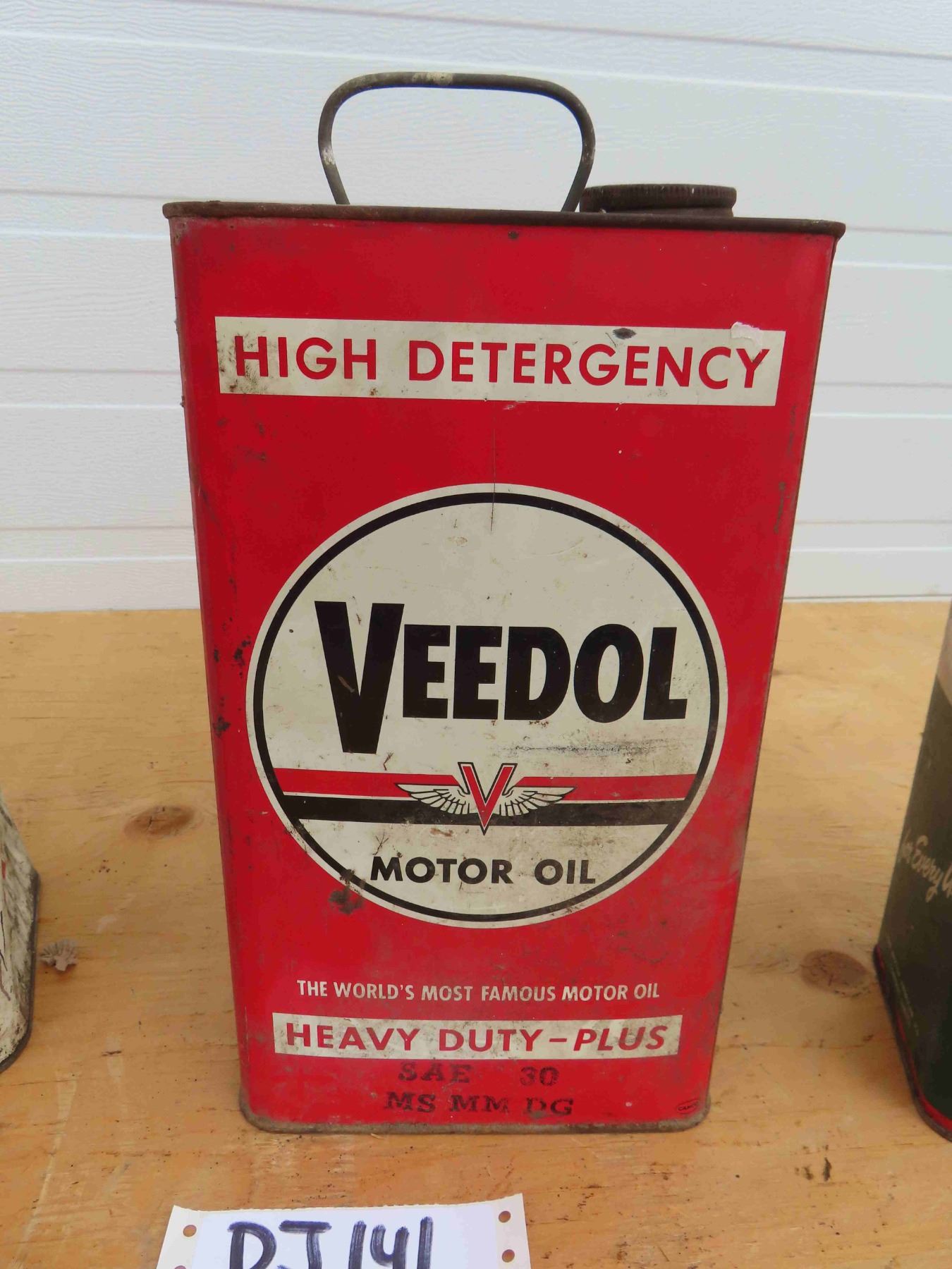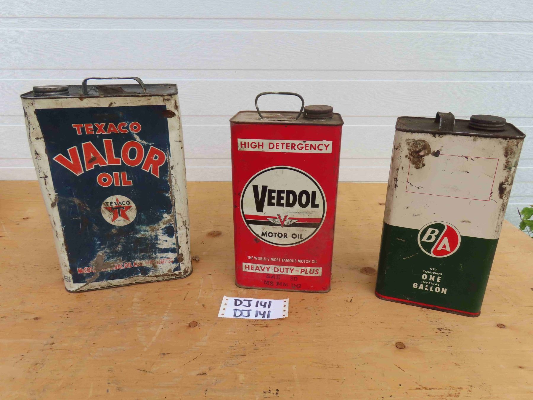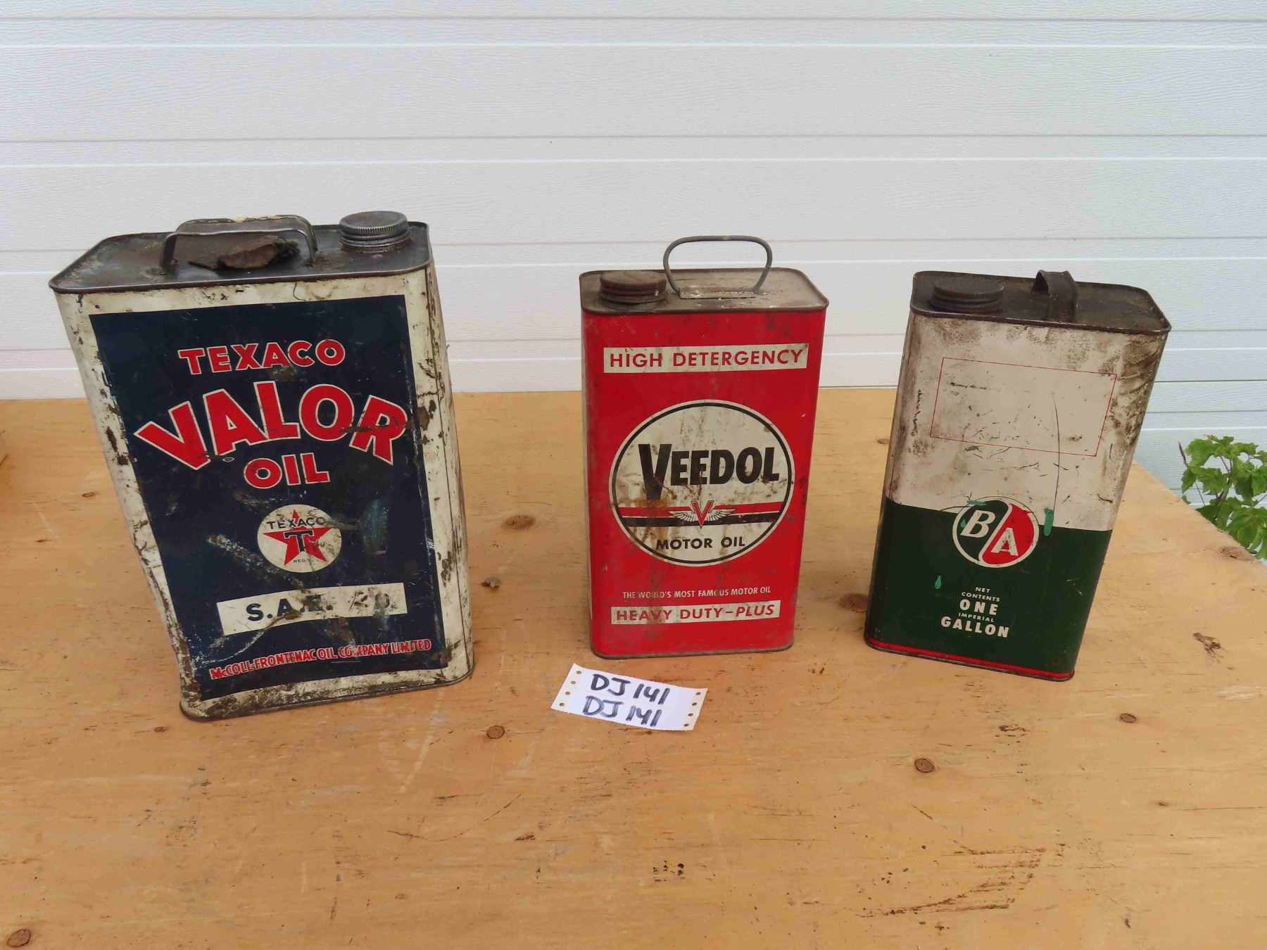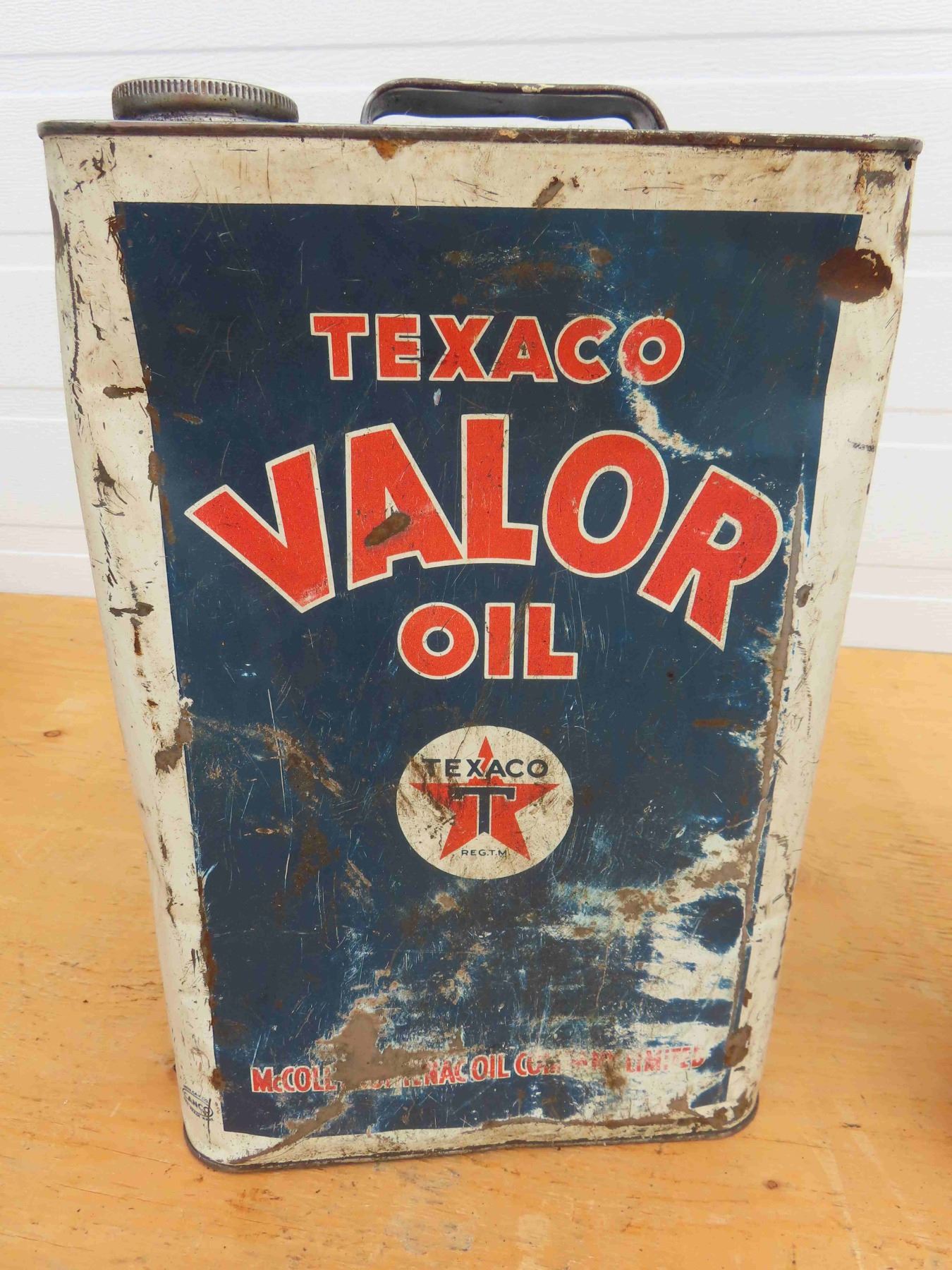 3 Vintage Oil Tins - Texaco Valor 2 Gal , Veedol and British American 1 Gal