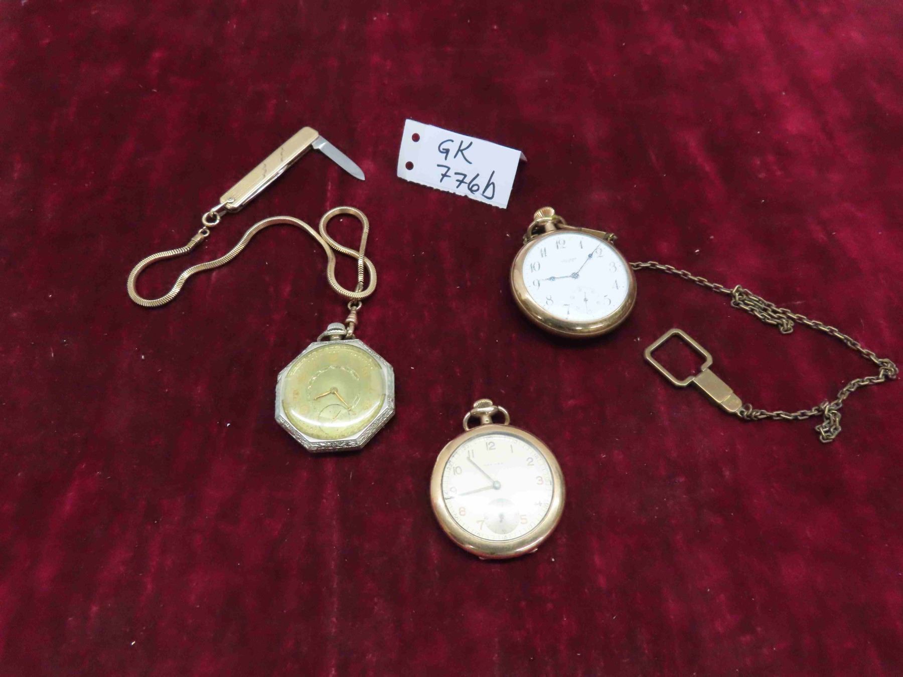 3 Vintage Pocket Watches , 2 with Chains , 1 with Pocket Knives