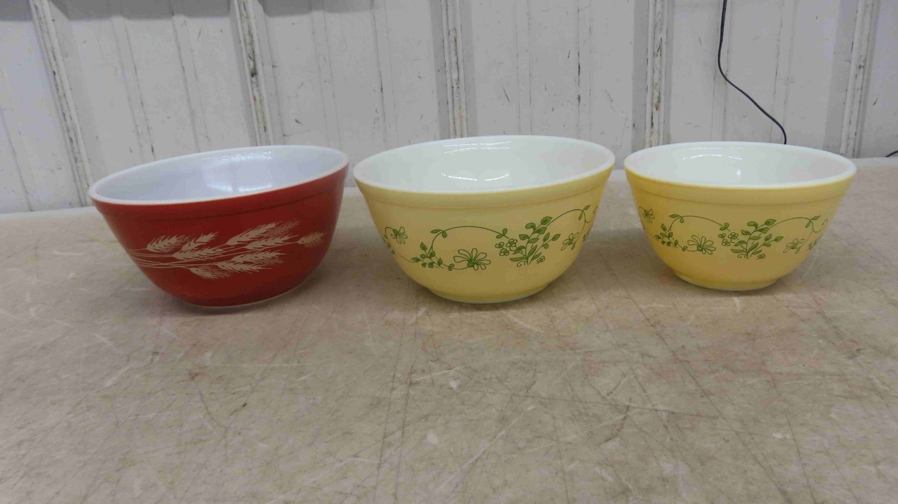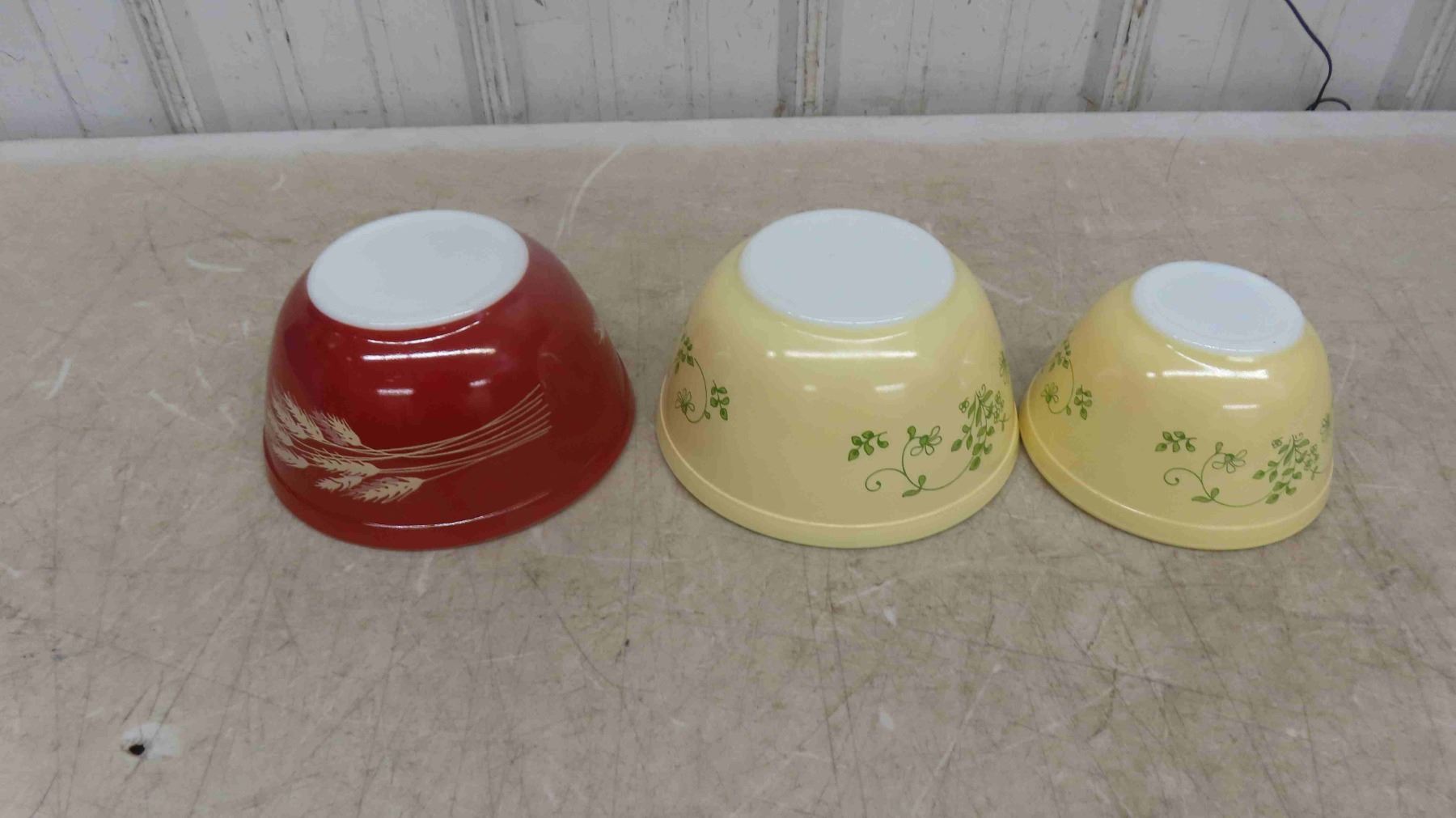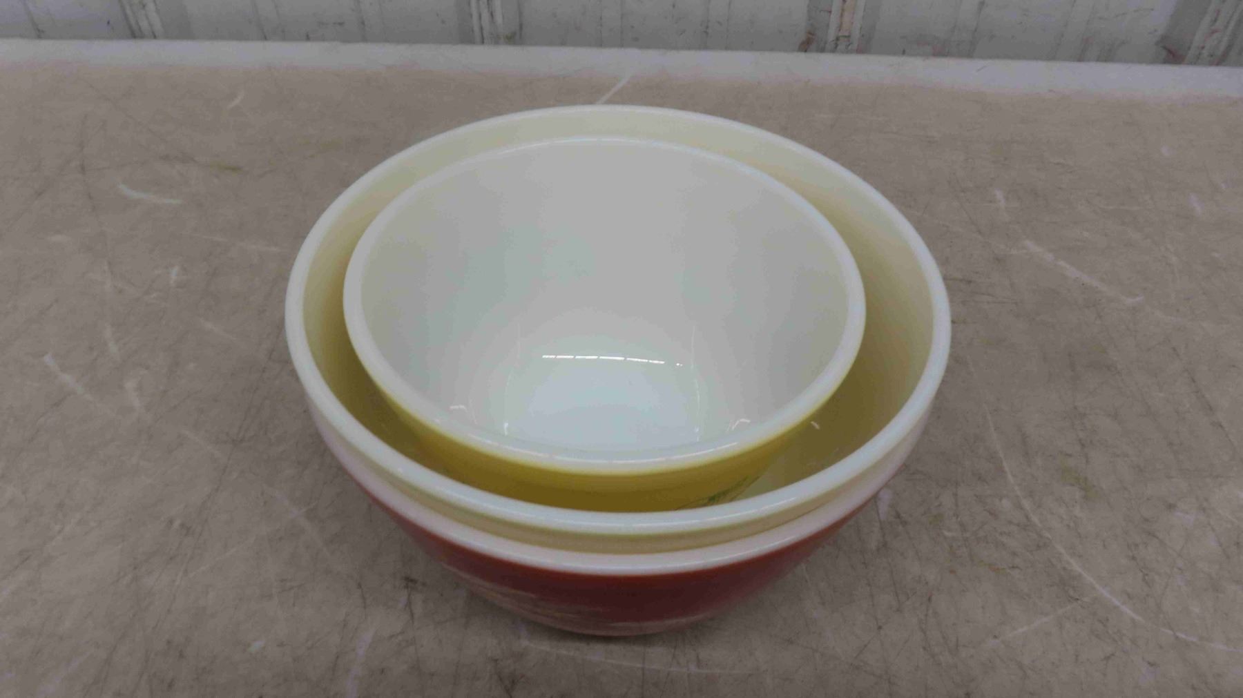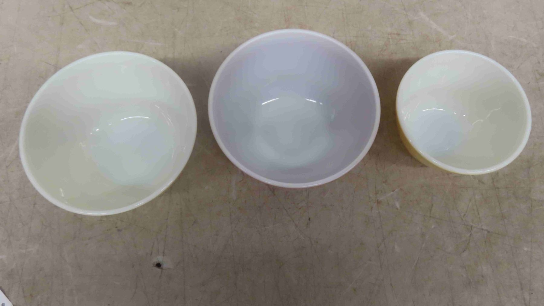 3 Vintage Retro Pyrex Mixing Bowls - All Excellent Shiny Condition - Top Diameters 6'' , 7'' , 7''