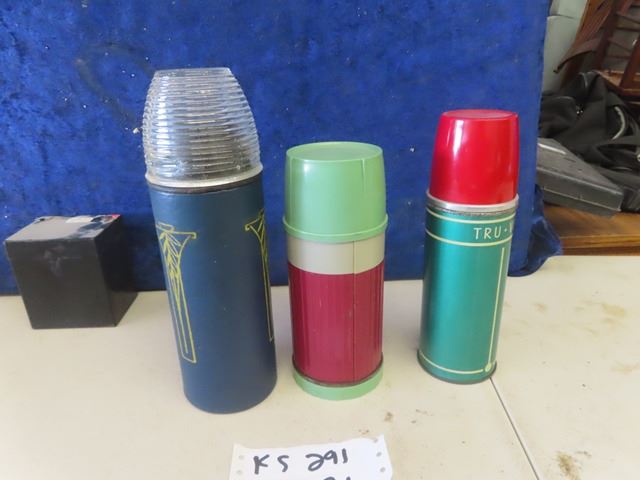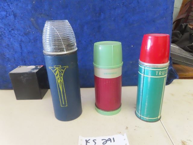 3 Vintage Thermos; 1) TrueVac, 1) Universal, 1) USA