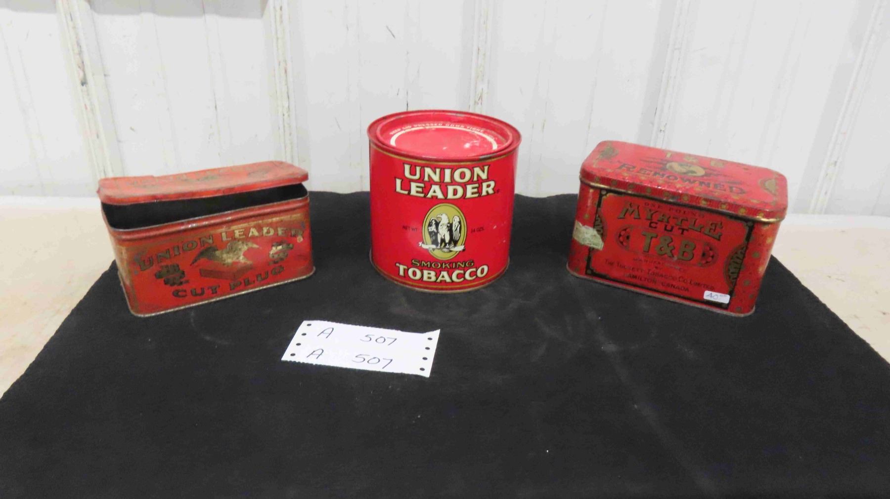 3 Vintage Tins - Union Leader, Myrtle Cut