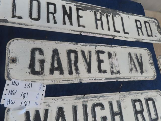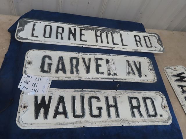 3 Vintage WPG Metal EMbossed Street Signs: Lorne Hill Rd 6" x 30" , Garven Av 6" x 24" , Waugh Rd 6" x 24"