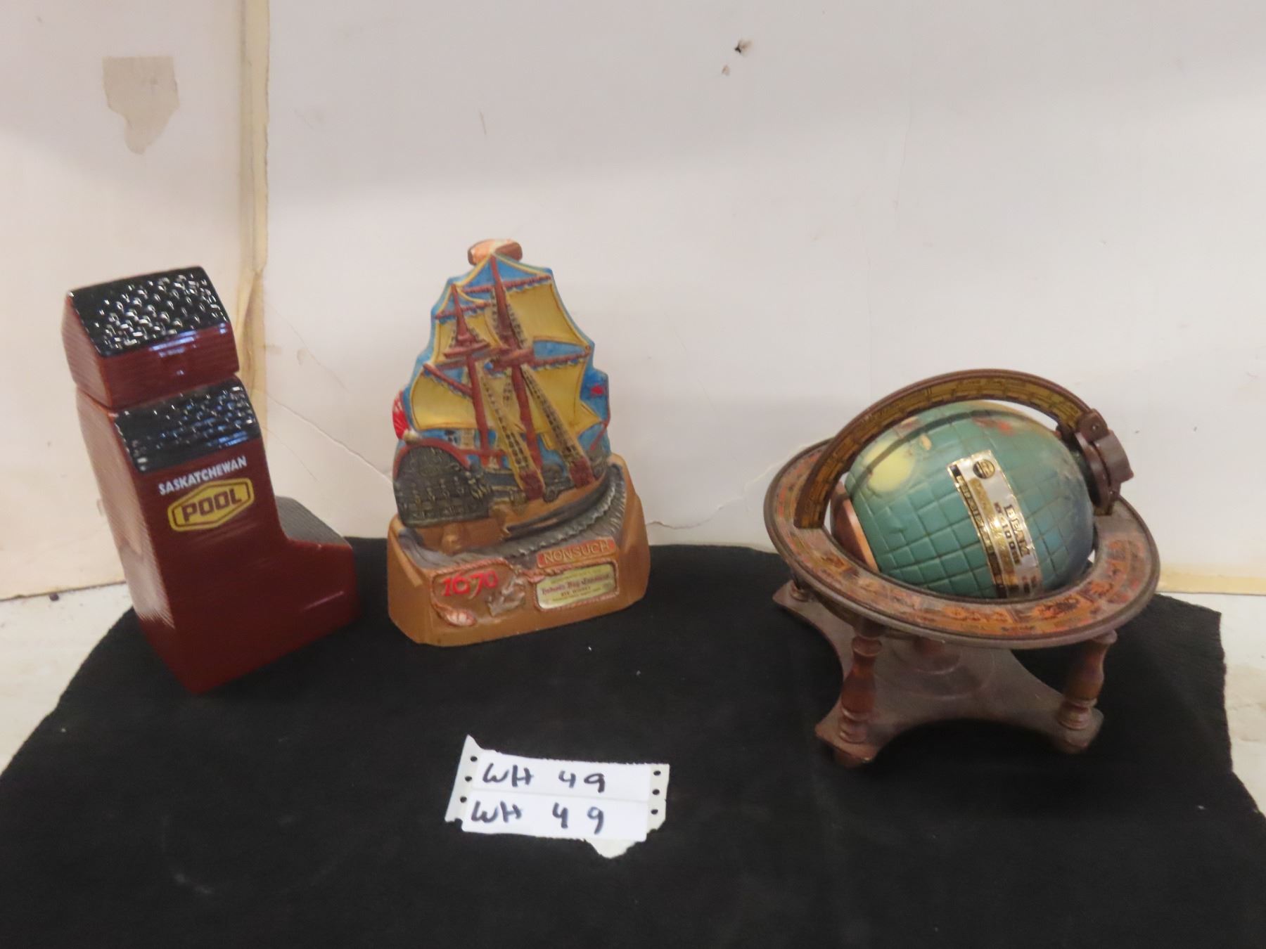 3 Vintage Whiskey Bottles; 1970 Hudson Bay, Sask Pool, James Bean Globe