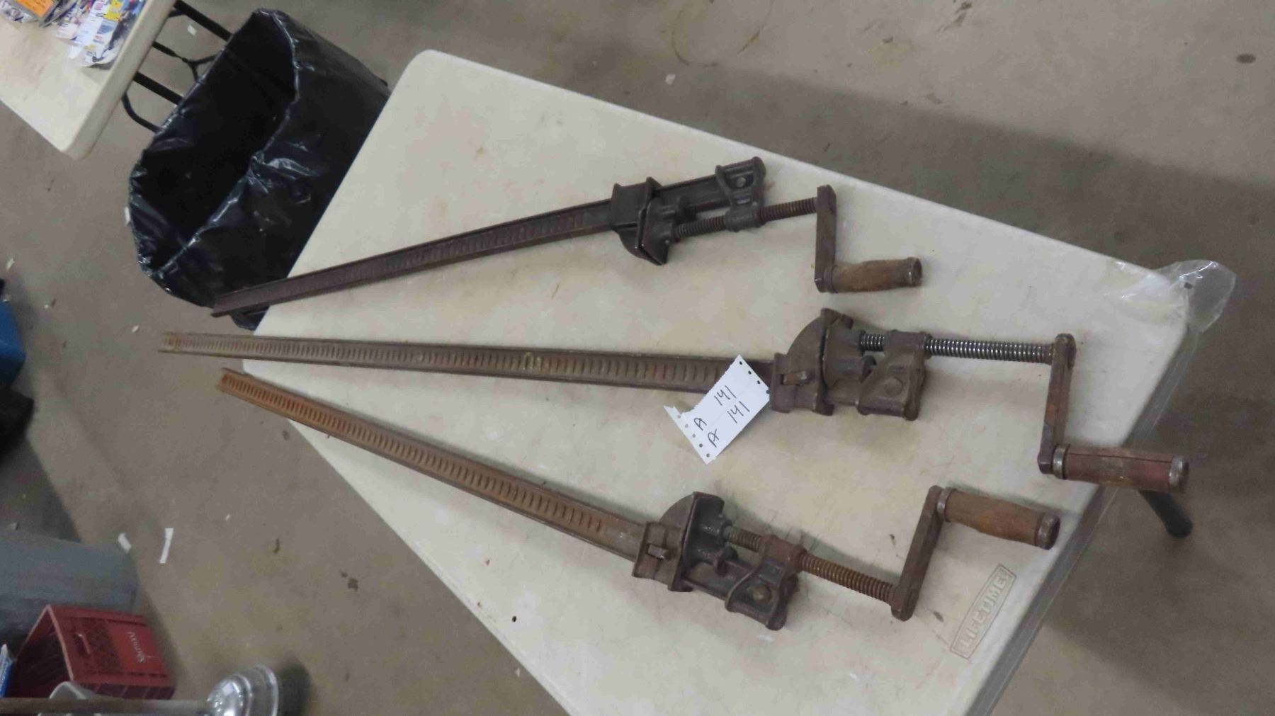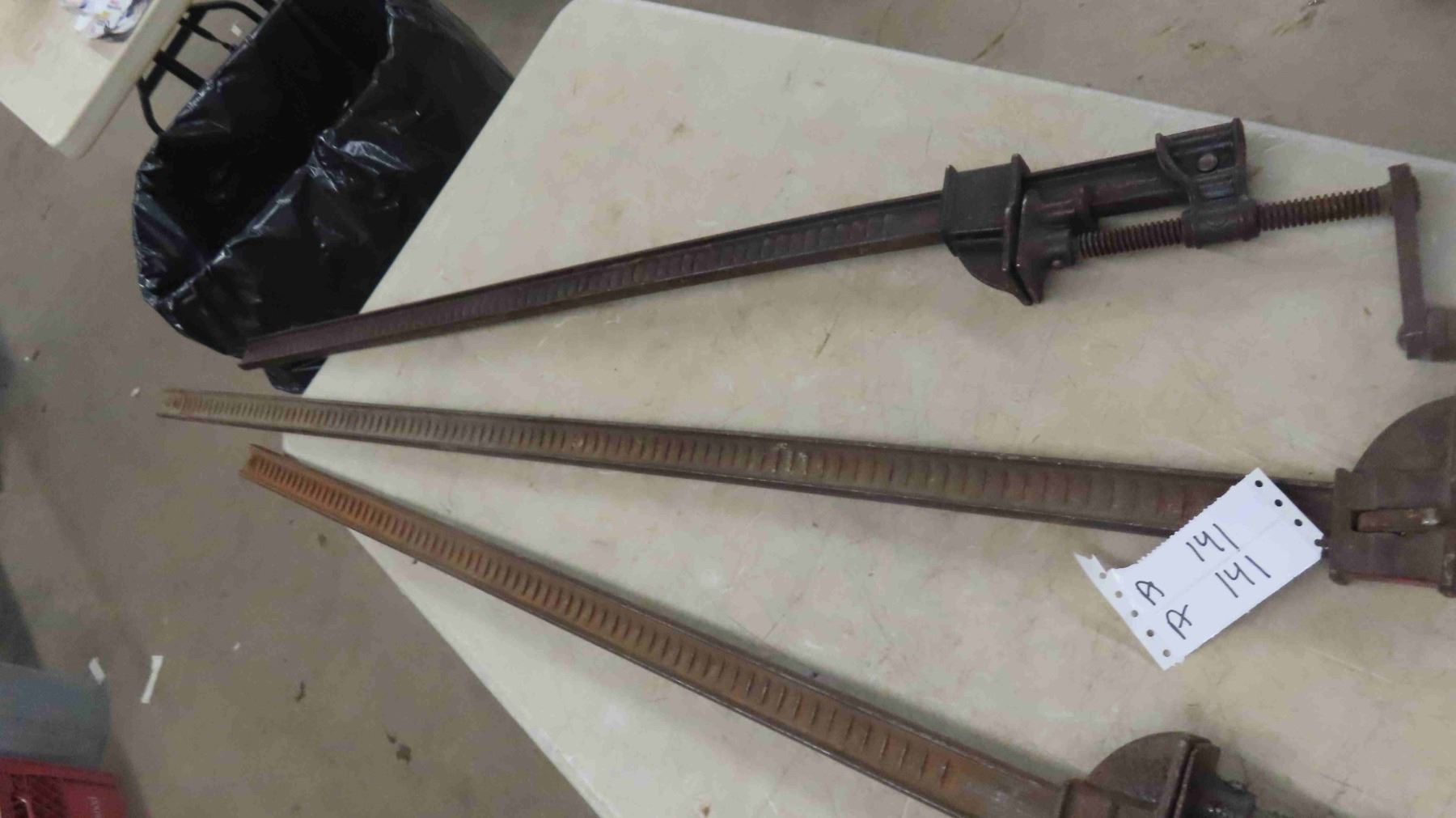 3 Vintage Wooden Clamps ; (2) 36" + (1) 48"