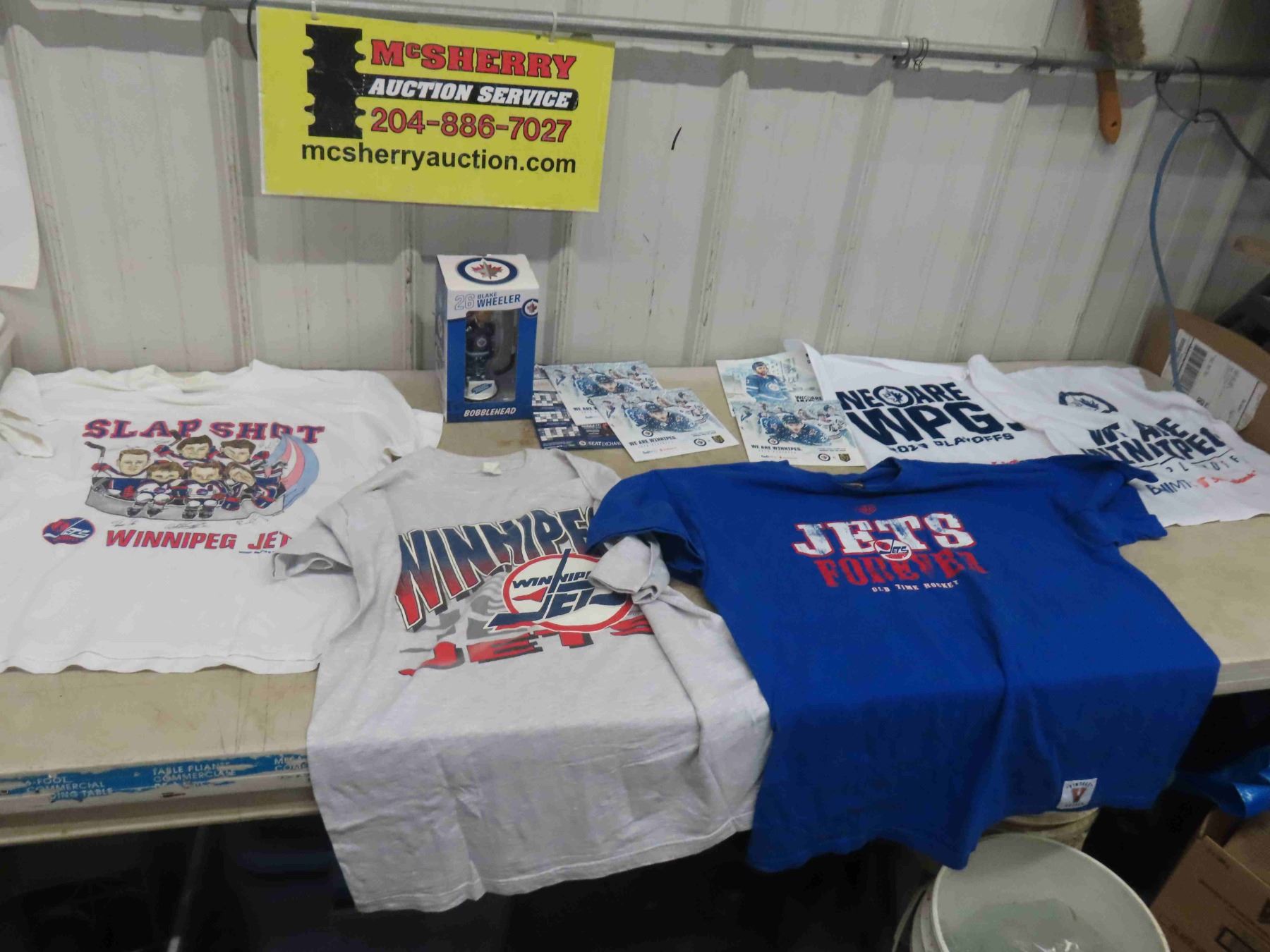 3 WPG Jets T-Shirts sz XL, Blake Wheeler Bobblehead, Game Programs, plus more