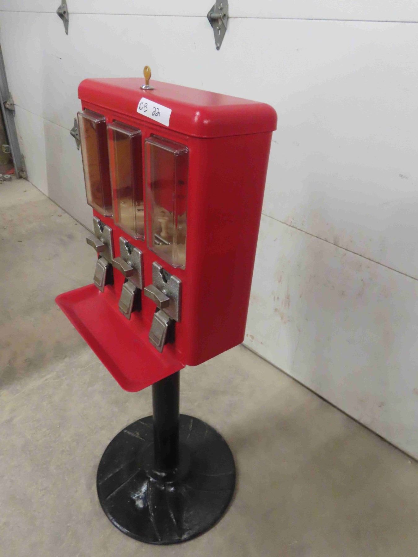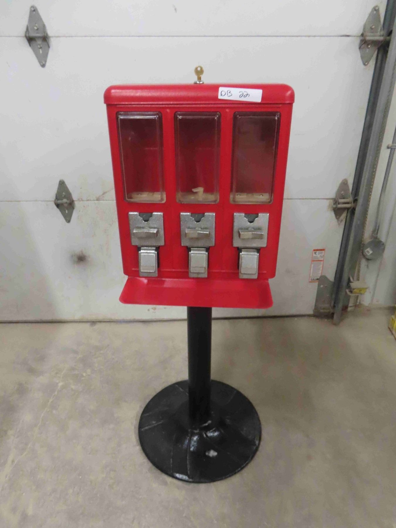3 Way Coin Operated Candy Machine Self Standing with Key - Usable Condition