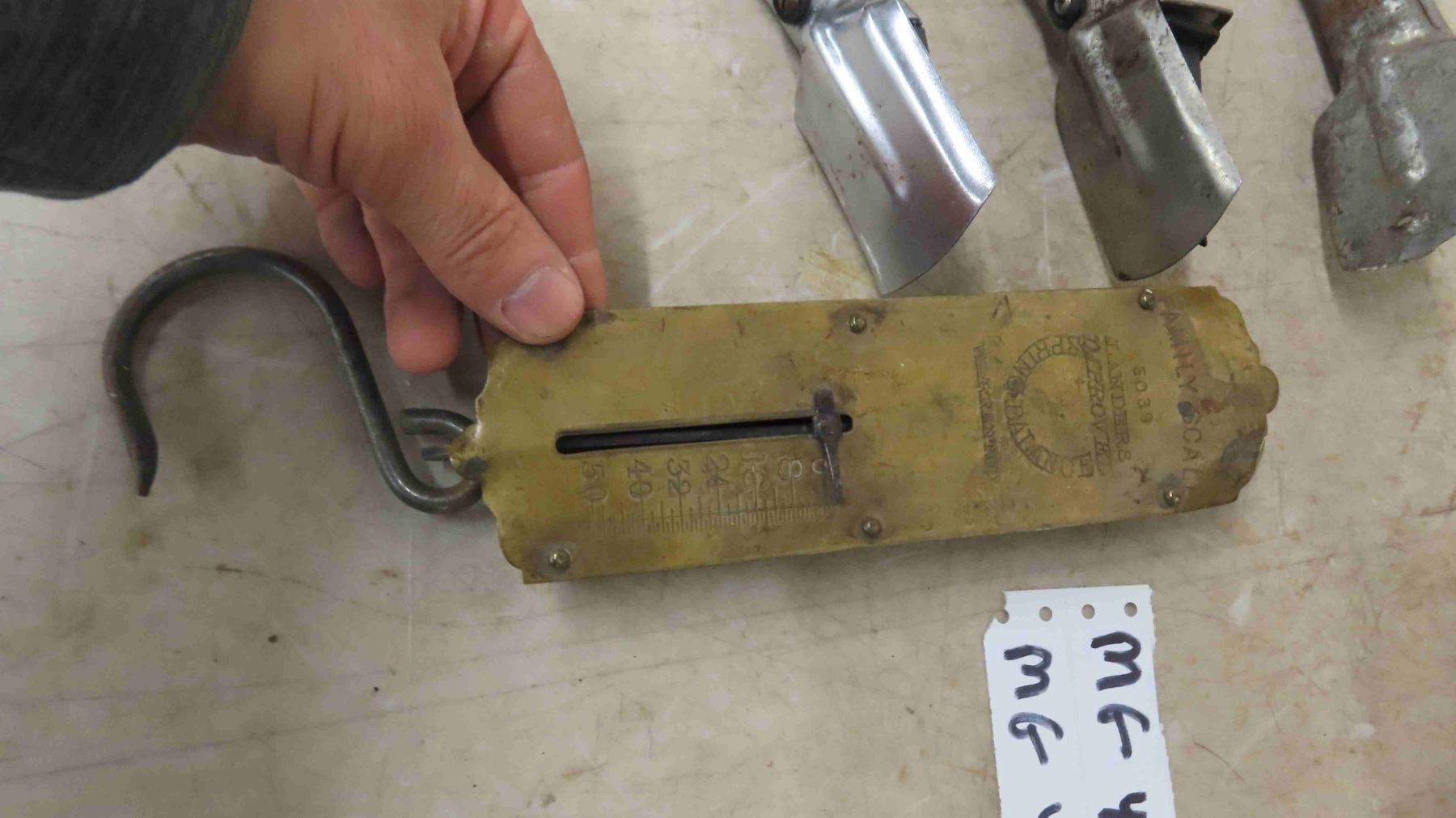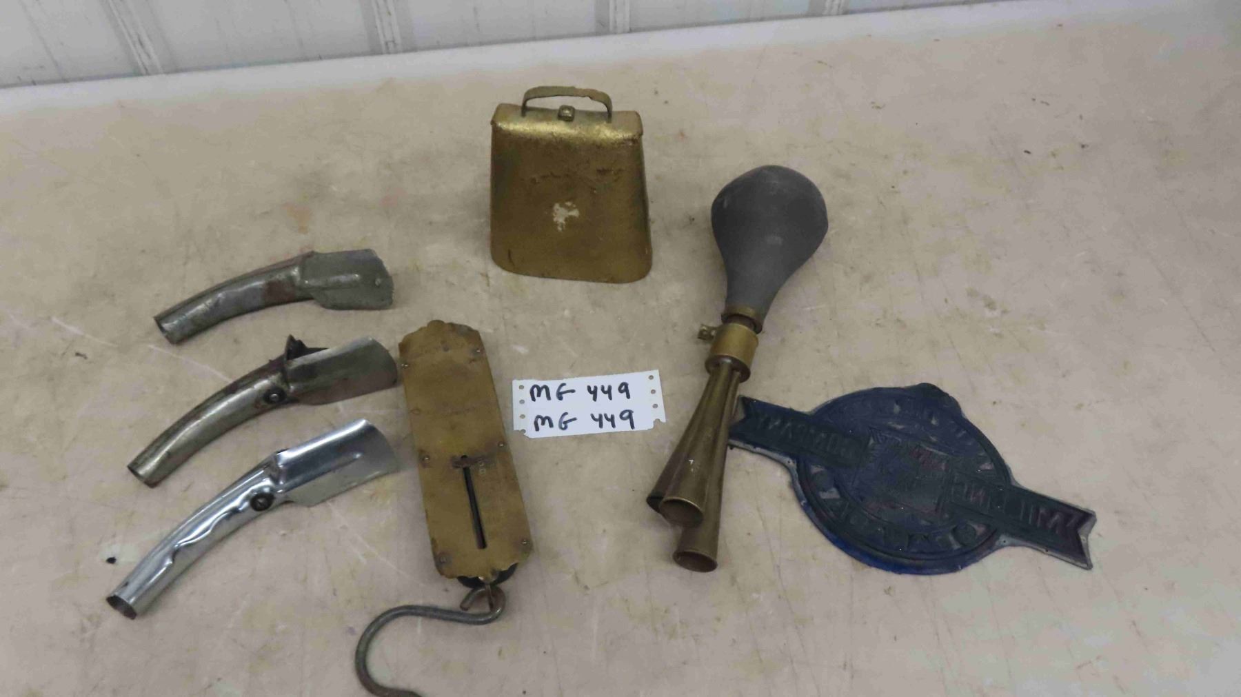 3 Way Squeeze Horn, Open Cow Bell, Hanging Scale, 3 Quart Oil Can Funnels, Winnipeg