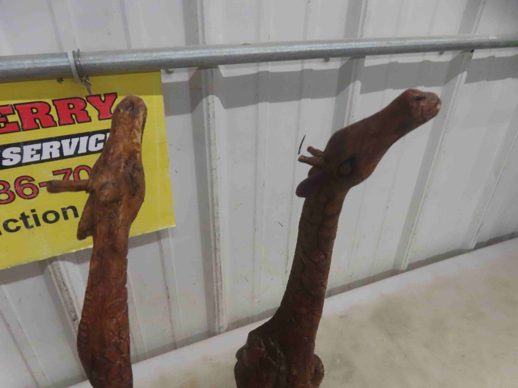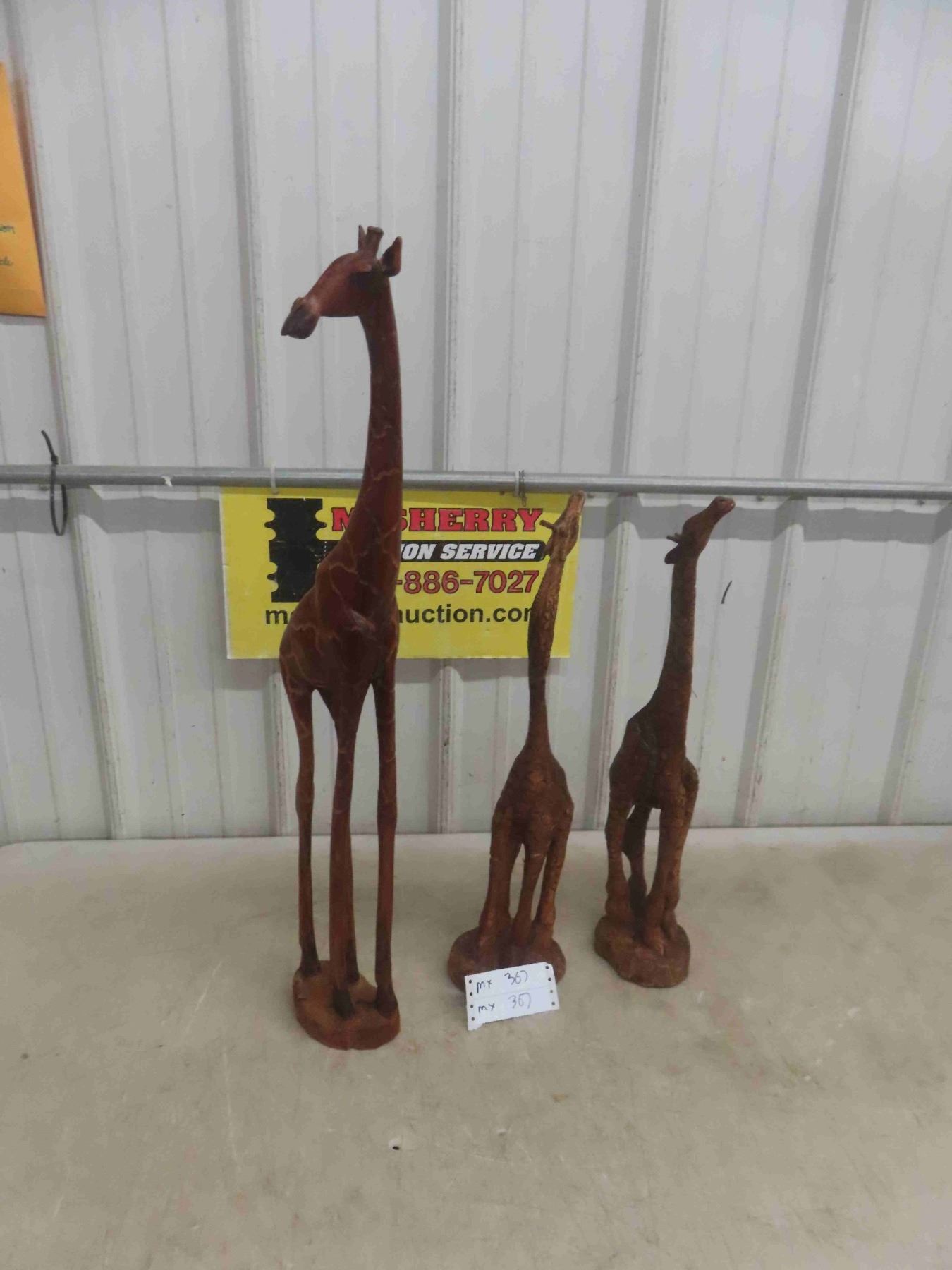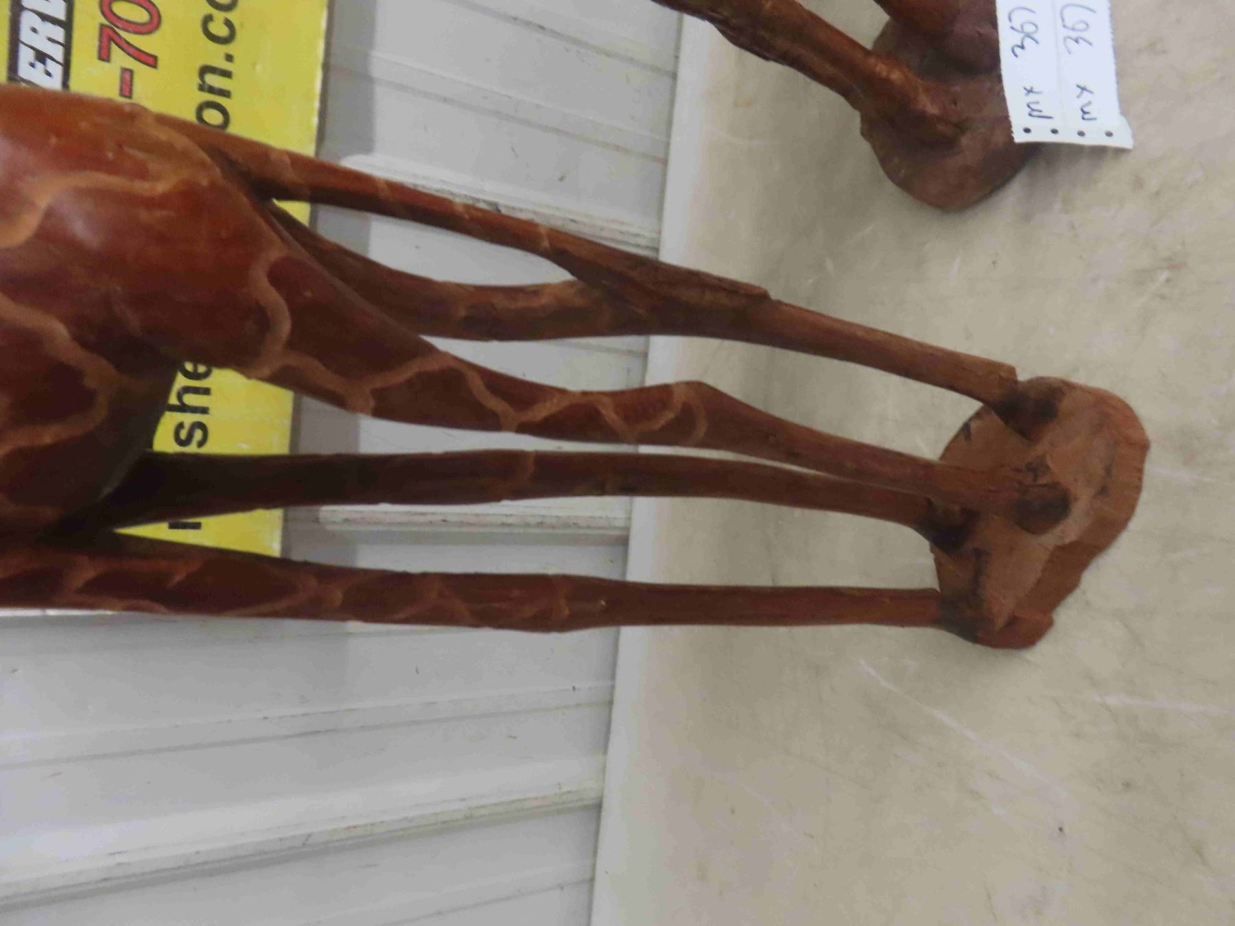 3 Wood Carved Giraffe Ornaments , Tallest is 30"