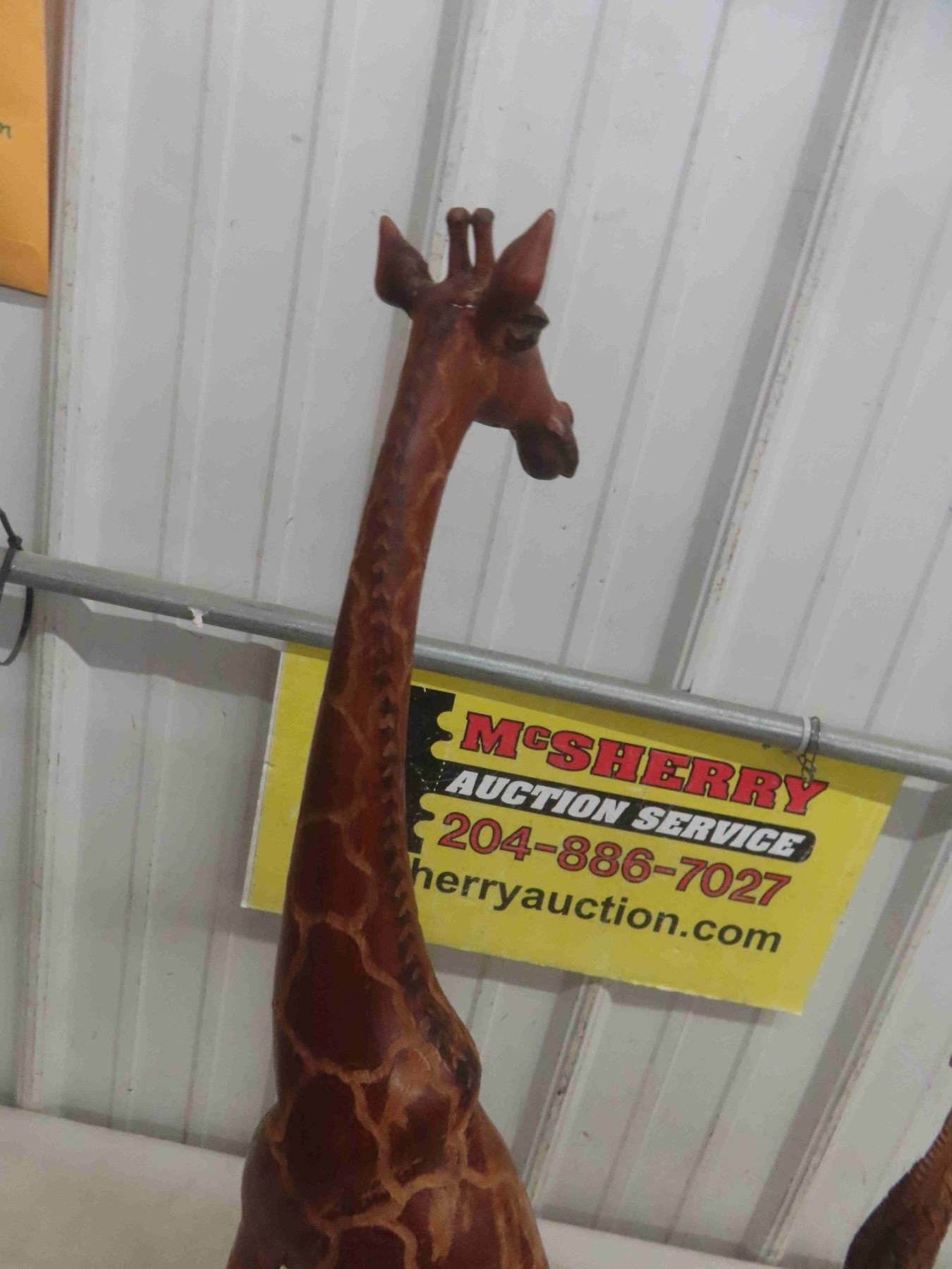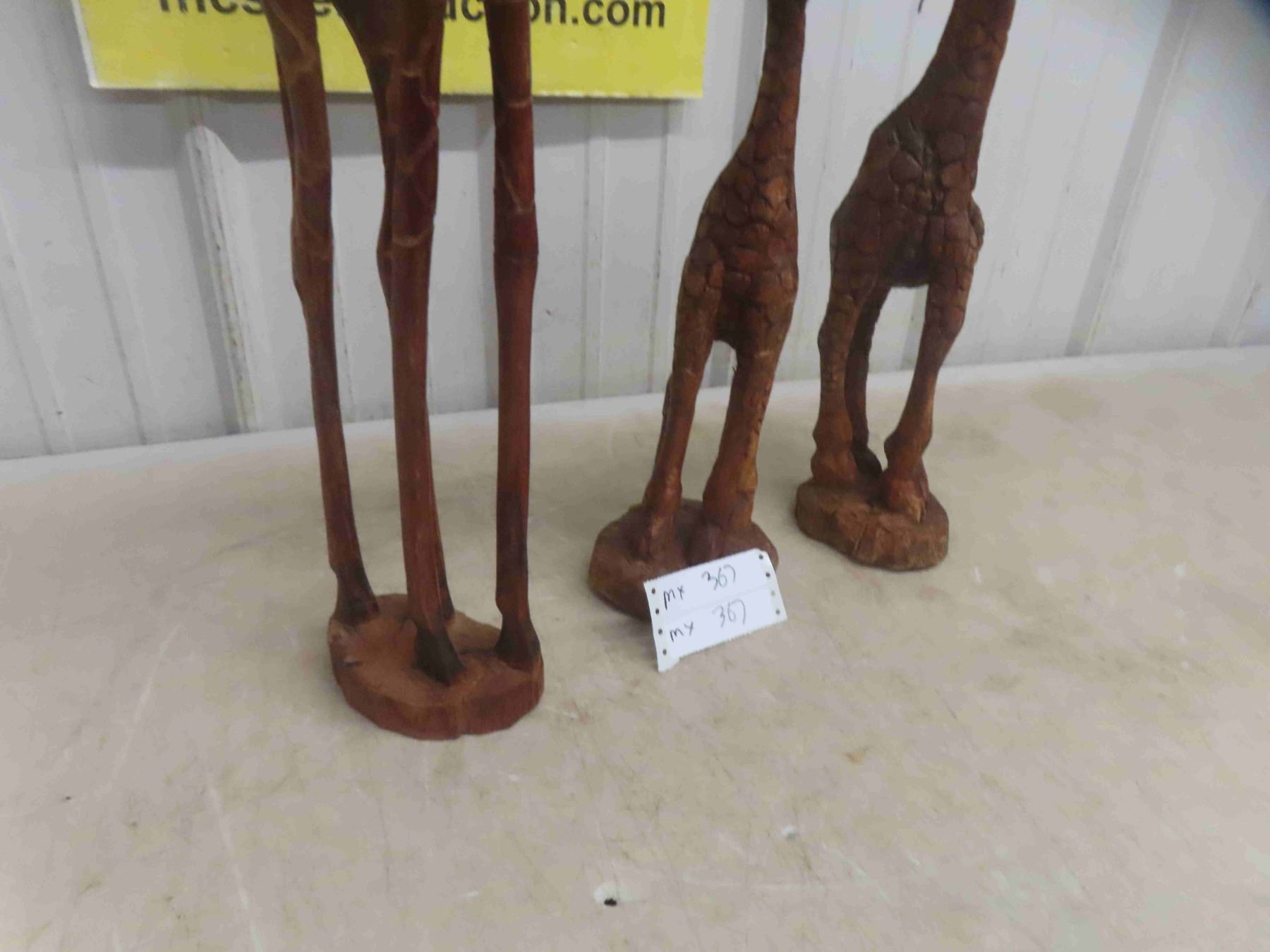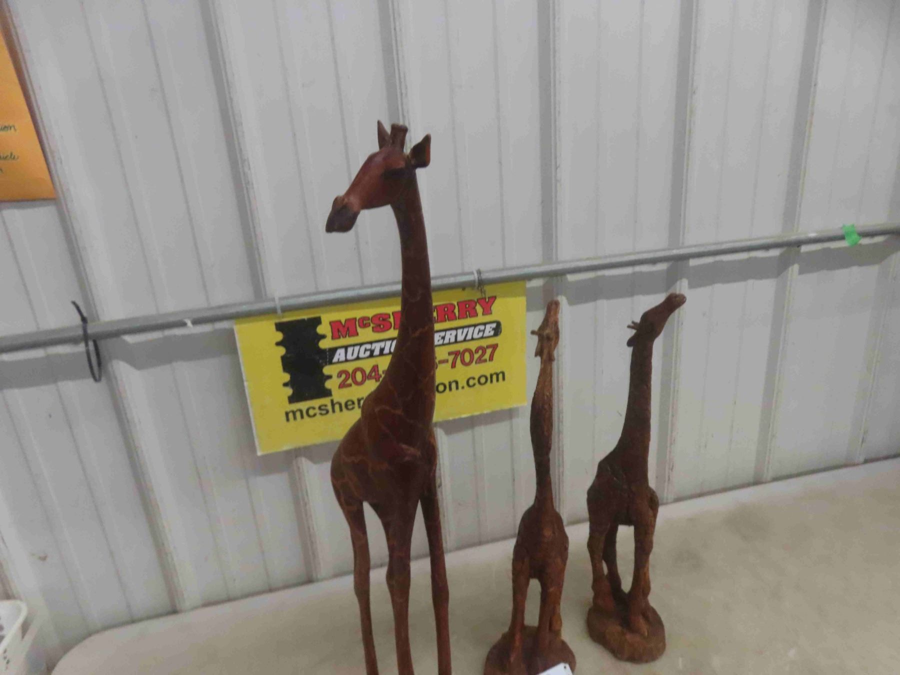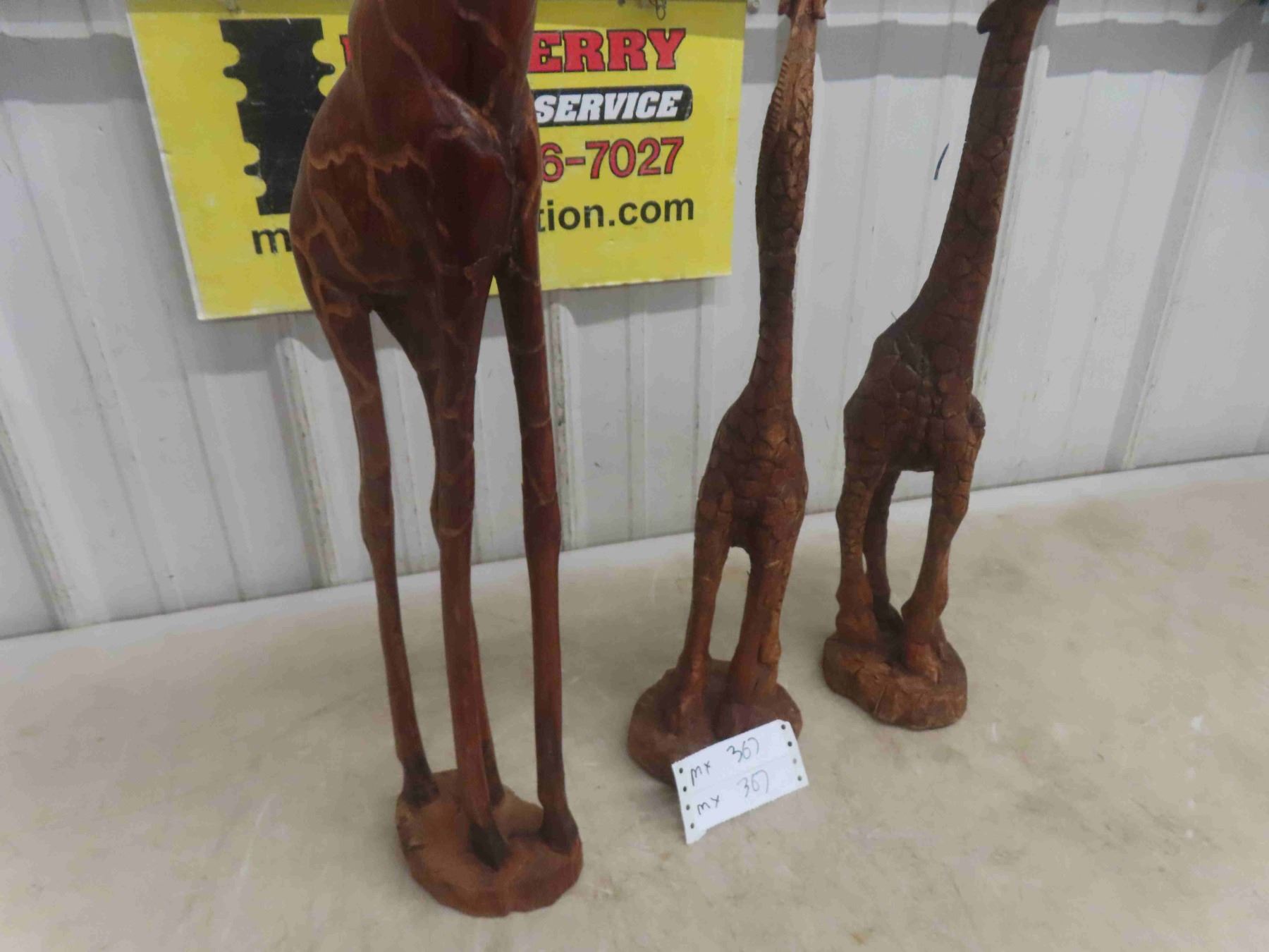 3 Wood Carved Giraffe Ornaments , Tallest is 30"