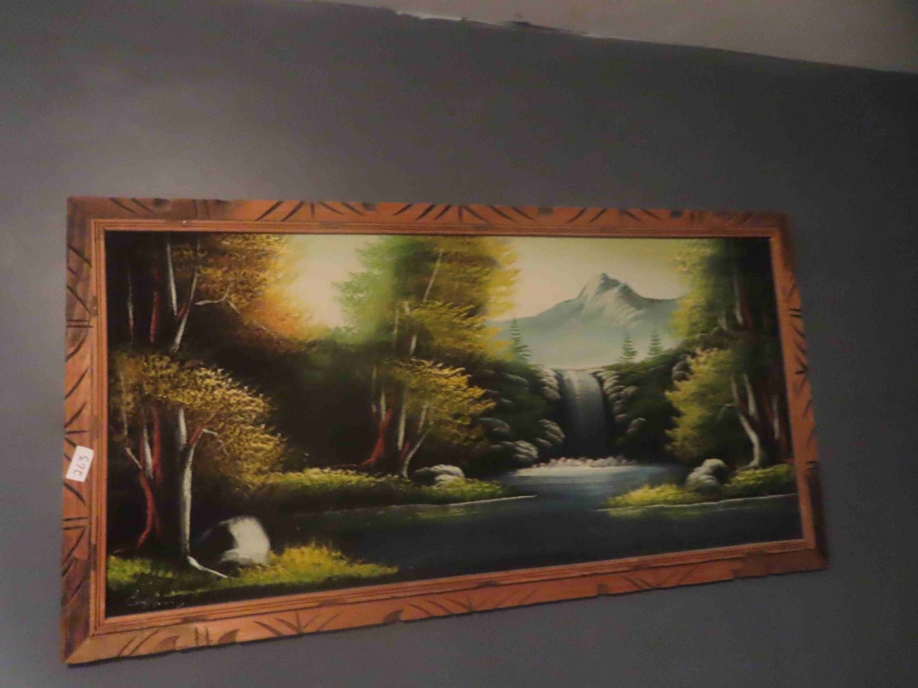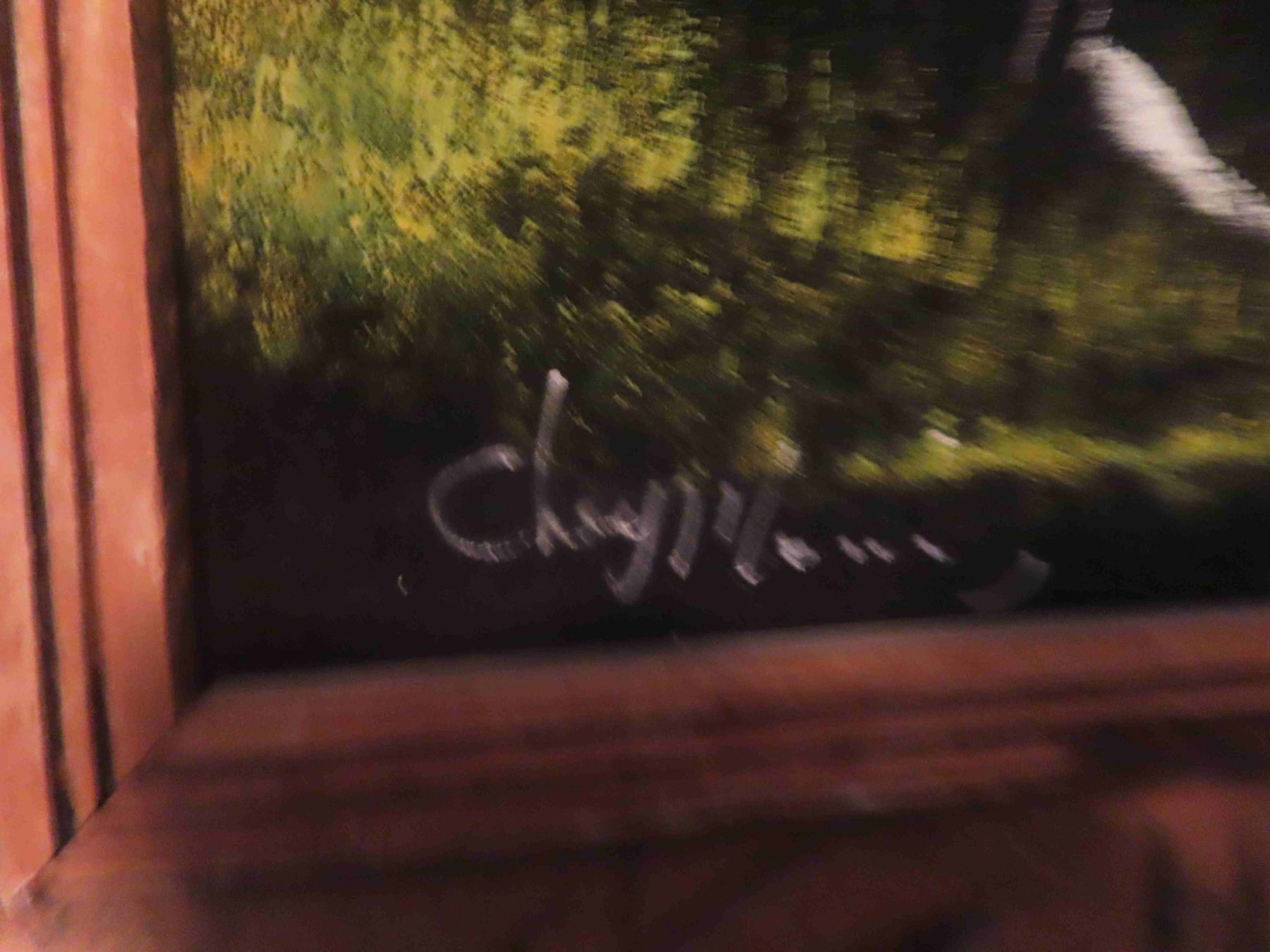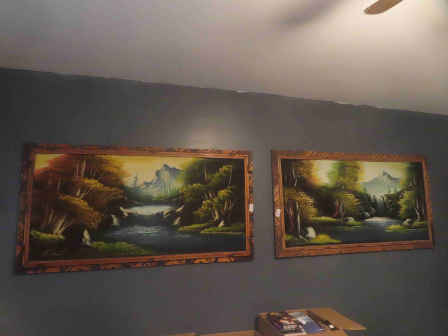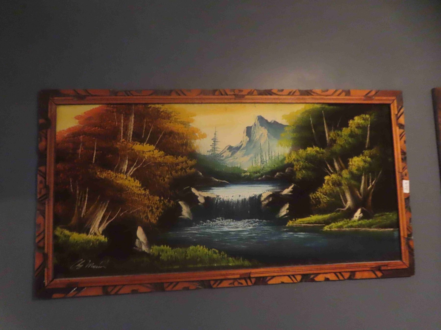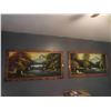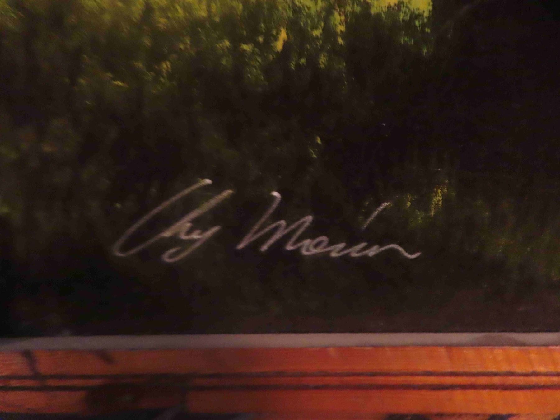 (3) Wood Framed Velvet Signed Pictures Largest 48 x 25