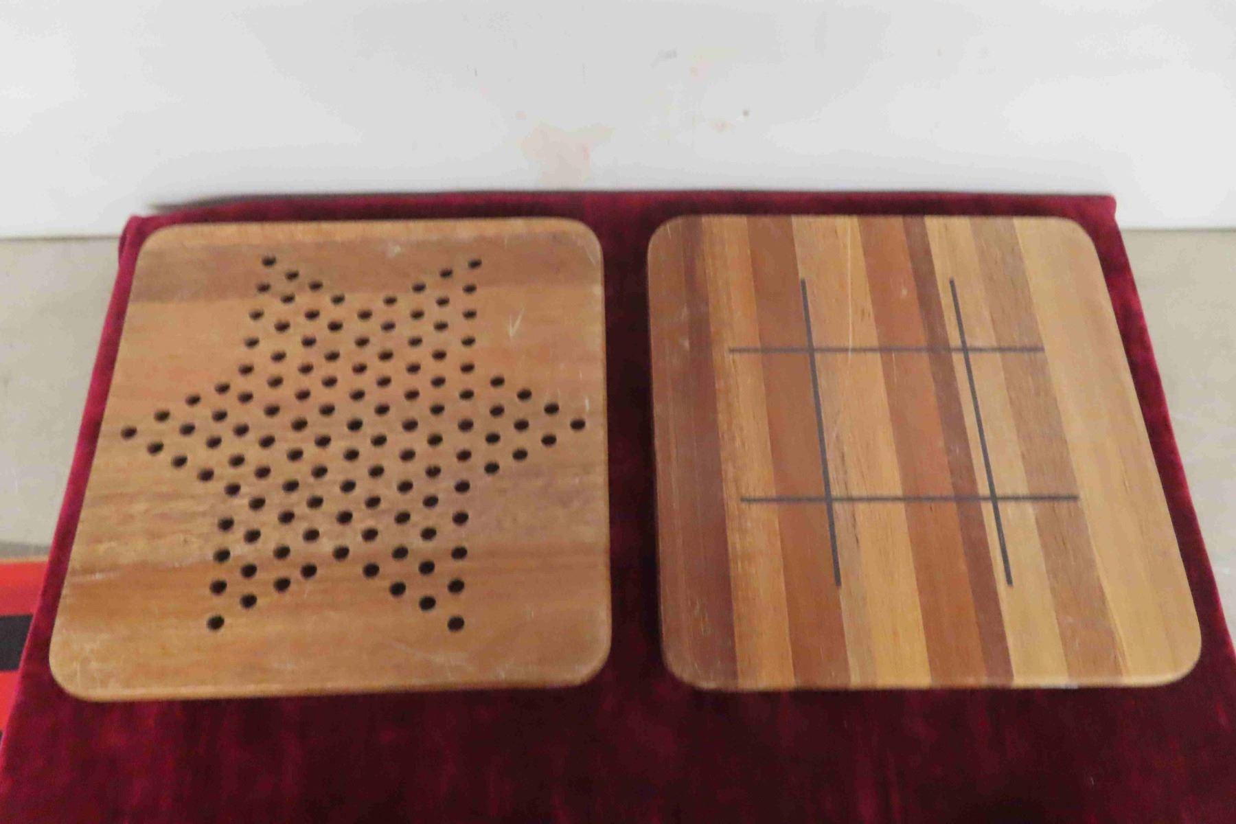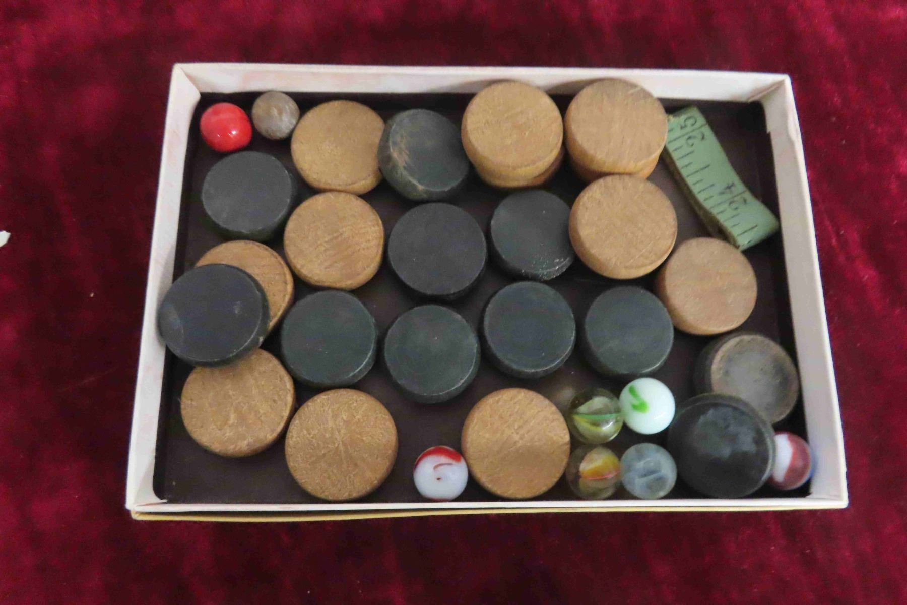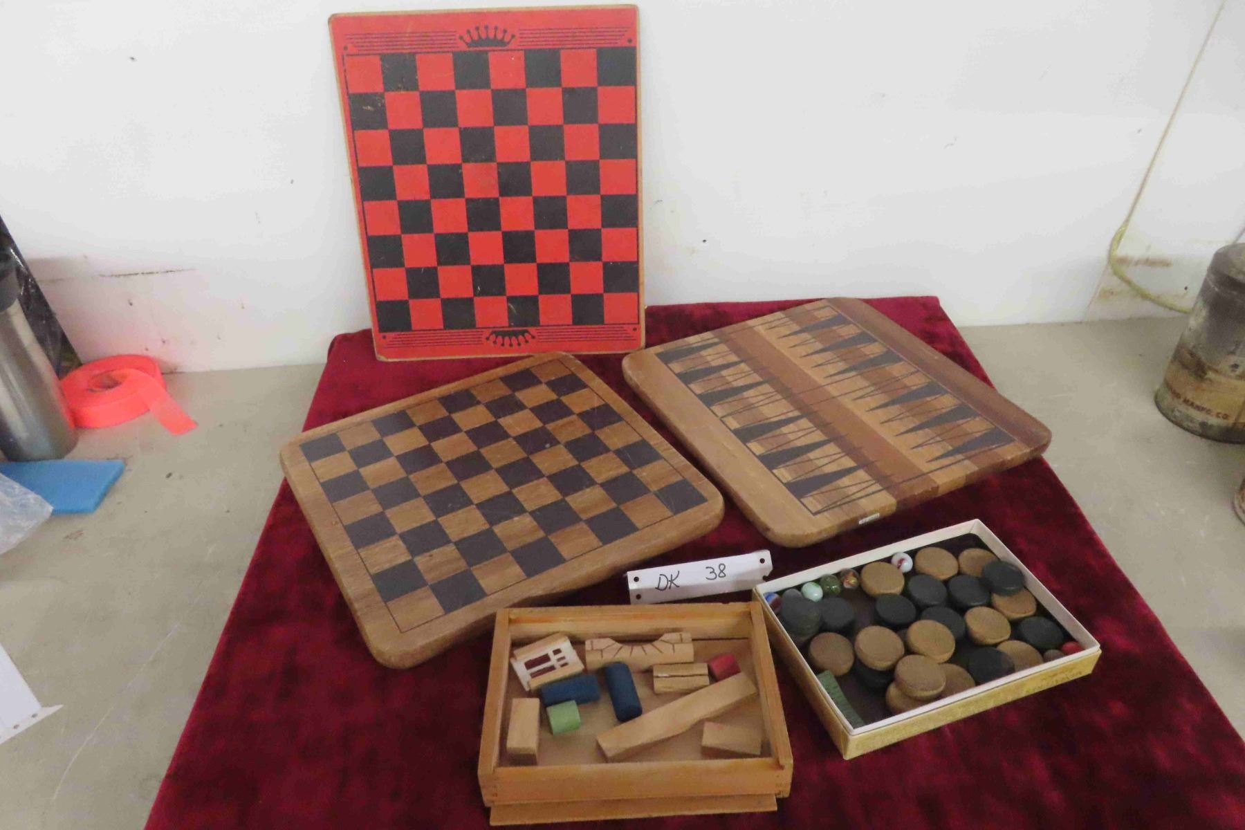 3 Wood Game Boards, Checker Pieces, Marbles +