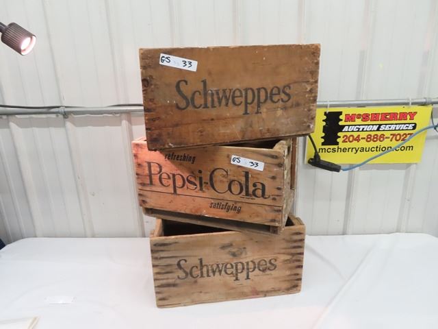 3 Wood Pop Crates - 2 Schweppes & 1 Pepsi