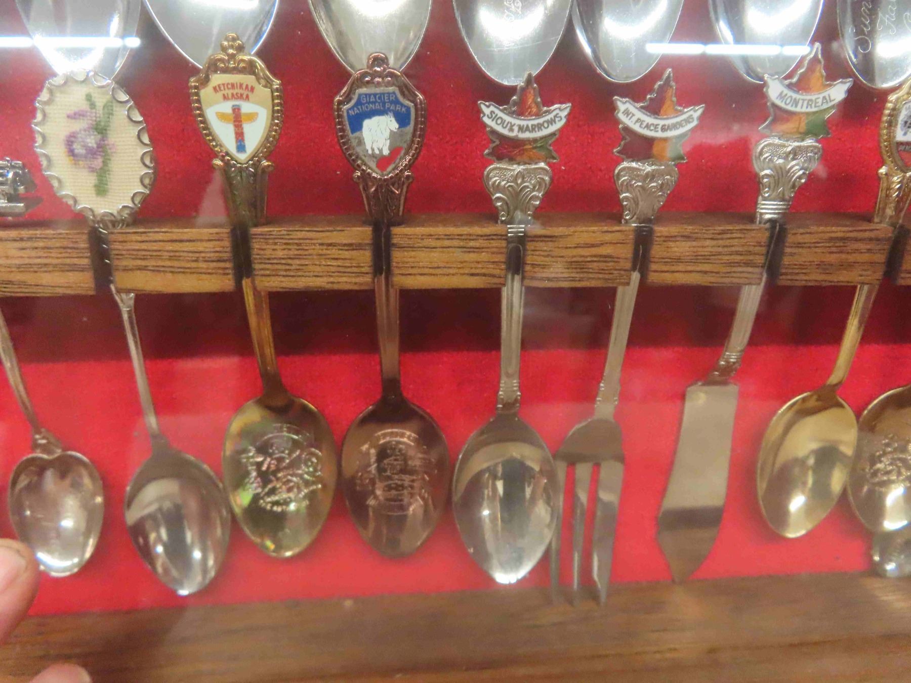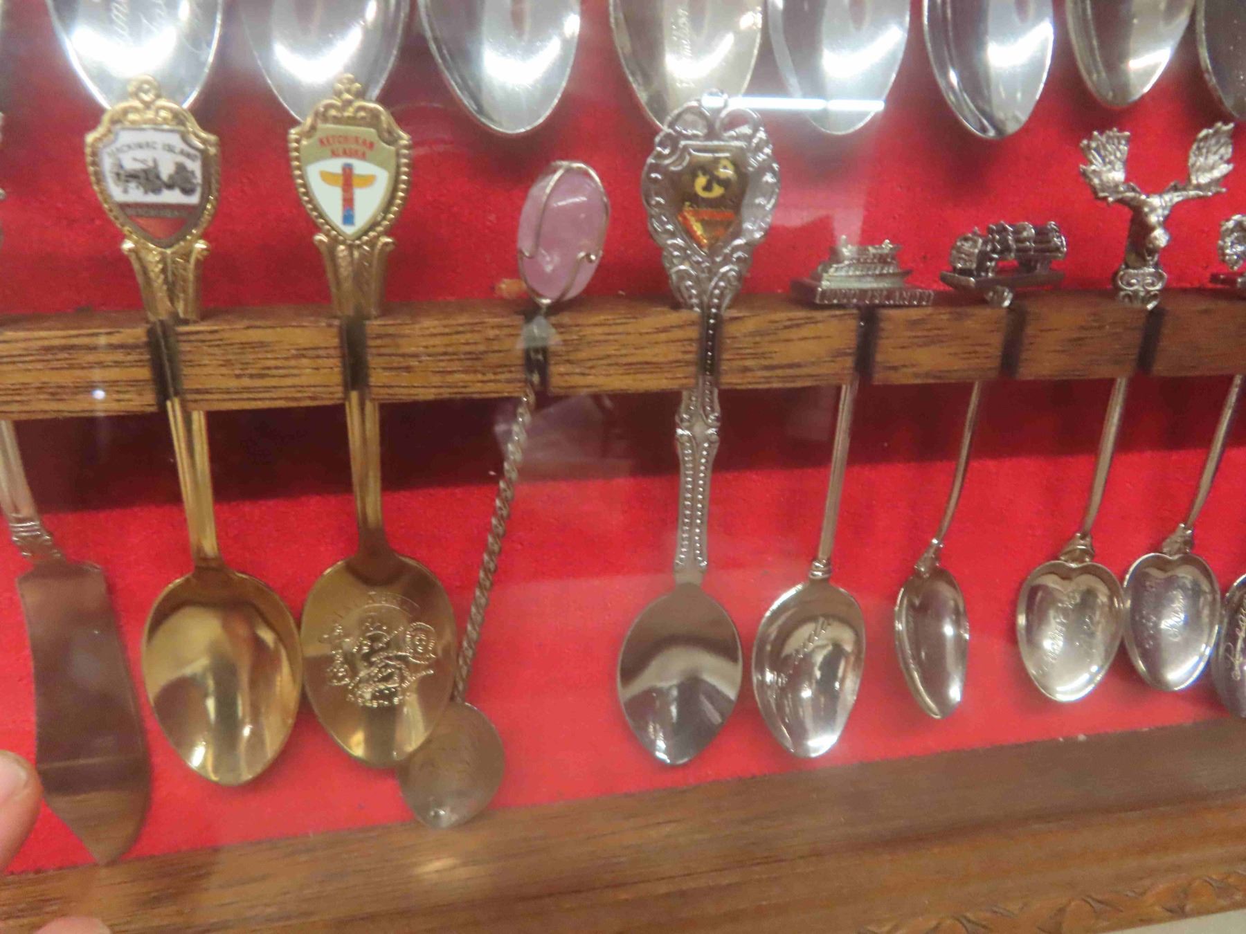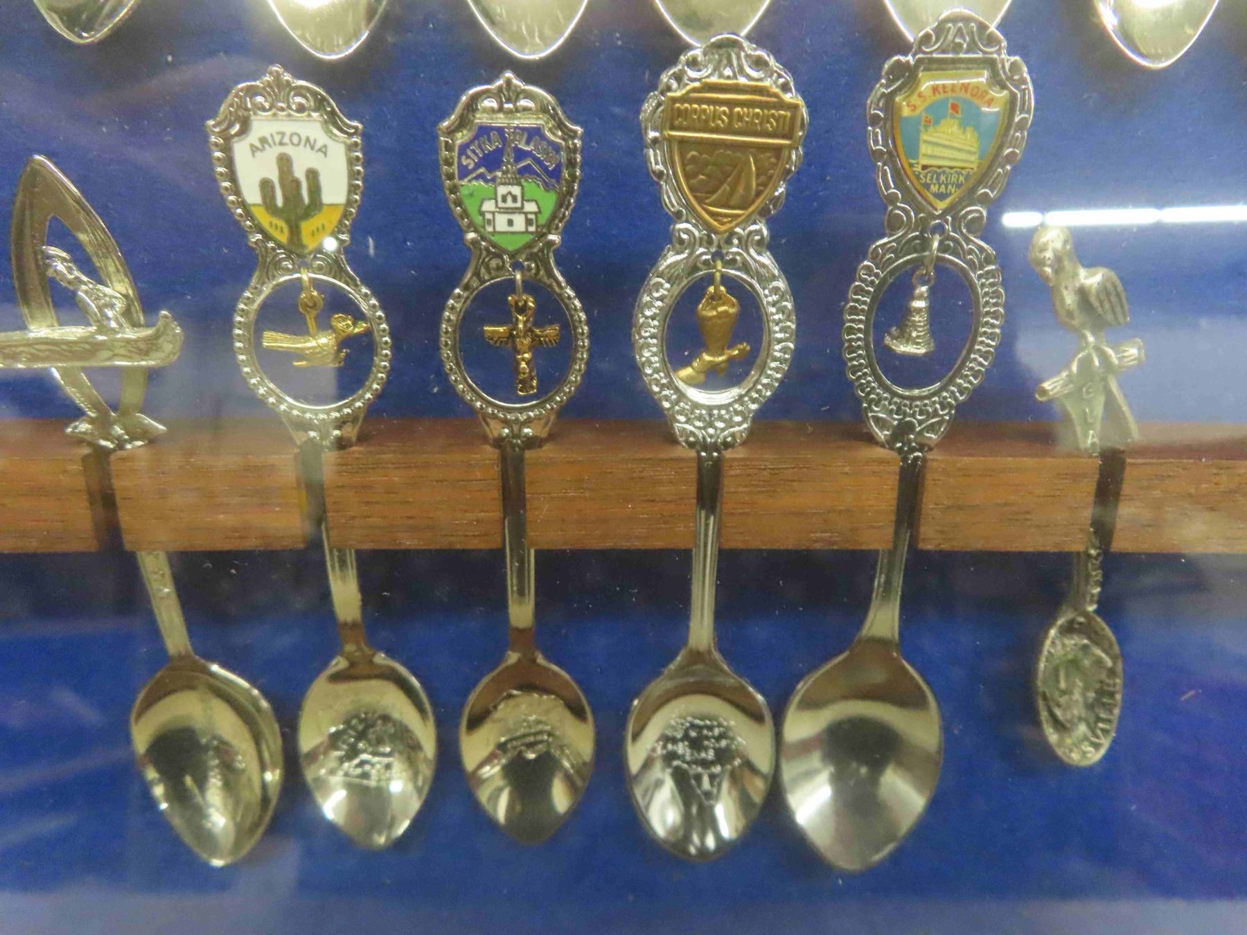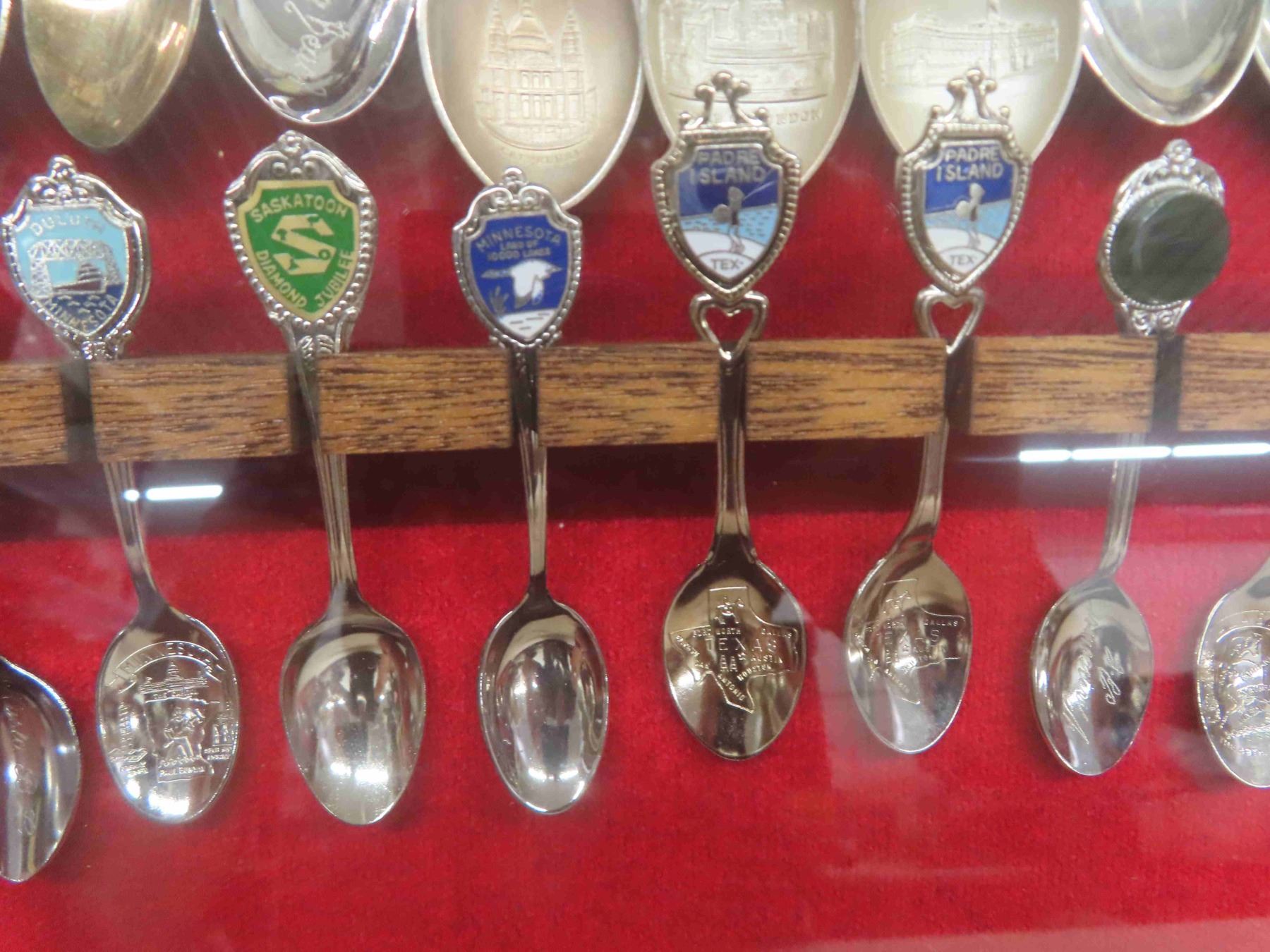 3 Wood and Glass Cases Full of Collector Spoons 25'' x 13''