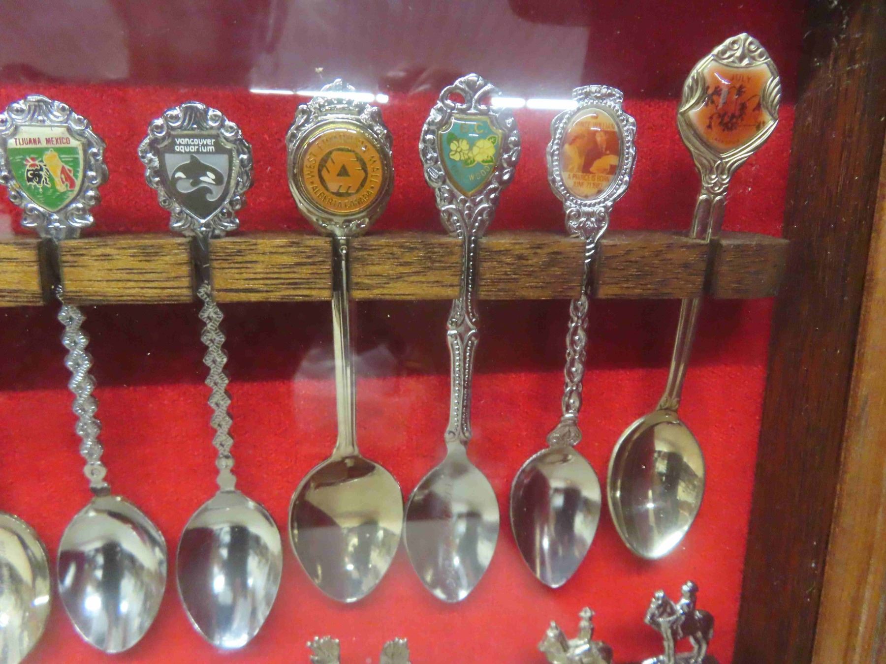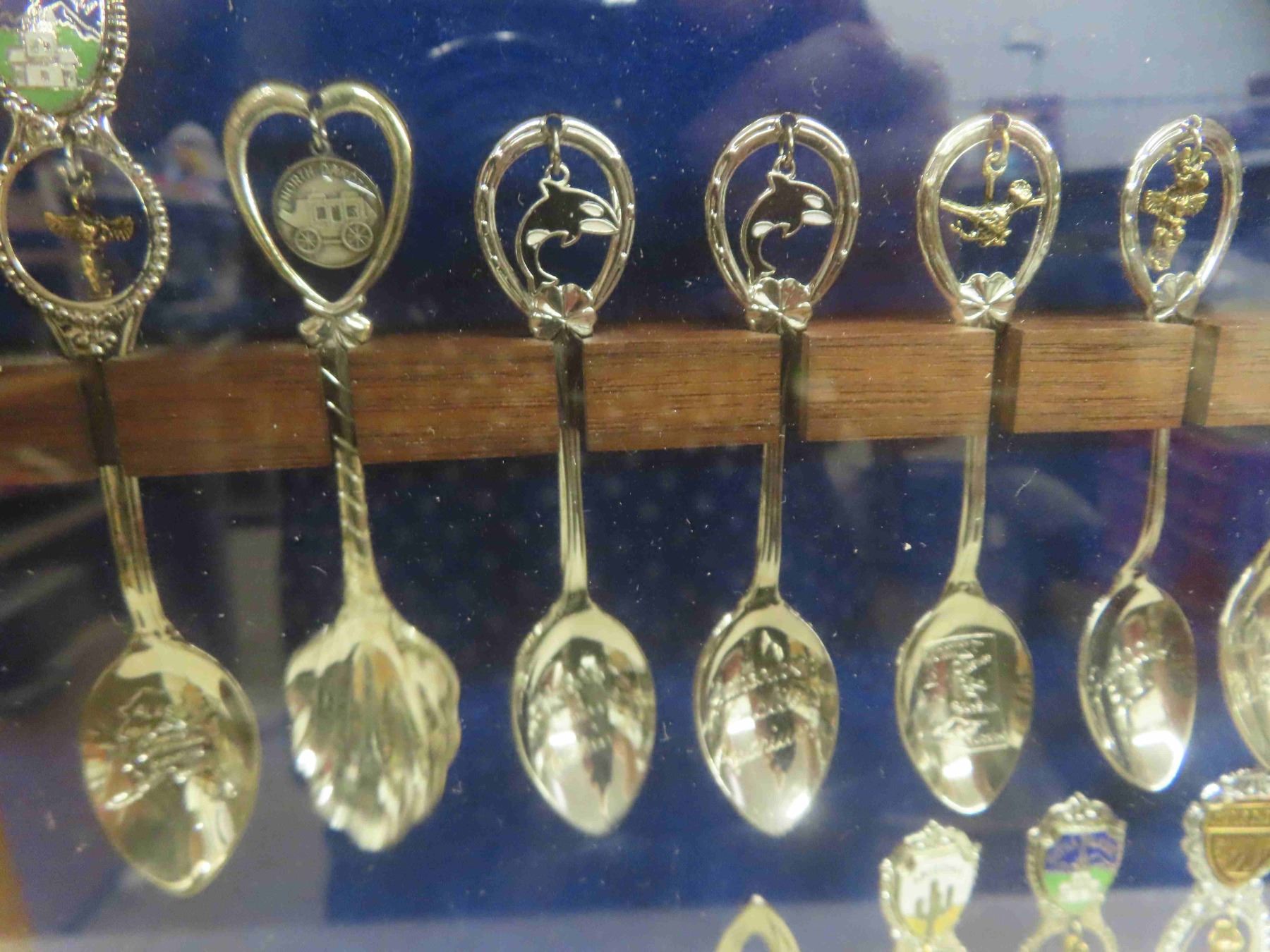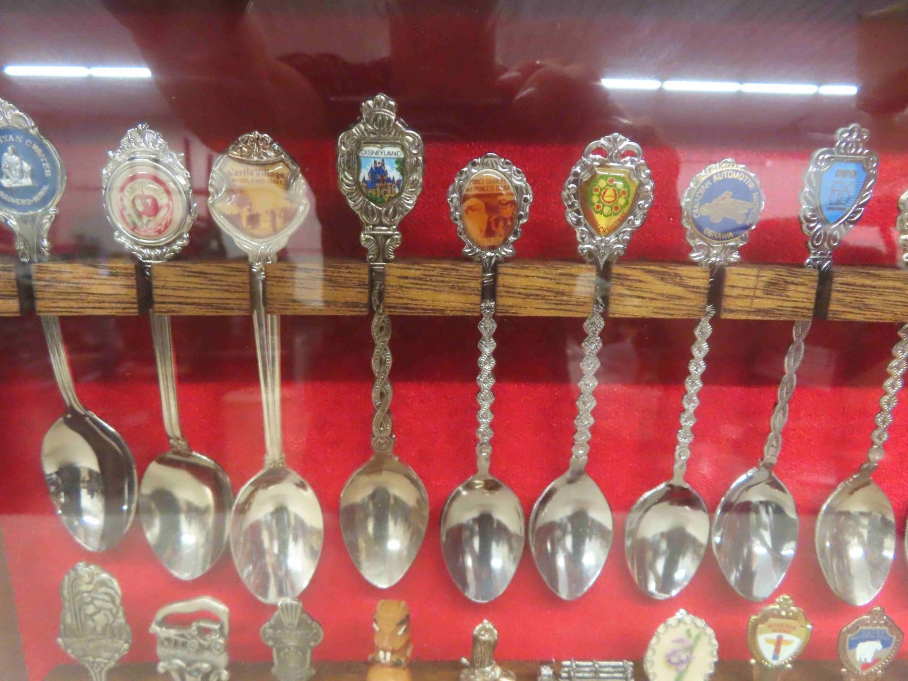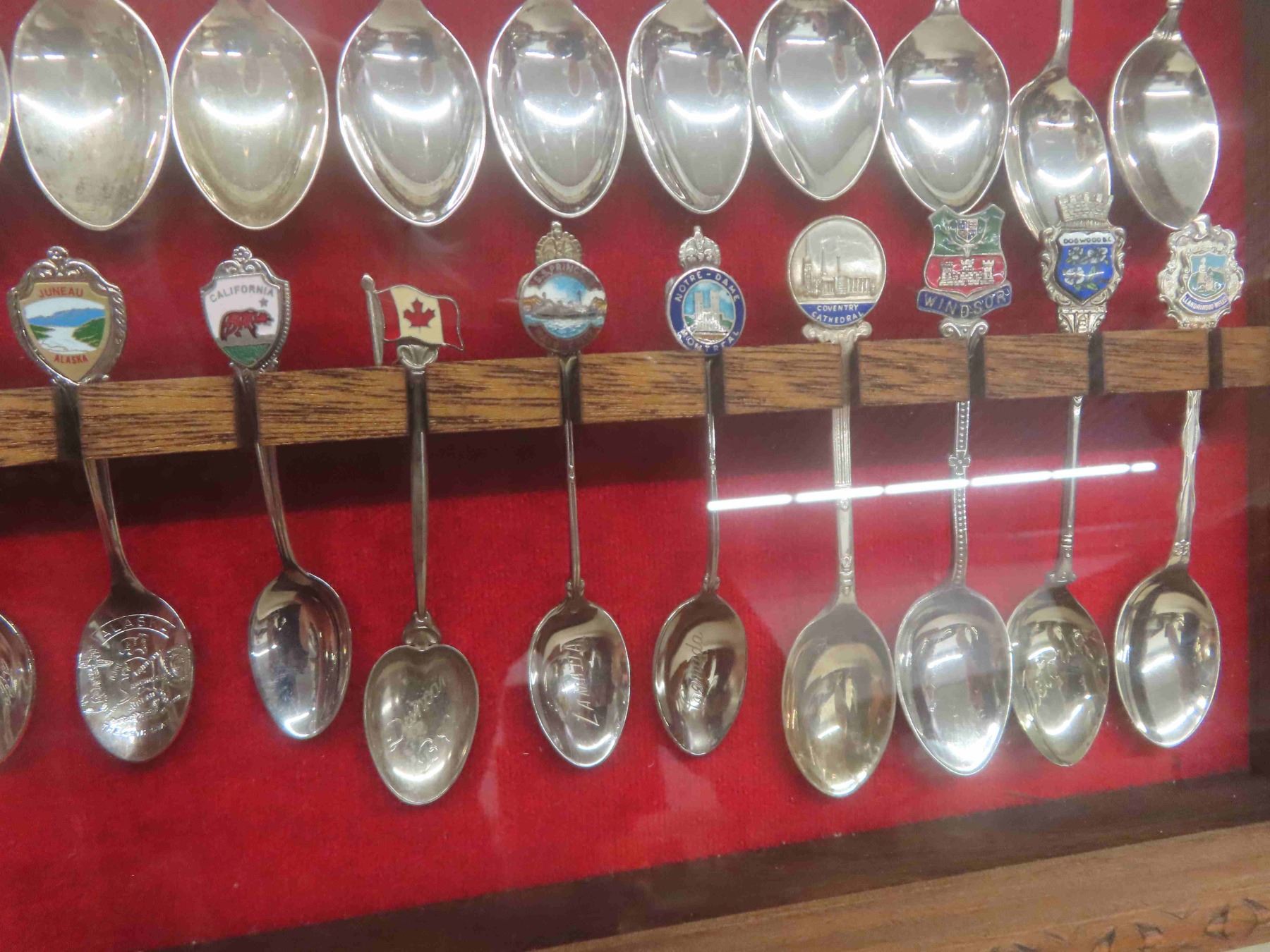 3 Wood and Glass Cases Full of Collector Spoons 25'' x 13''