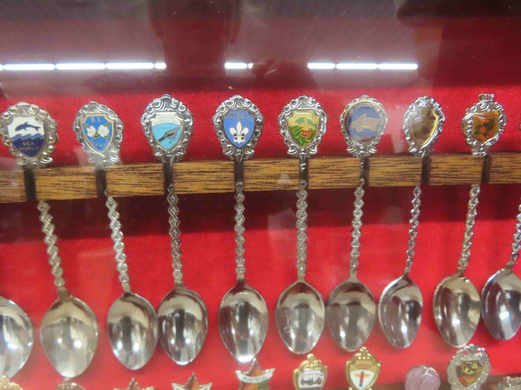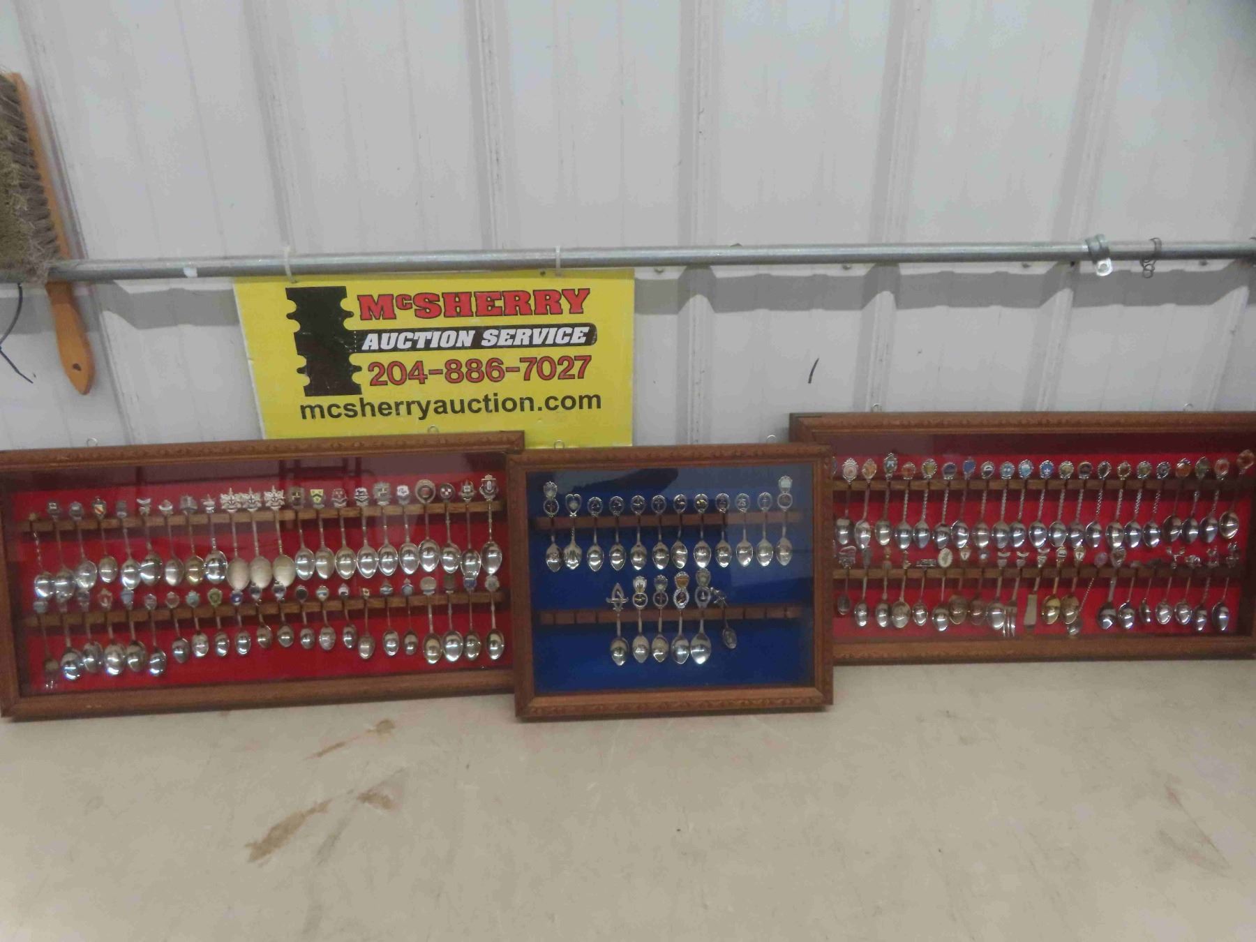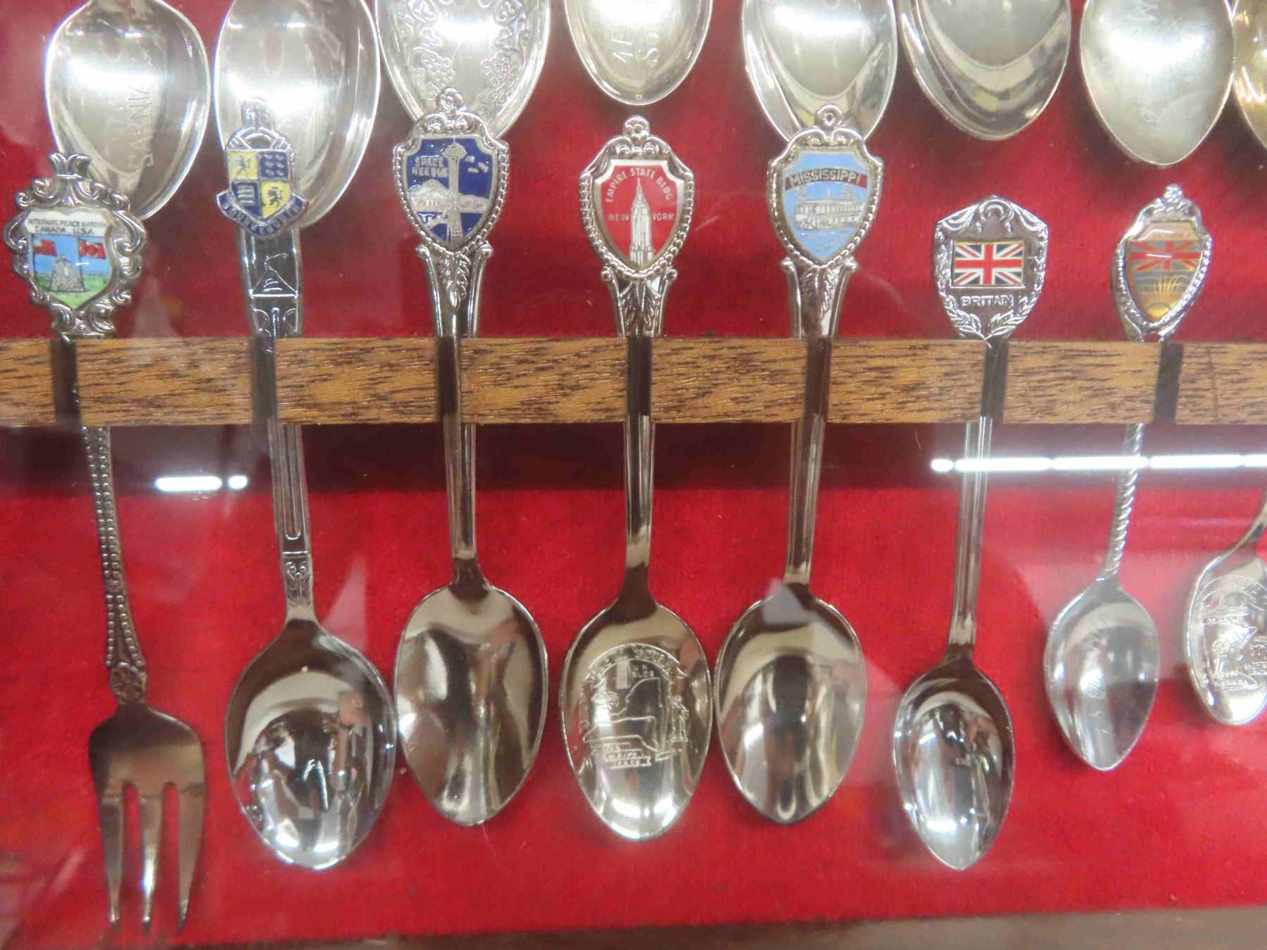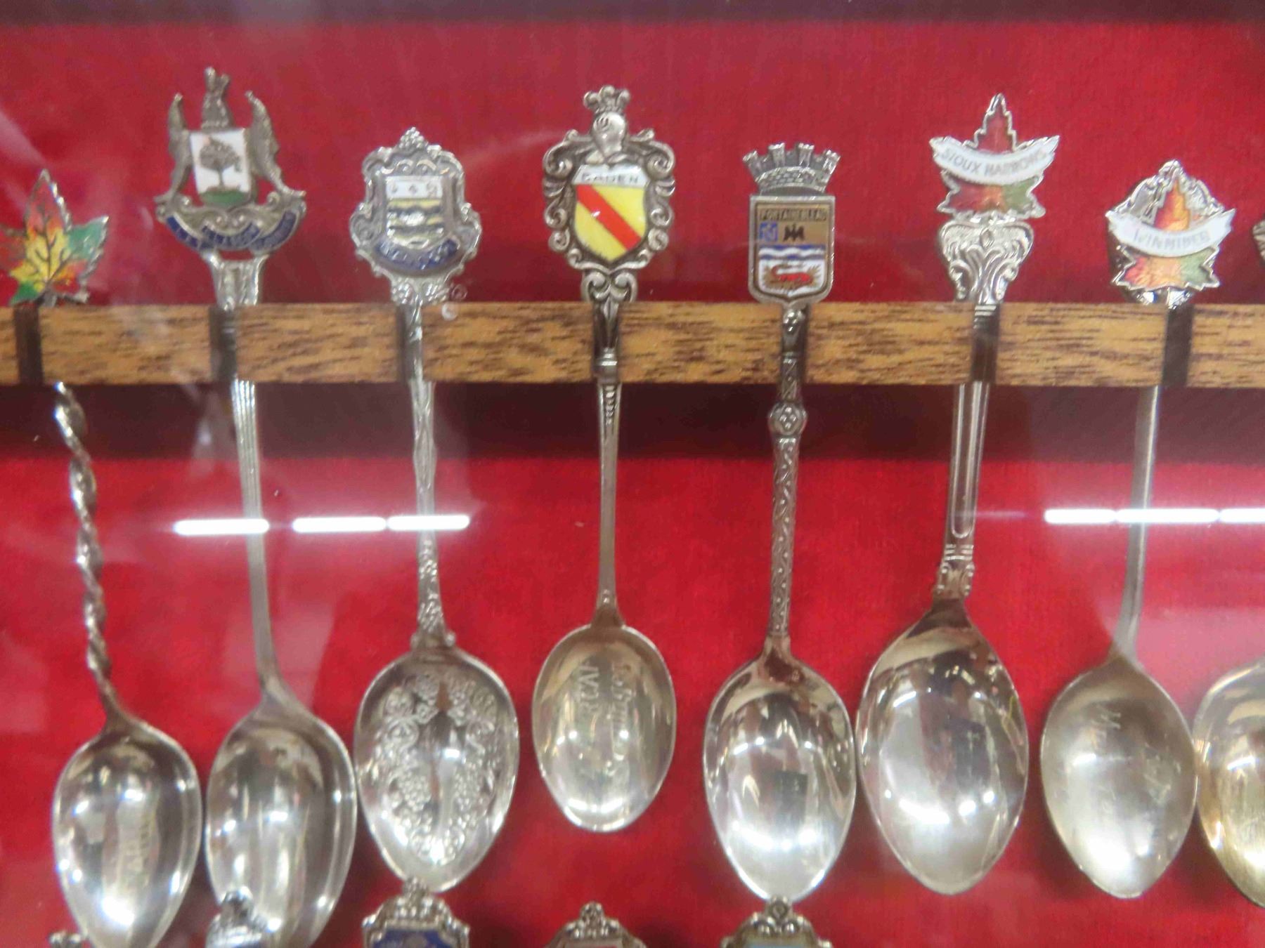3 Wood and Glass Cases Full of Collector Spoons 25'' x 13''
