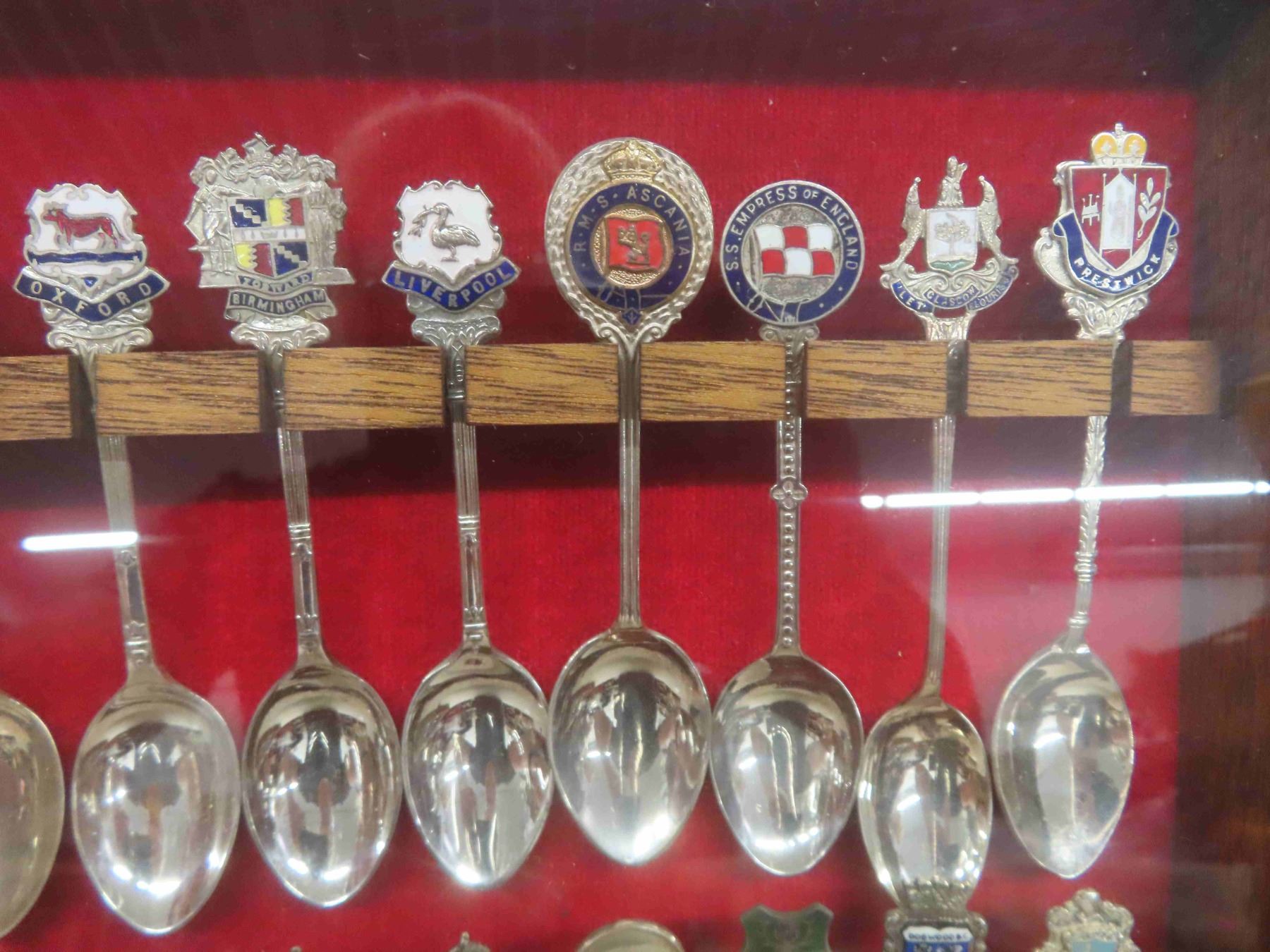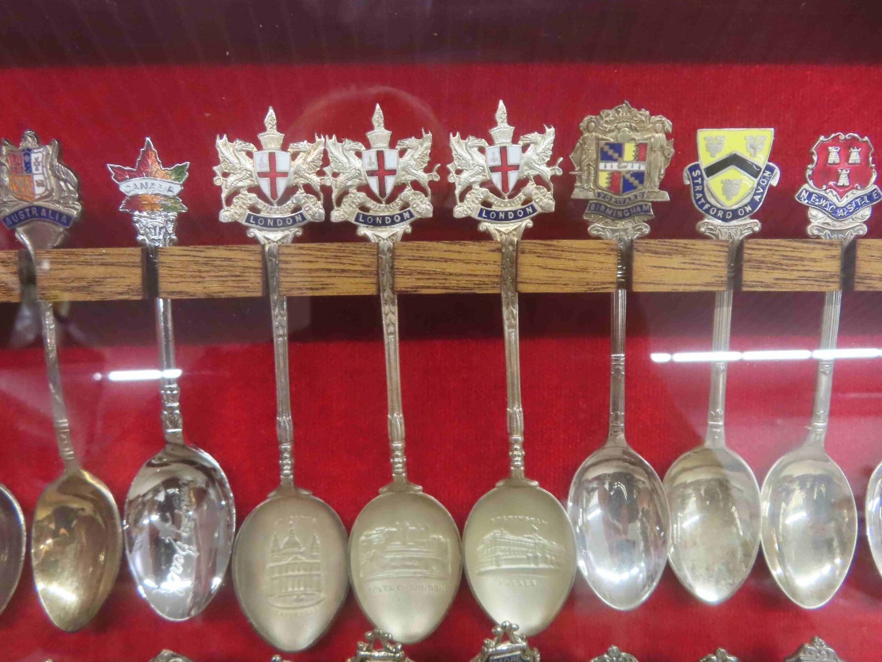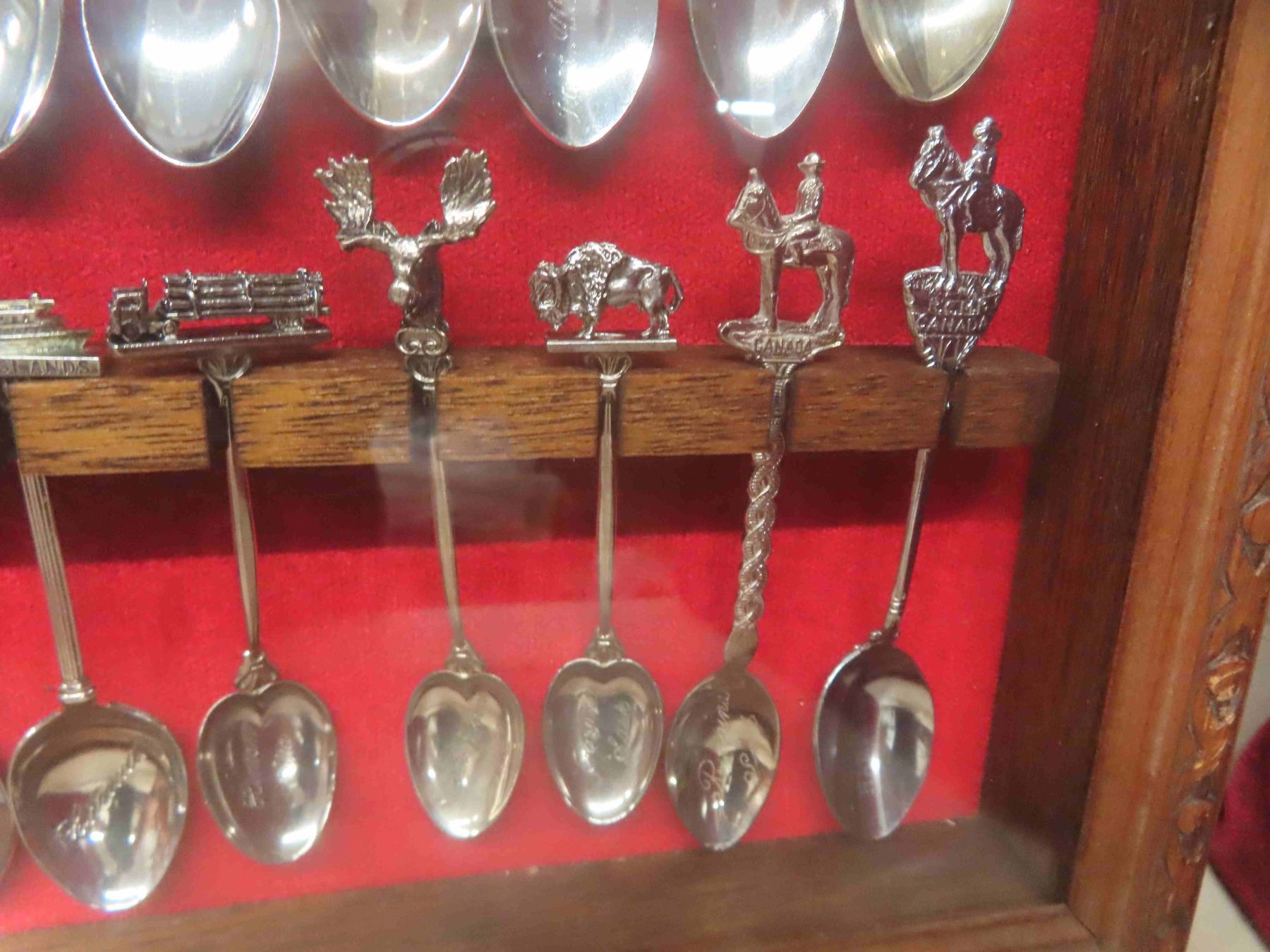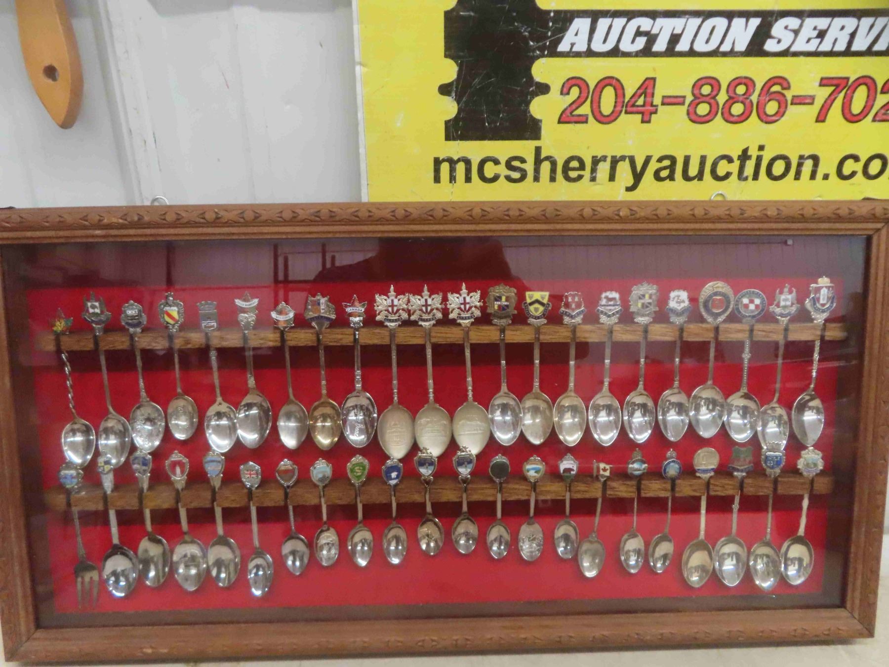 3 Wood and Glass Cases Full of Collector Spoons 25'' x 13''