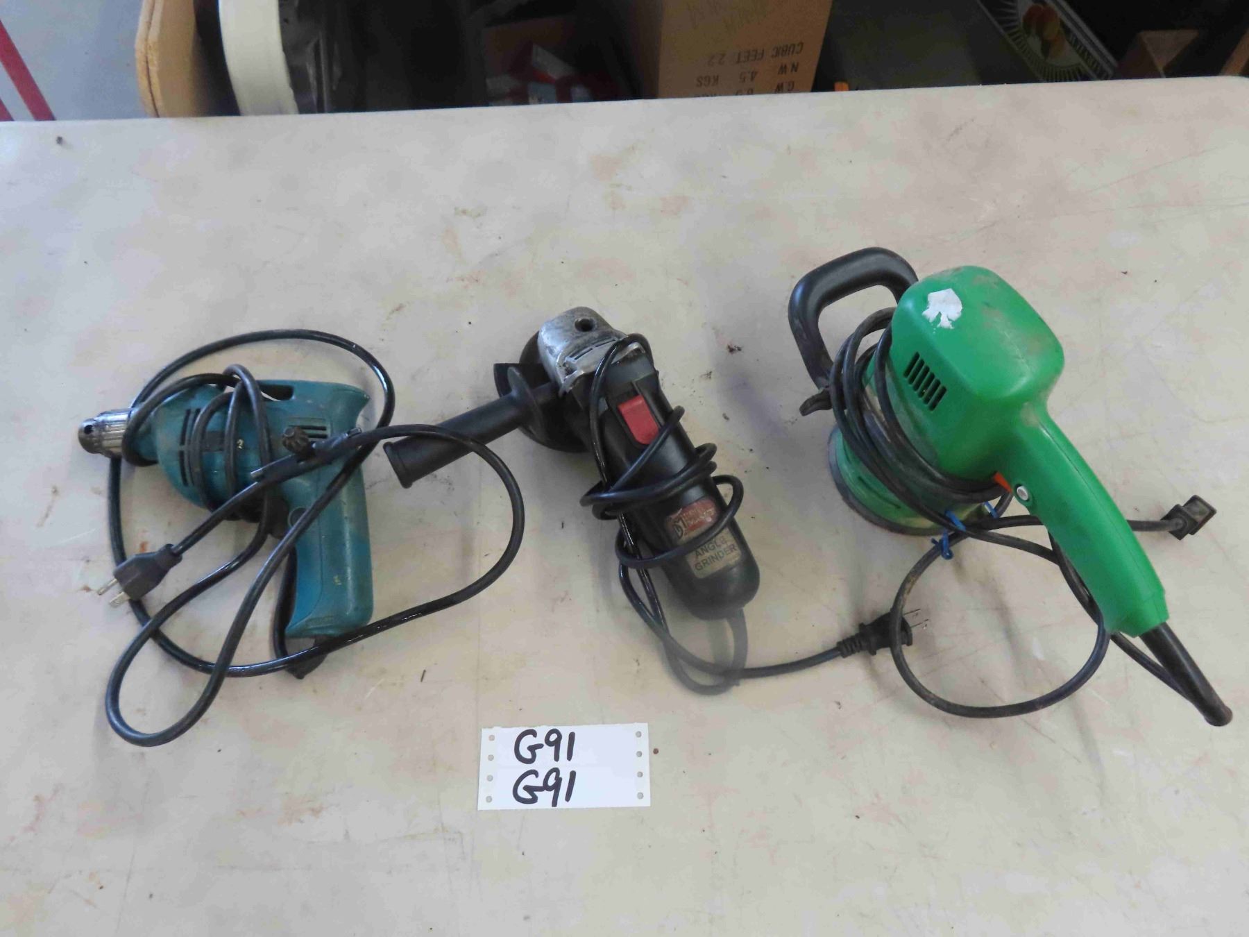 3 Working Electric Power Tools ; 3/8" Drill, Angle Grinder, Sander