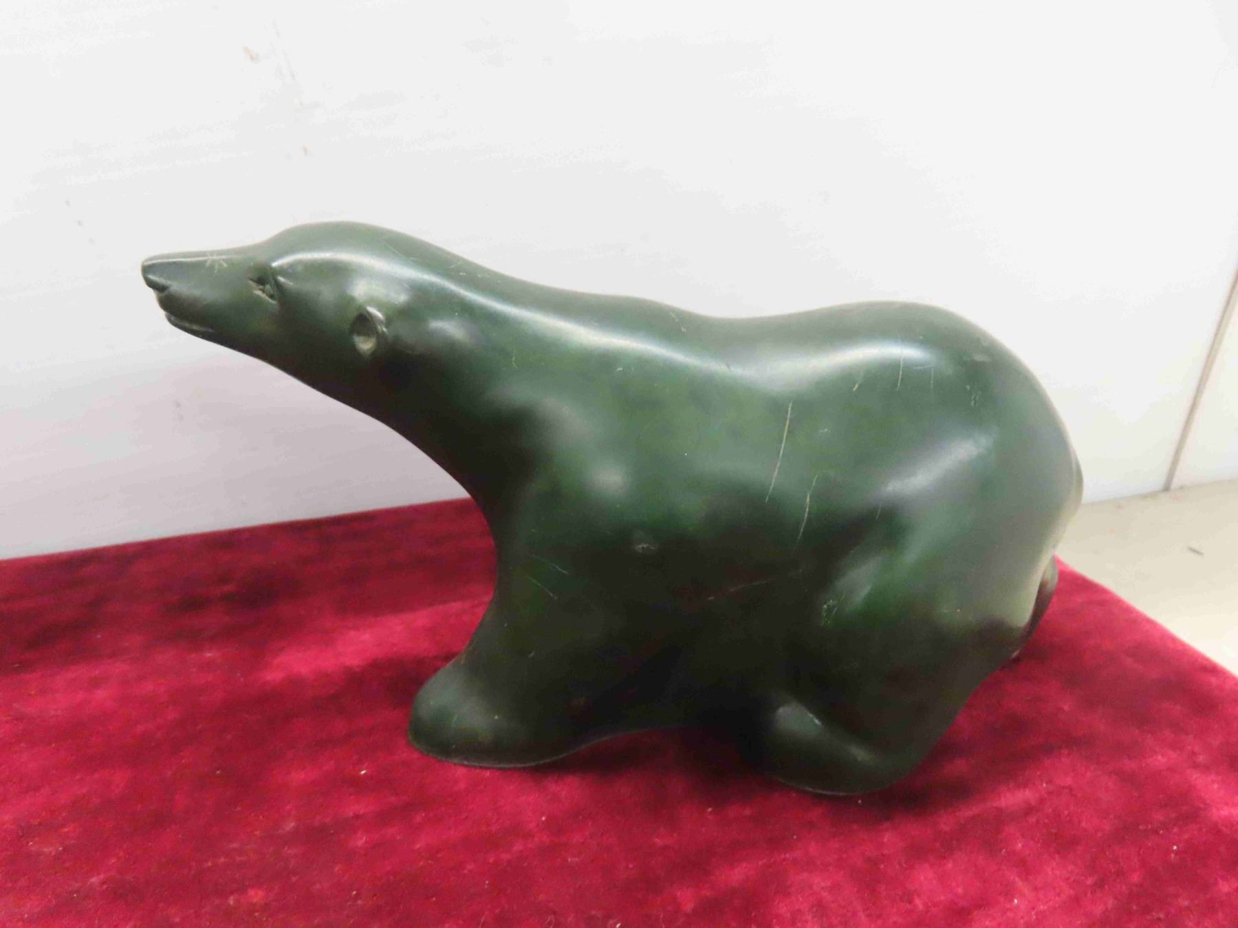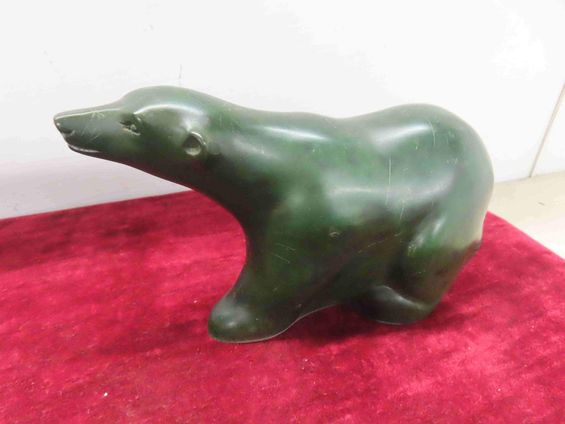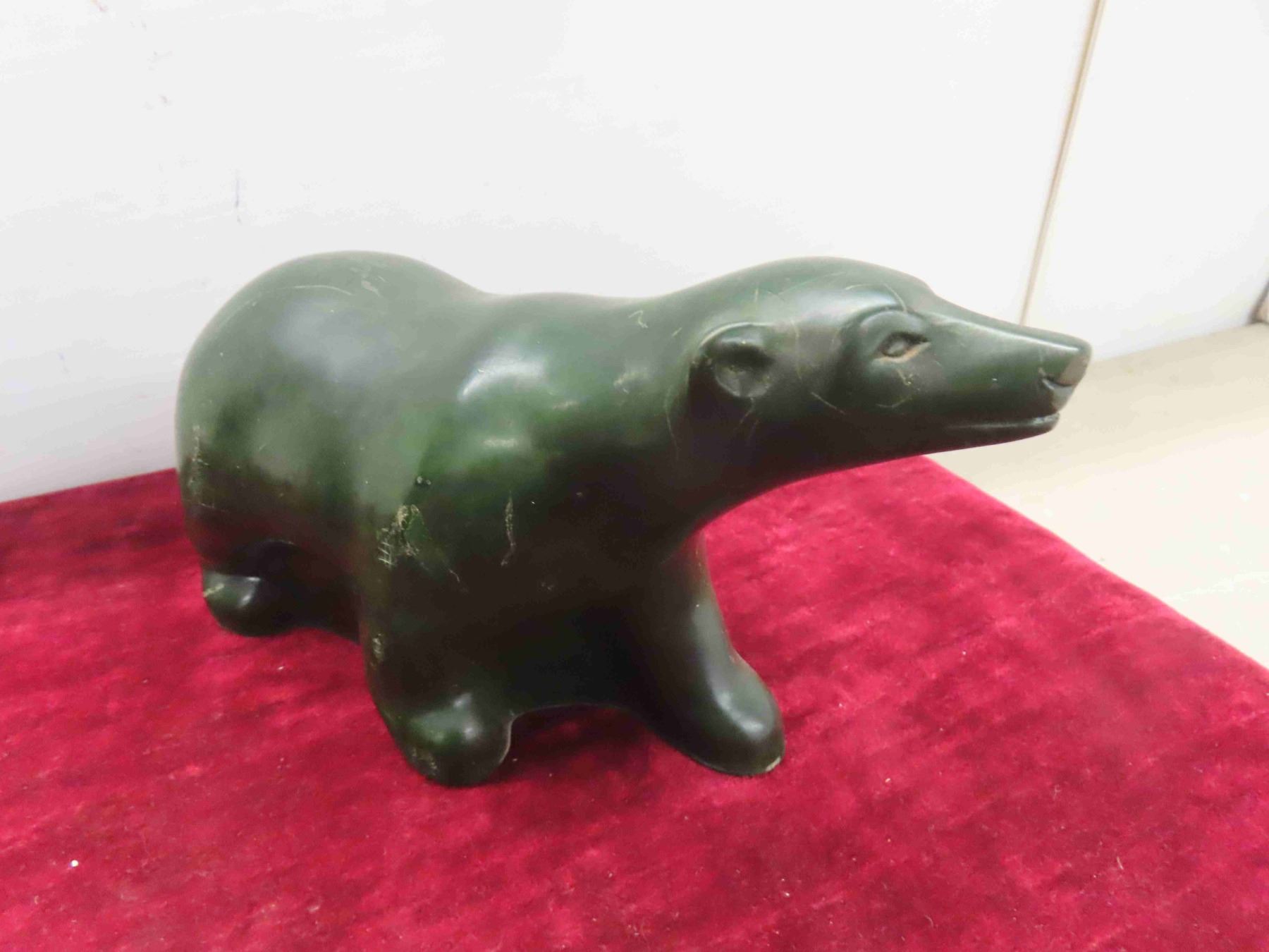 3 blue mountian style figurines and tamarock stonecraft bear 9x3.5x5"