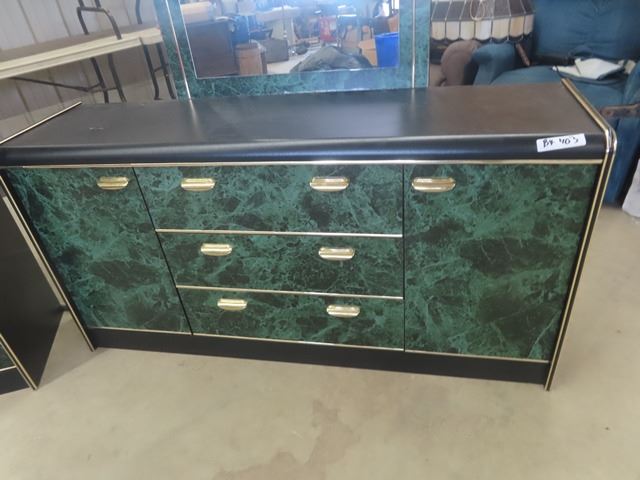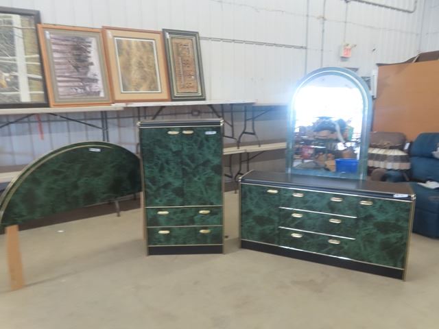 3 pc Bedroom Suite: Dresser 29" x 59" x 16" + Mirror 31" x 41" , Dresser 52" x 30" x 16" , Headboar