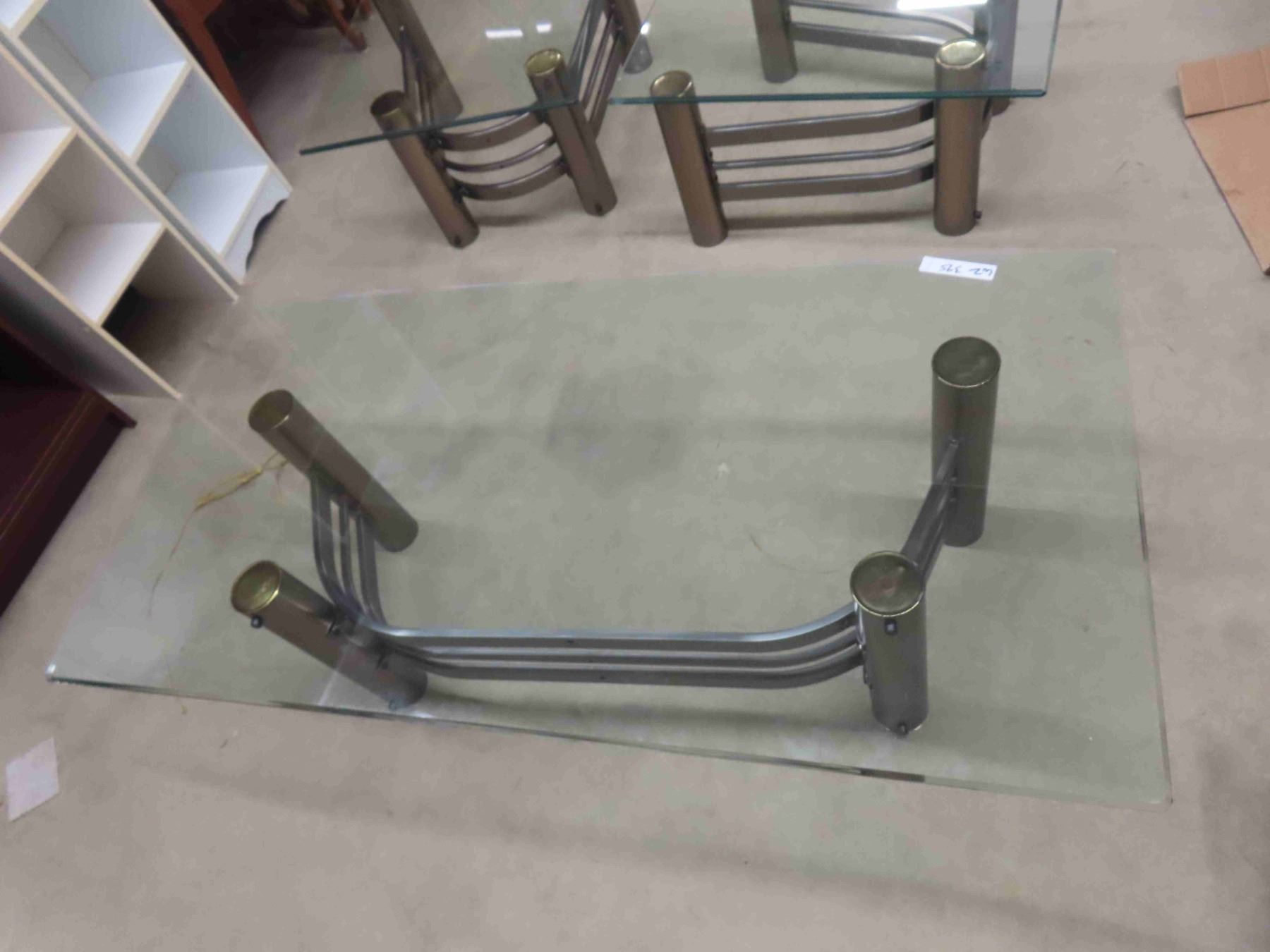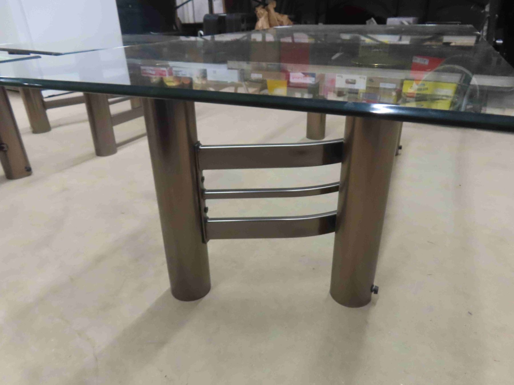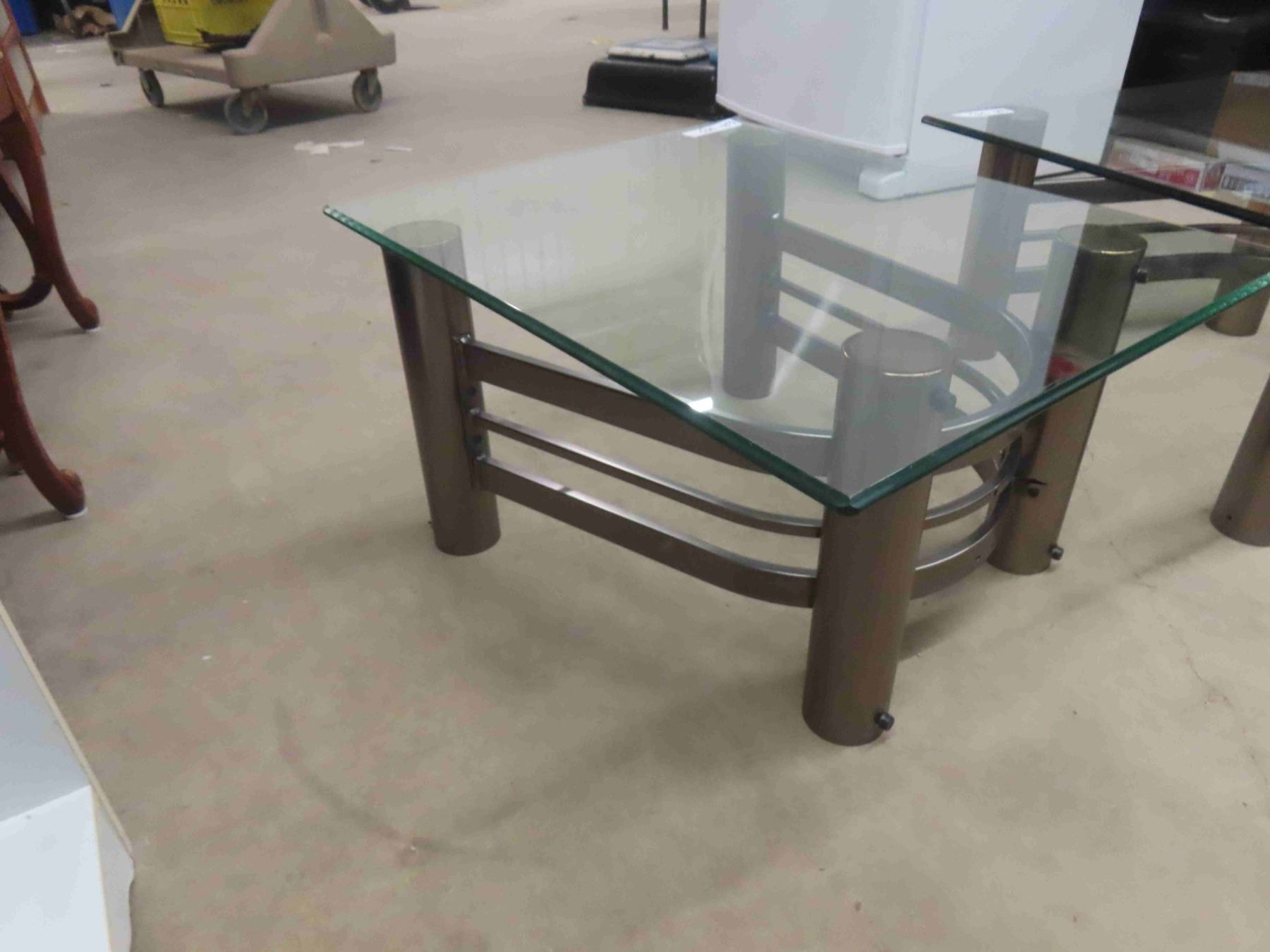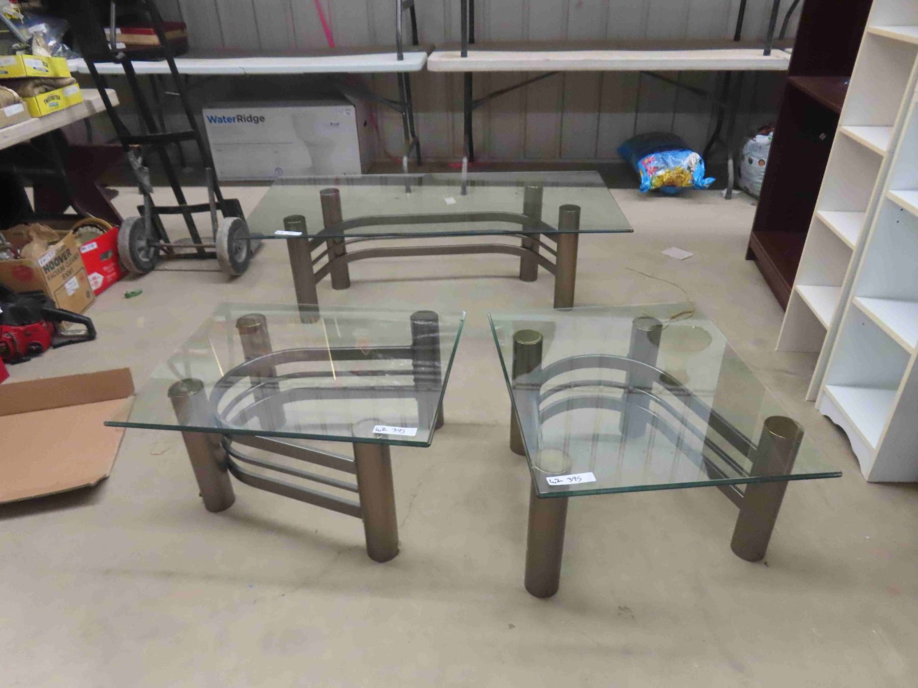 3 pc Glass Top Table Set ; Coffee Table 16" x 26" x 52" & (2) End Tables 14" x 23" x 28"