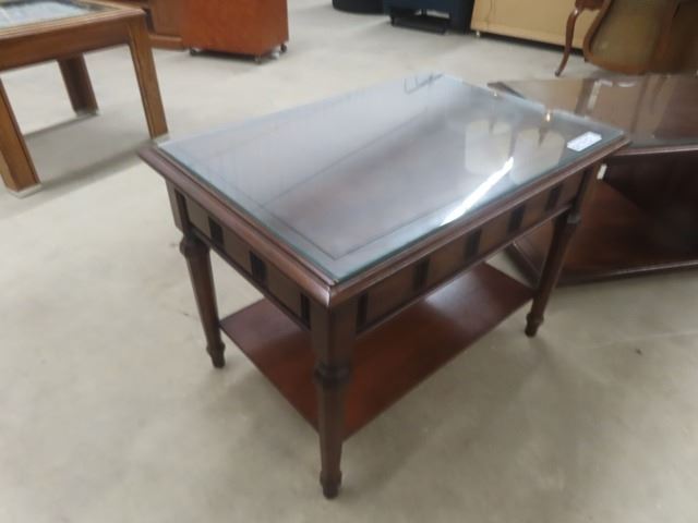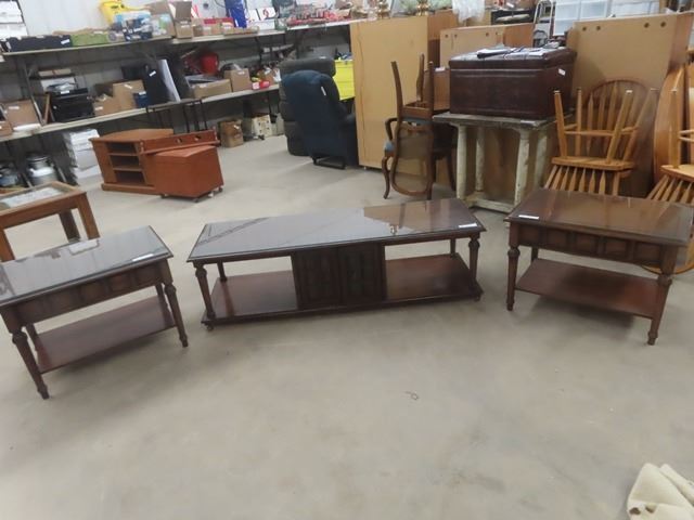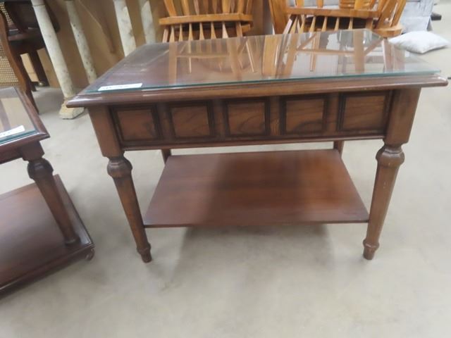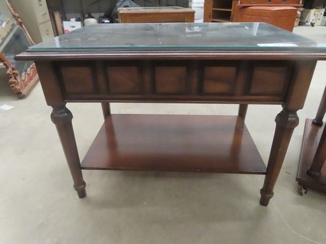 3 pc Table Set with Glass Top Protectors ; Coffee Table 17" x 20" x 60" + 2 End Tables 20" x 20" x 30"