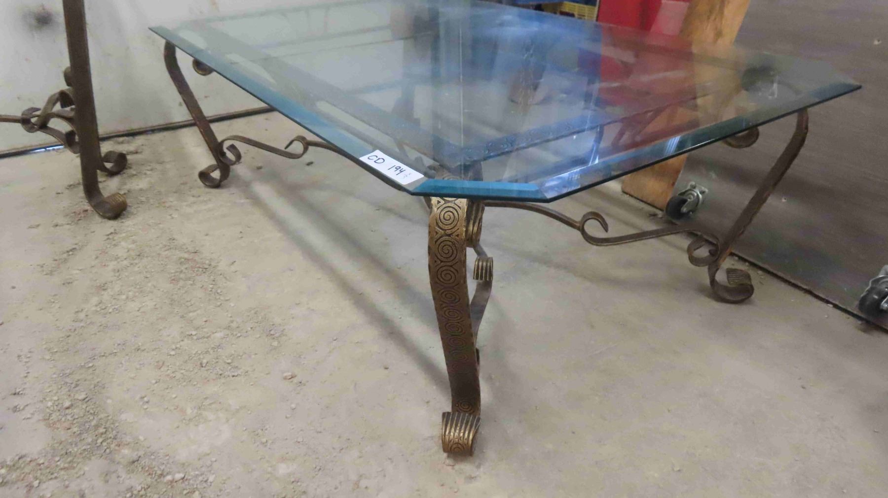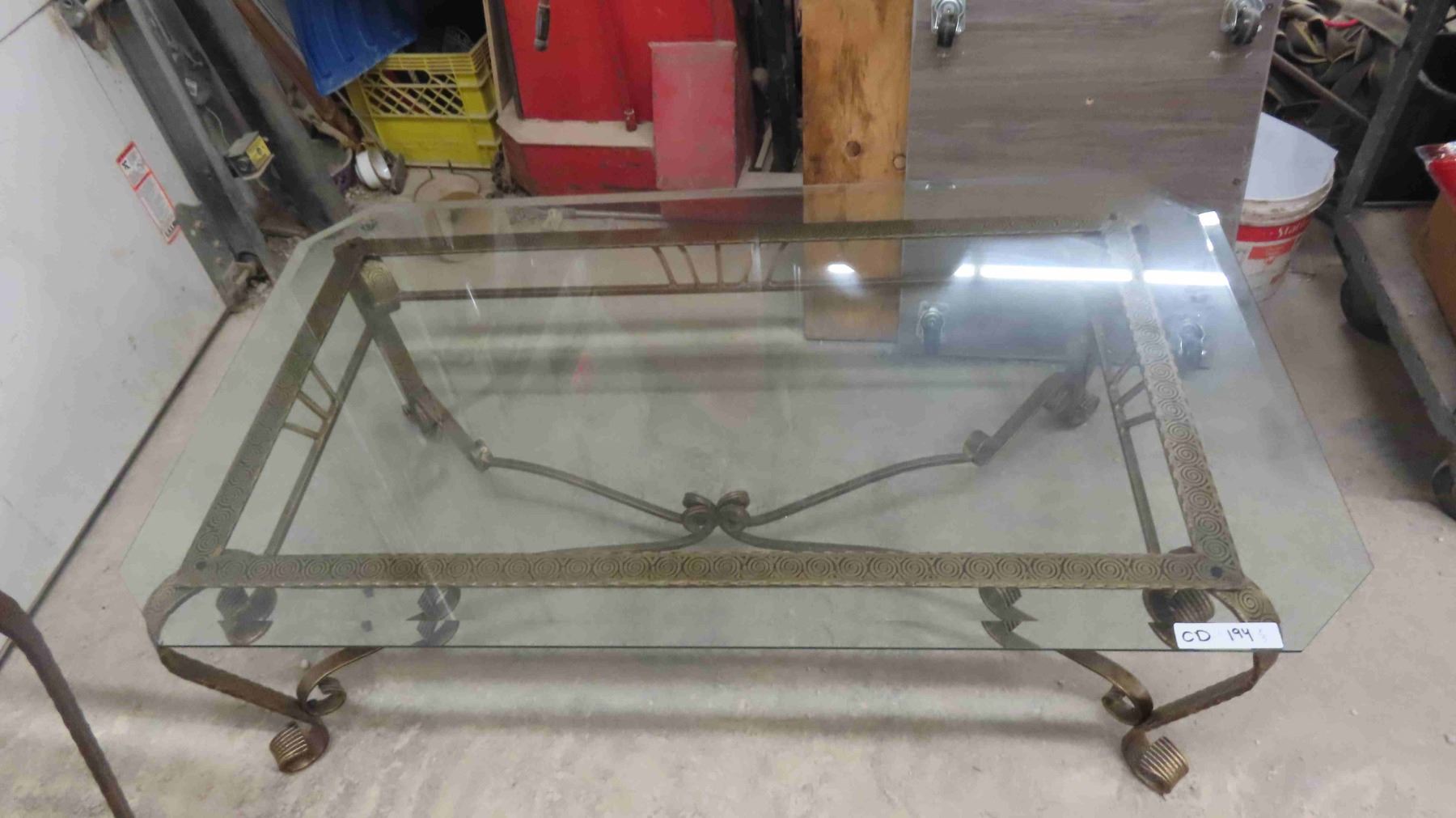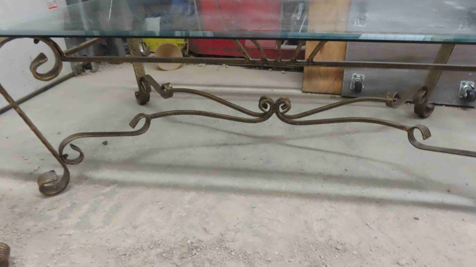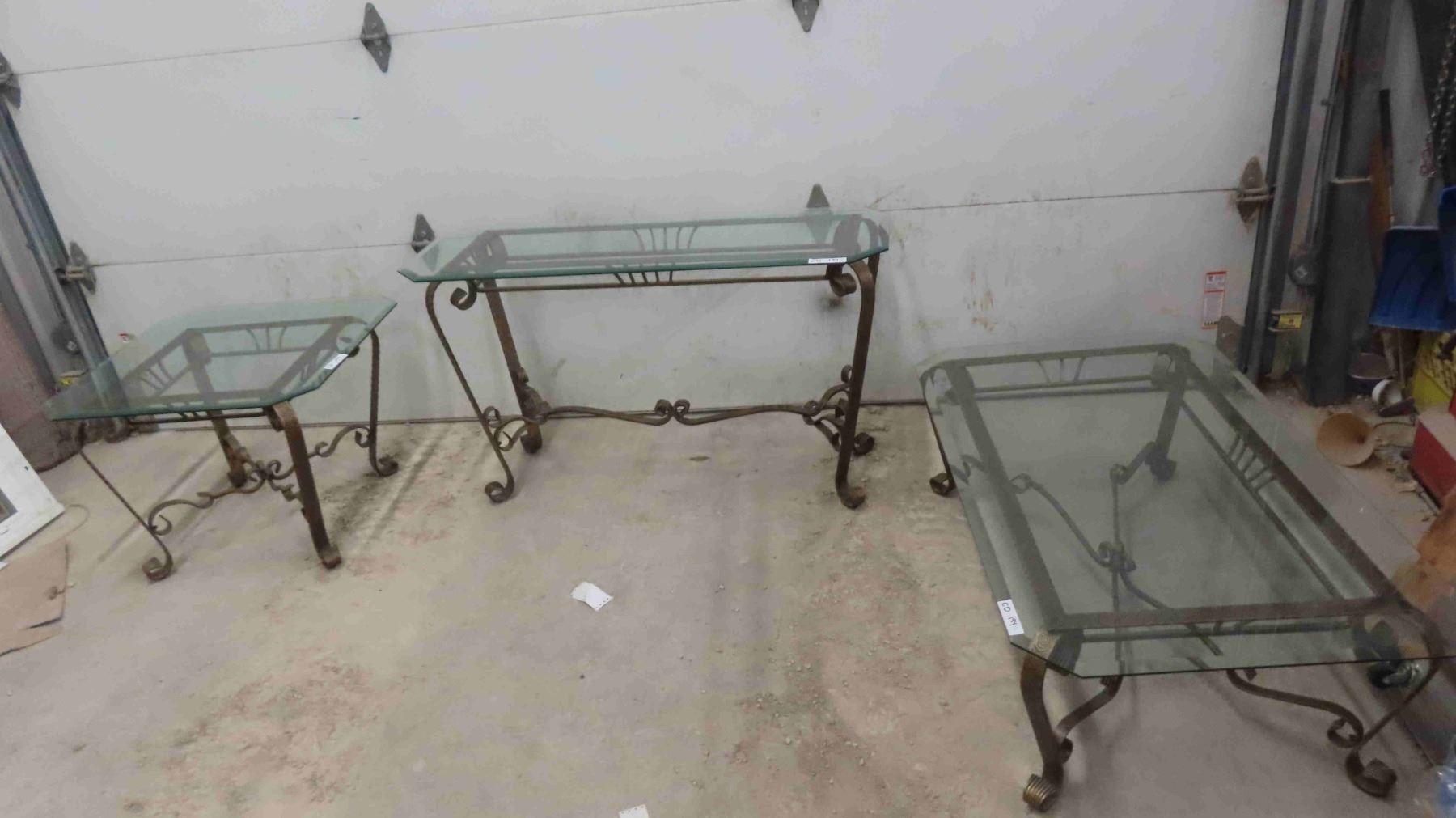 3 pc Wrought Iron Glass Top Table Set ; Coffee 16" x 29" x 49" + Sofa 18" x 28" x 50" + End Table 21" x 29" x 29"