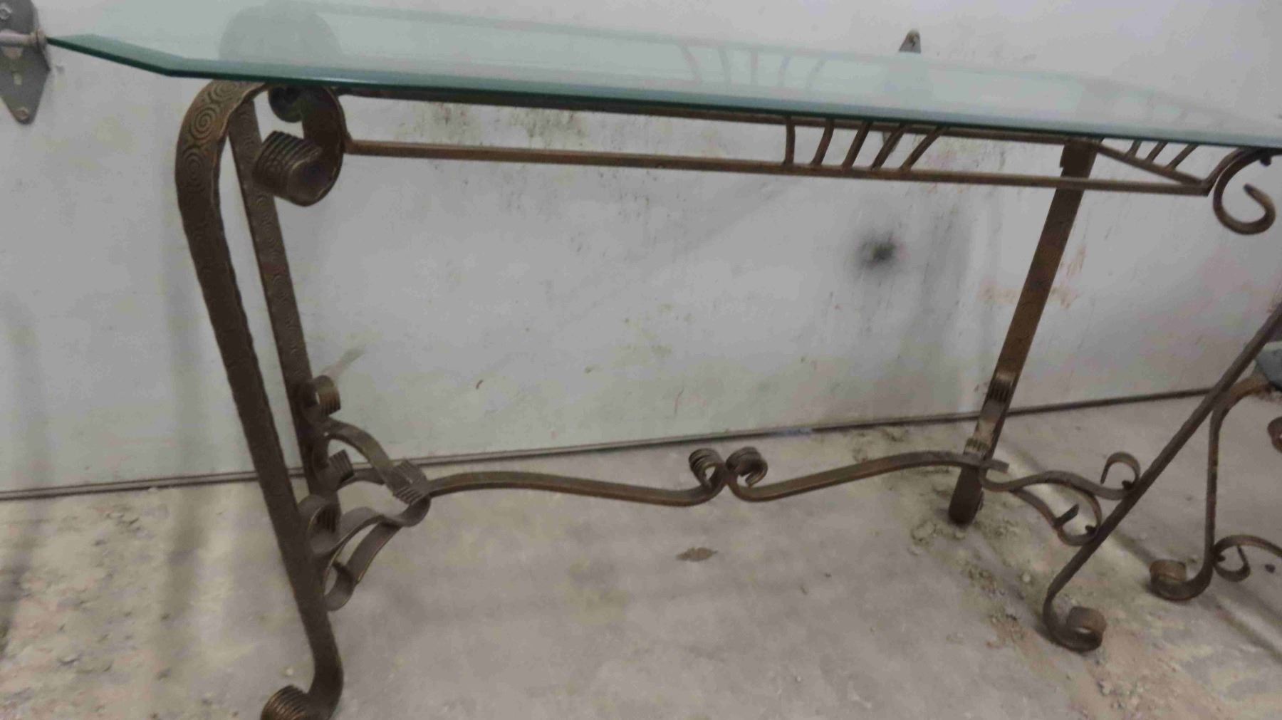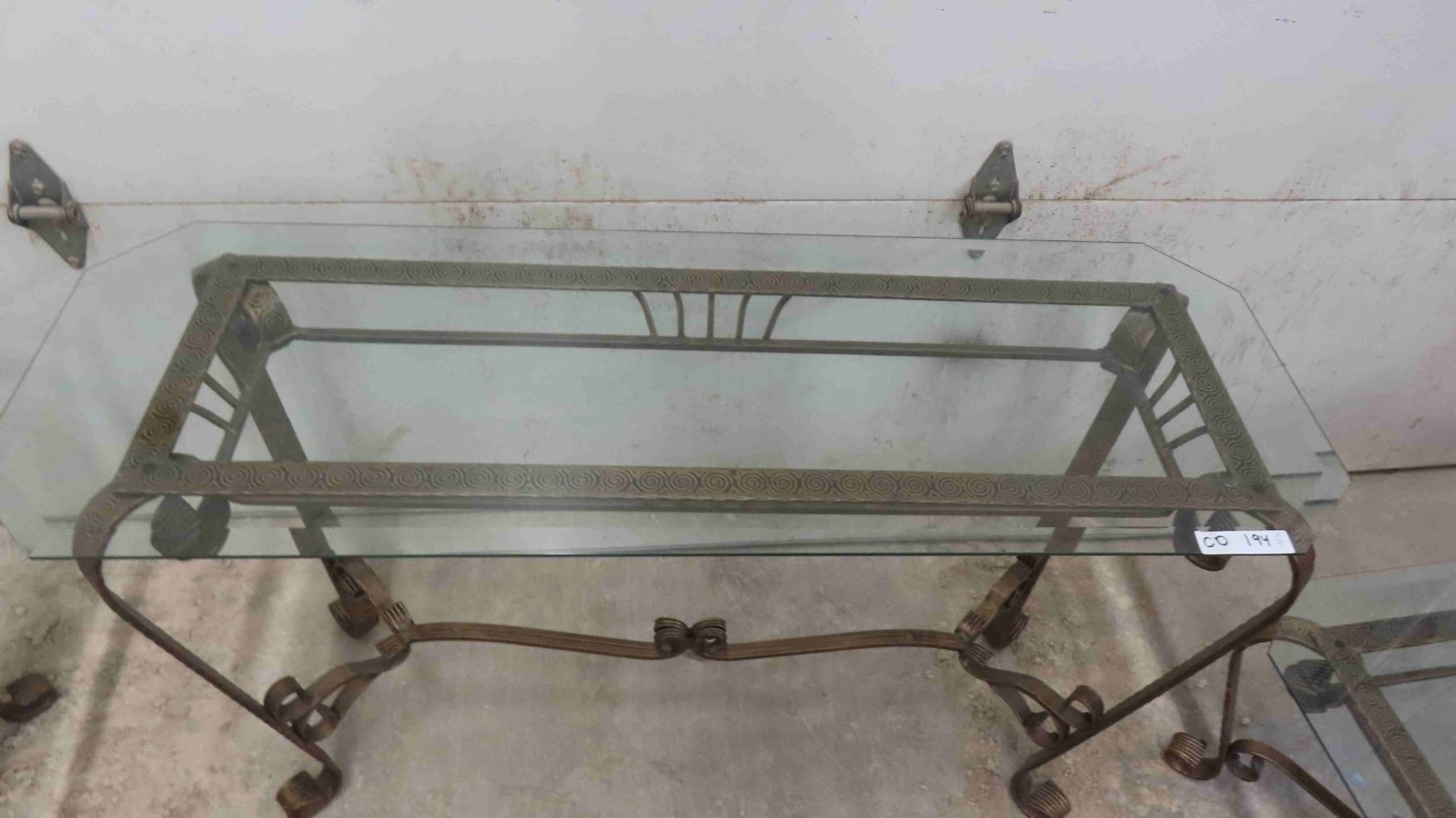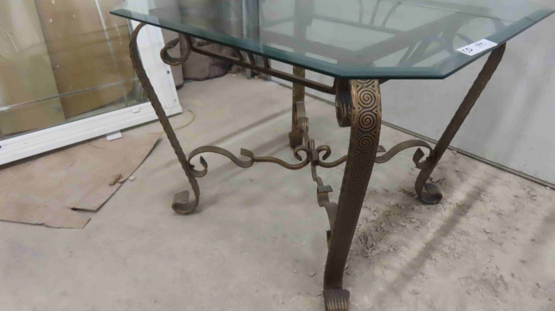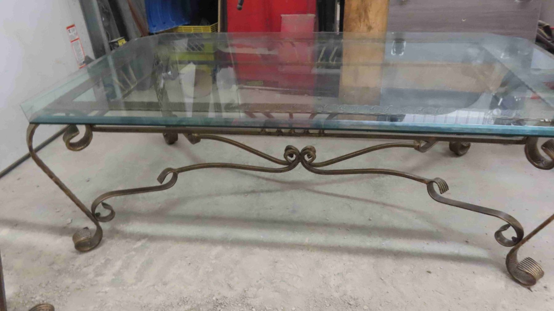 3 pc Wrought Iron Glass Top Table Set ; Coffee 16" x 29" x 49" + Sofa 18" x 28" x 50" + End Table 21" x 29" x 29"