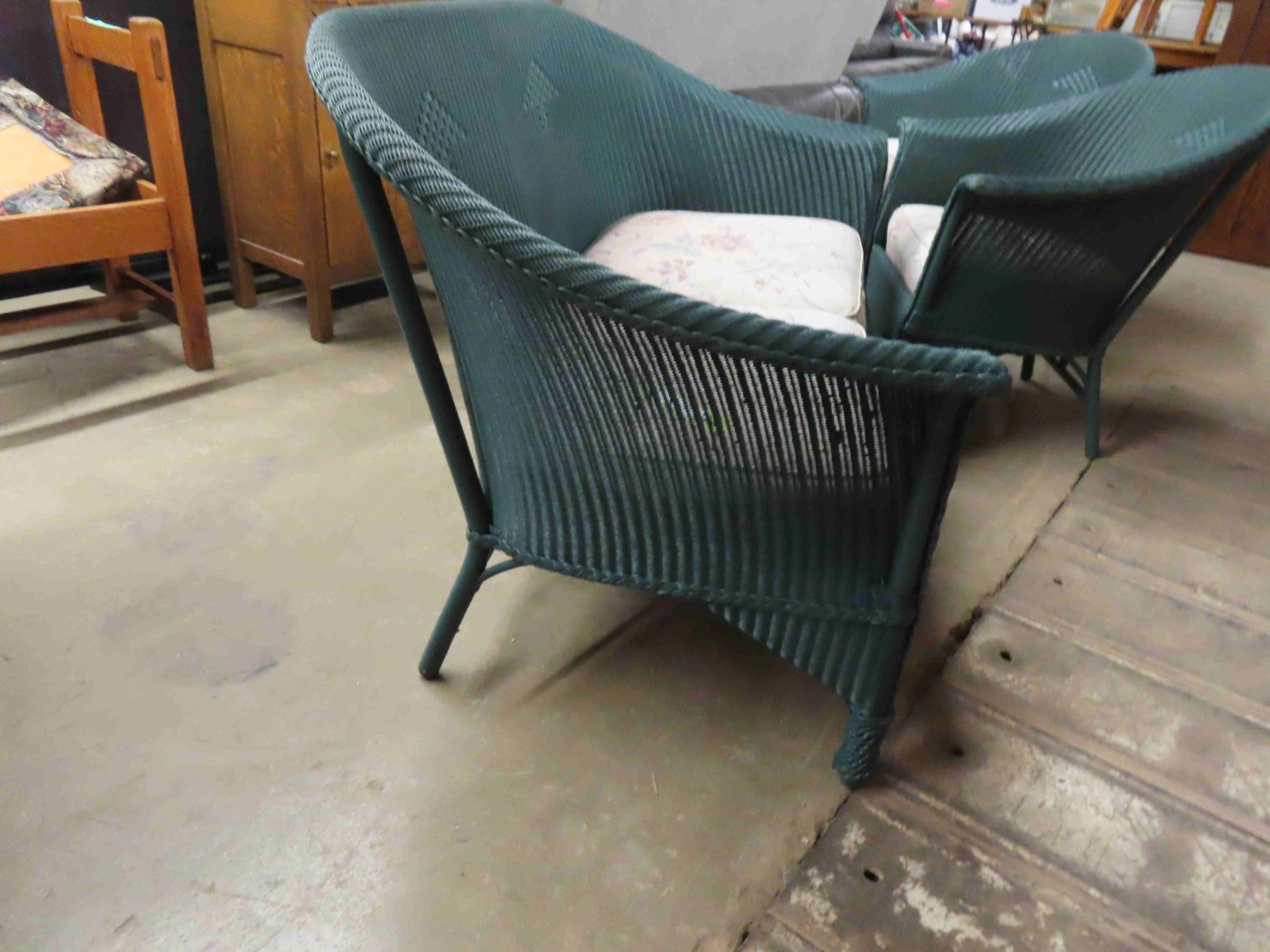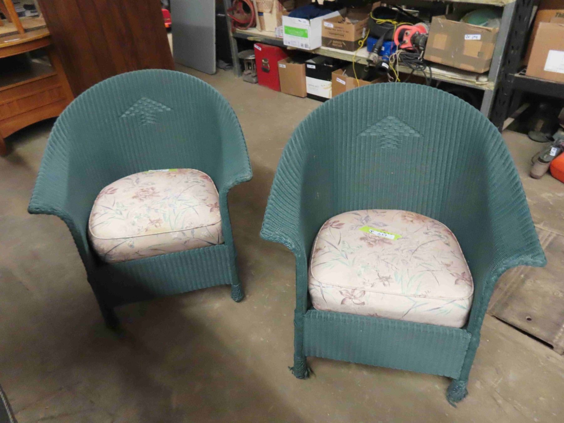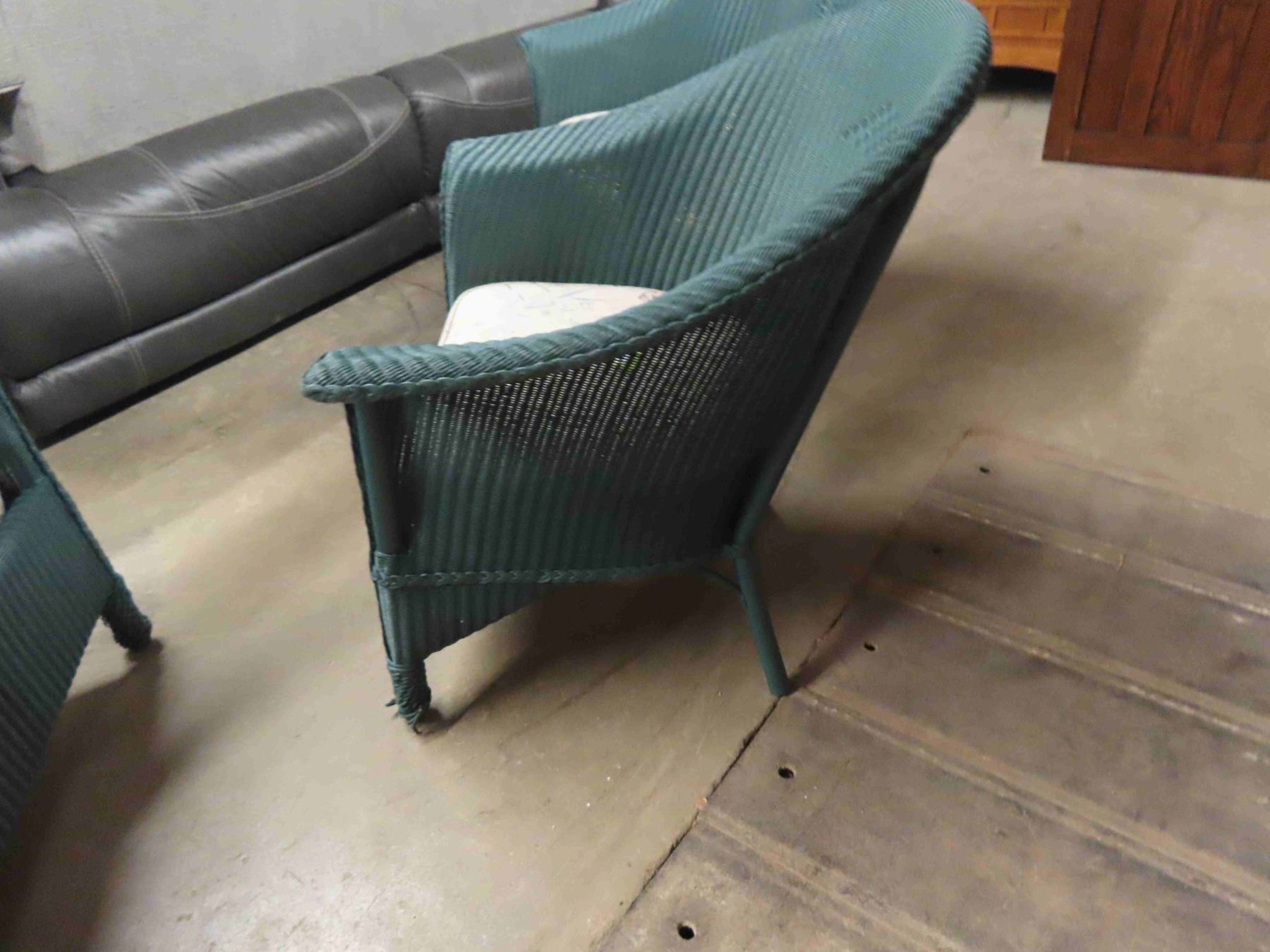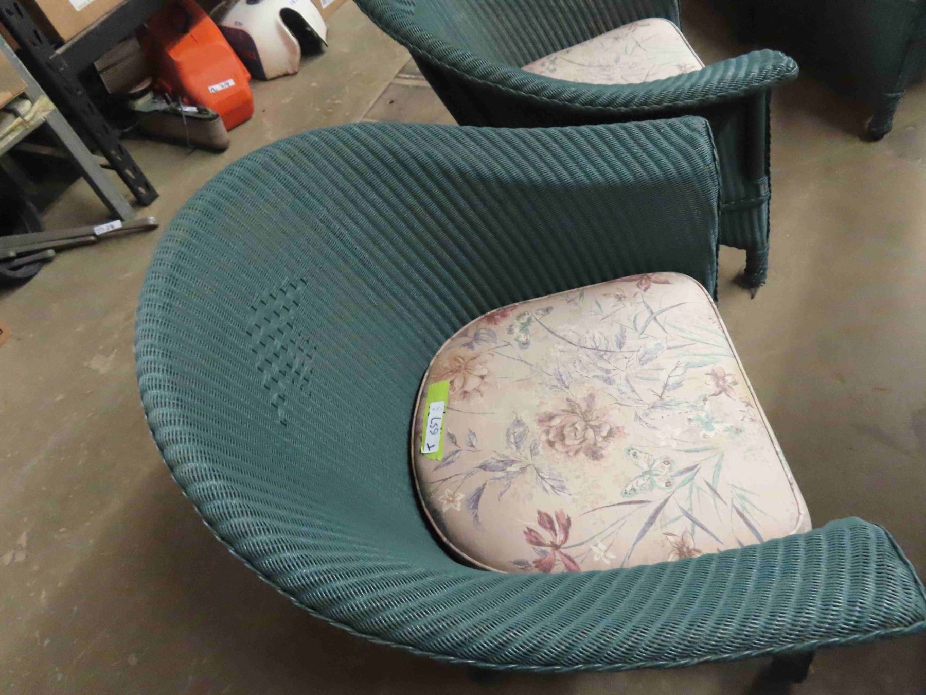 3 pcs of Wakefield Wicker Furniture - one settee and two matching chairs - some restoration and are now painted an era appropriate vintage green colour - one small rip on the side of one of the cushions which are spring filled. A beautiful set for old or new homes.