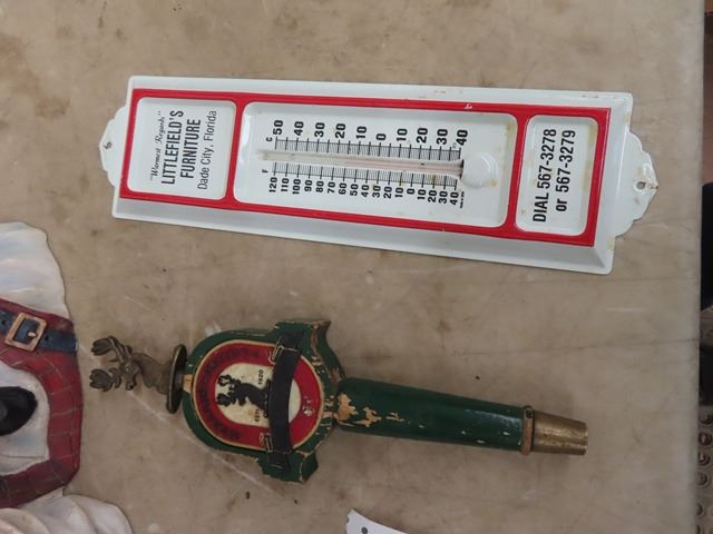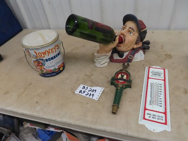 3'x 6' Canadian Flag, Wine Bottle Holder, Lowney Tin, Thermometer, & Draft Tap