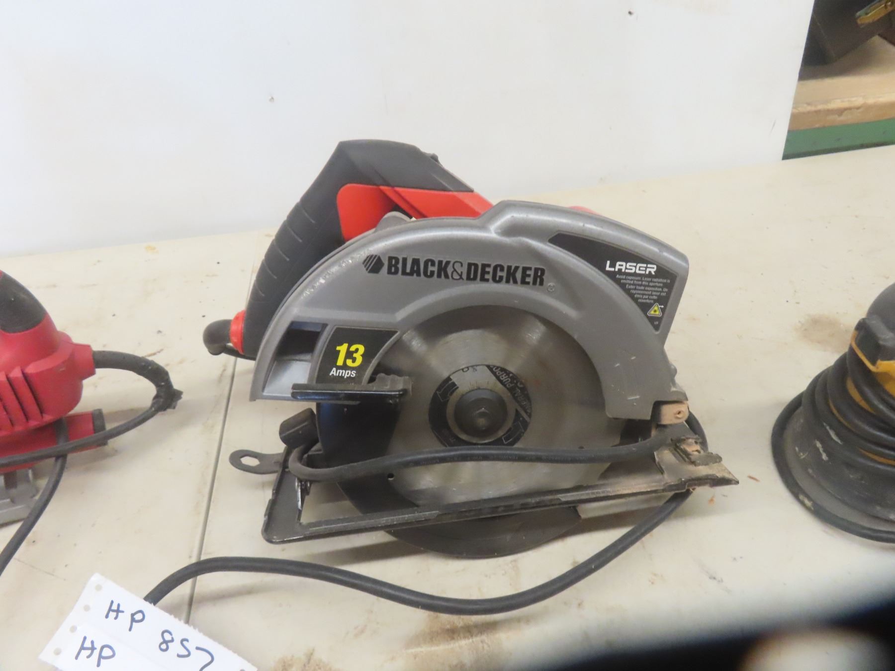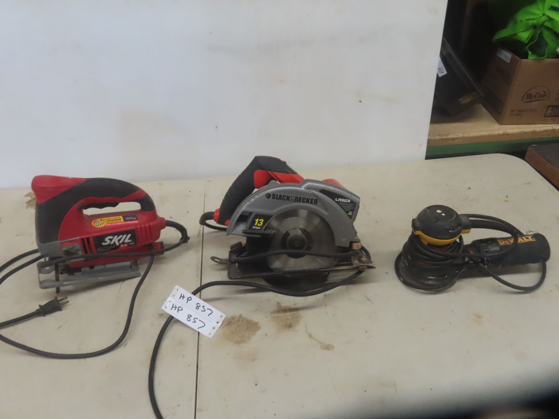3 x Power Tools, Skil Jig Saw 5 amp, Black and Decker Circular Saw 13 Amp with Laser, Dewalt Orbital Sander