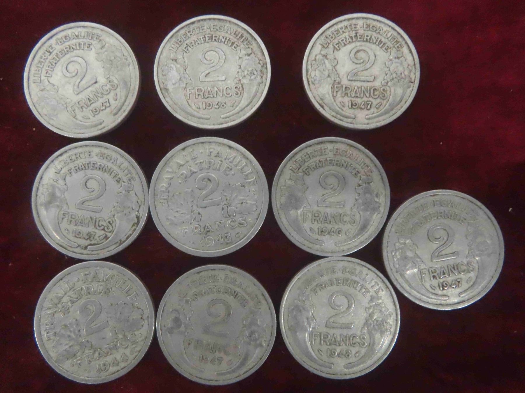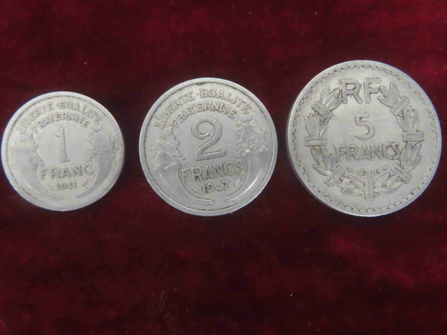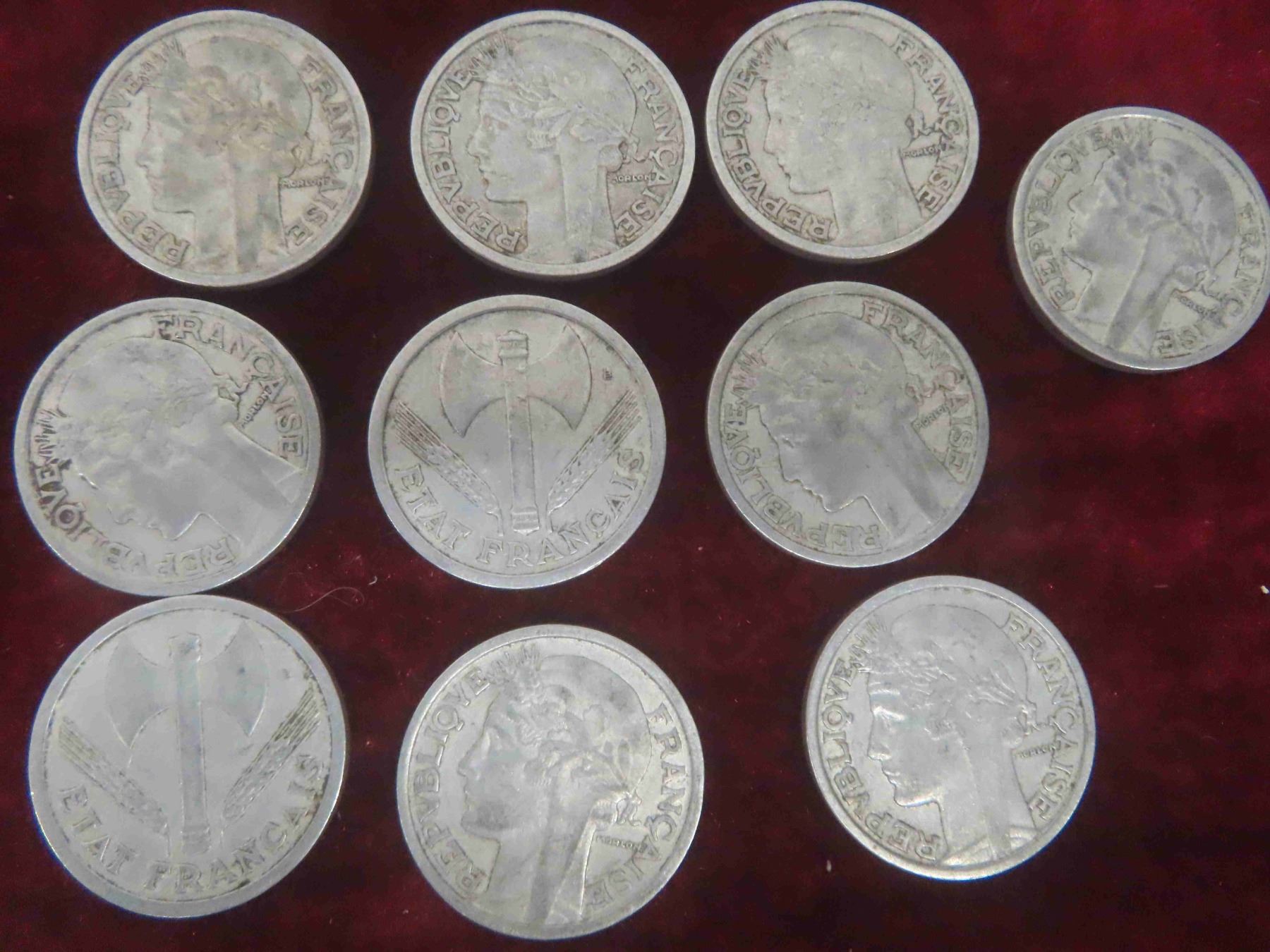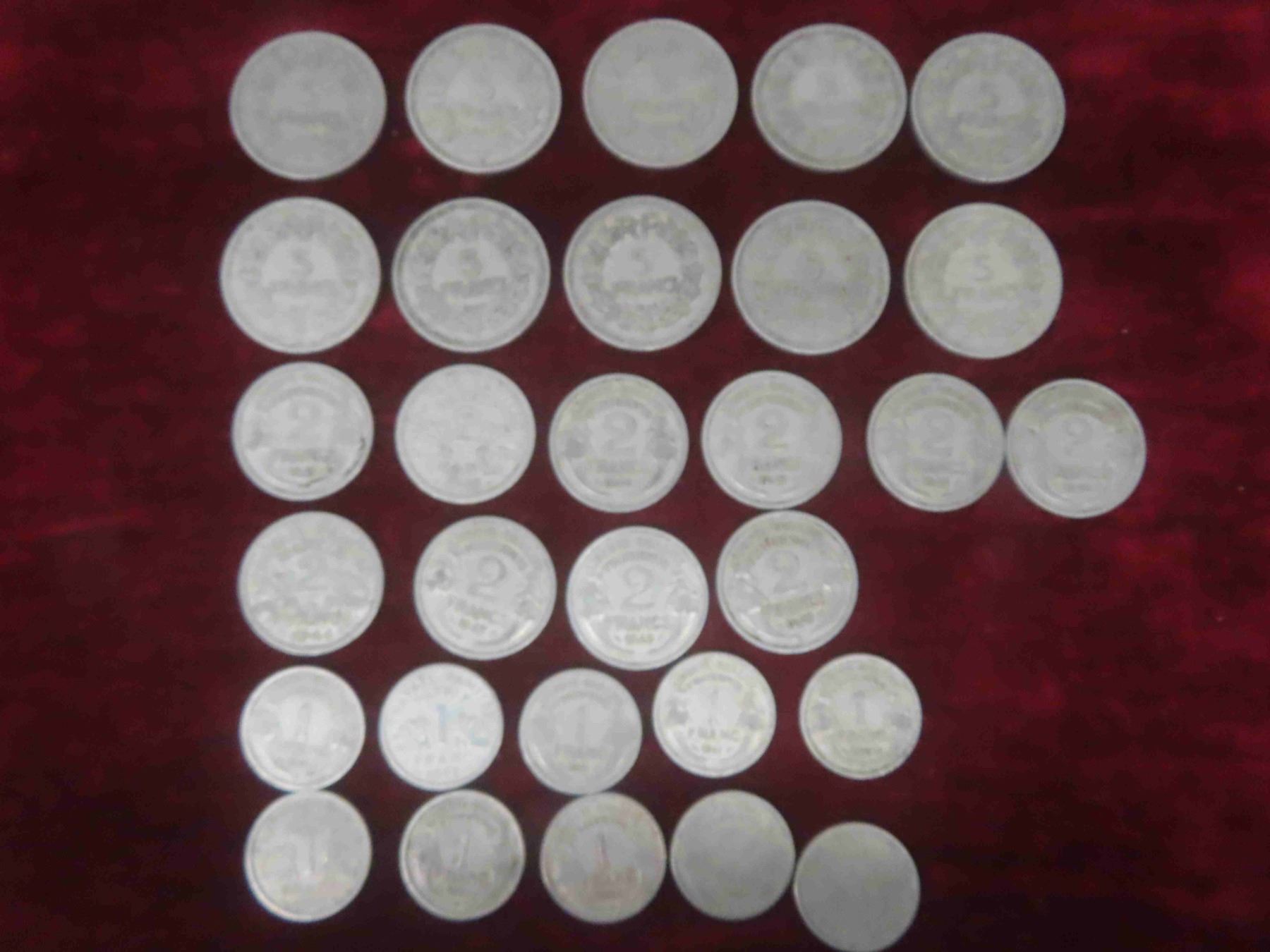 (30) 1940s France 1, 2, 5 Franc Coins