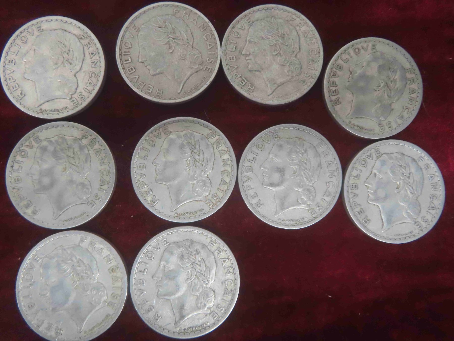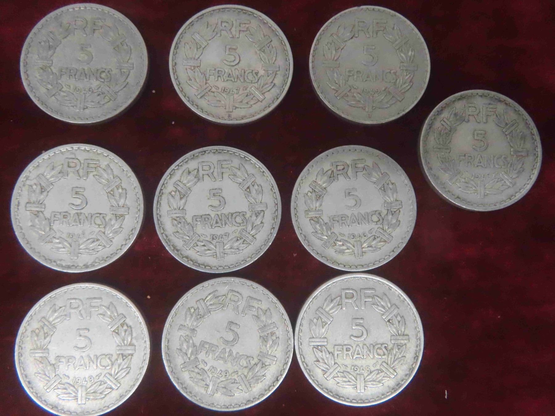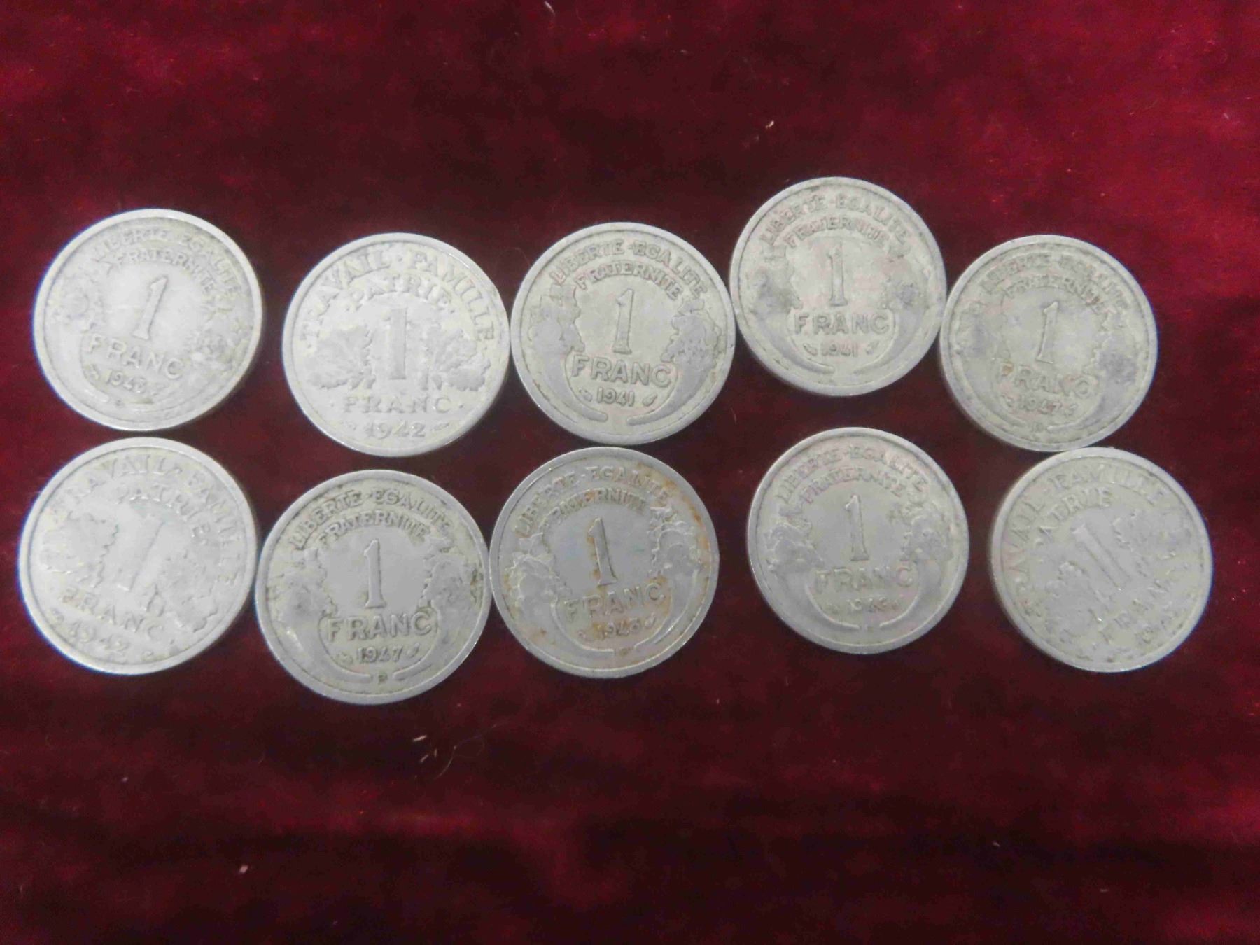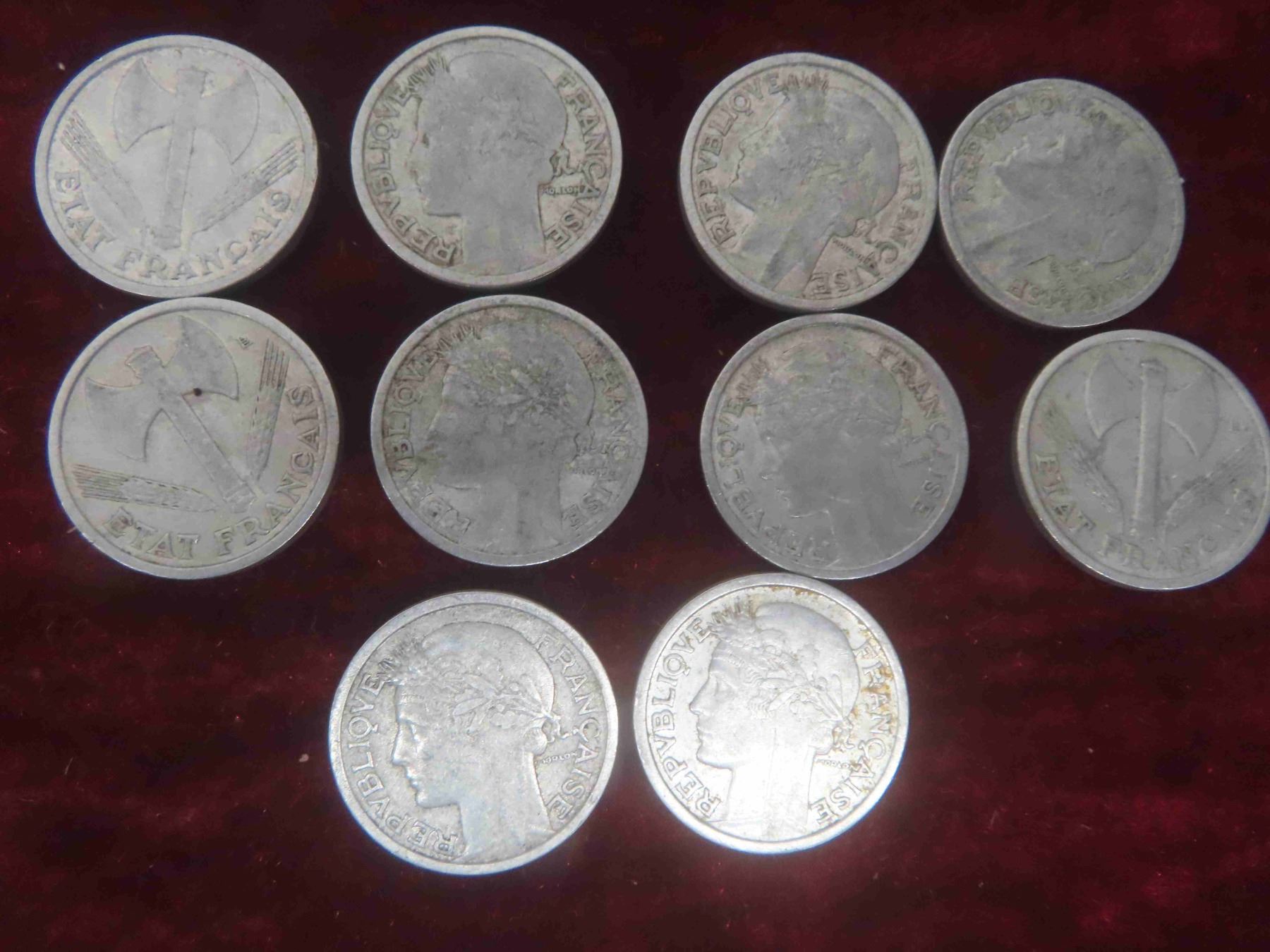 (30) 1940s France 1, 2, 5 Franc Coins