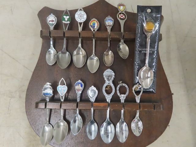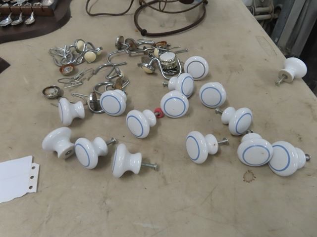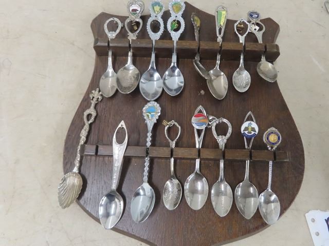 30 Collectible Spoons w Display Vintage Porcelain & Metal Door Pulls Fan