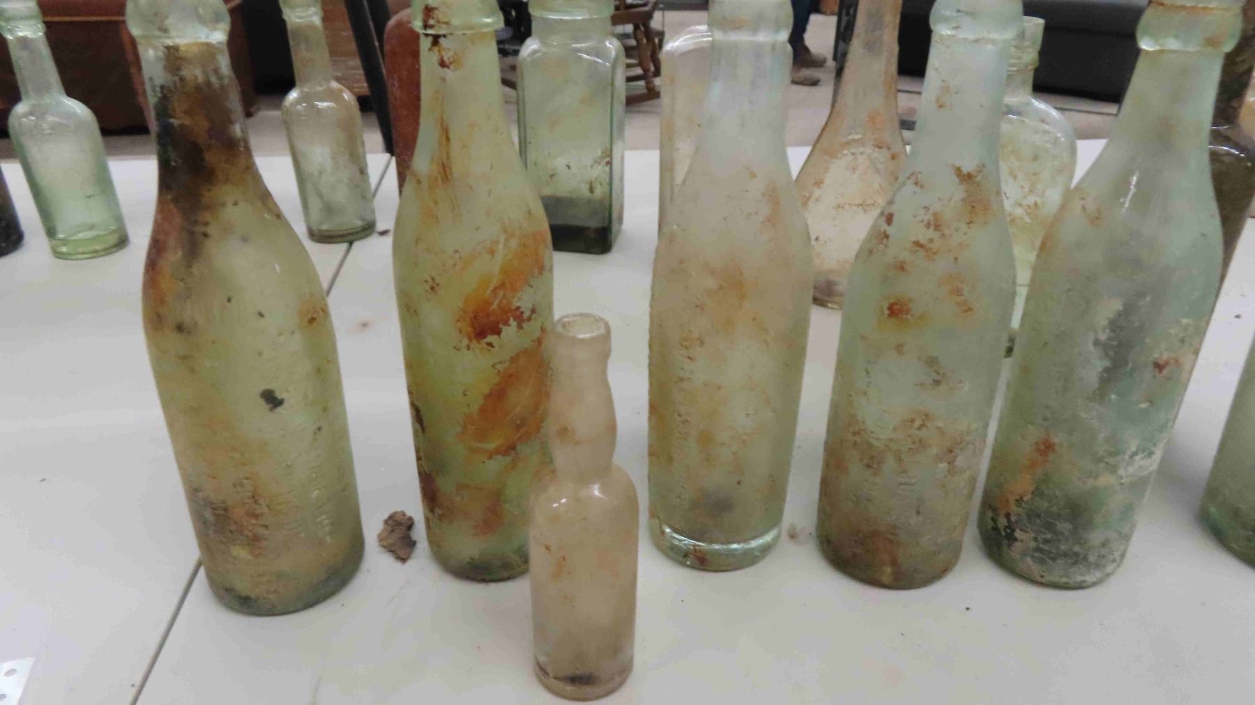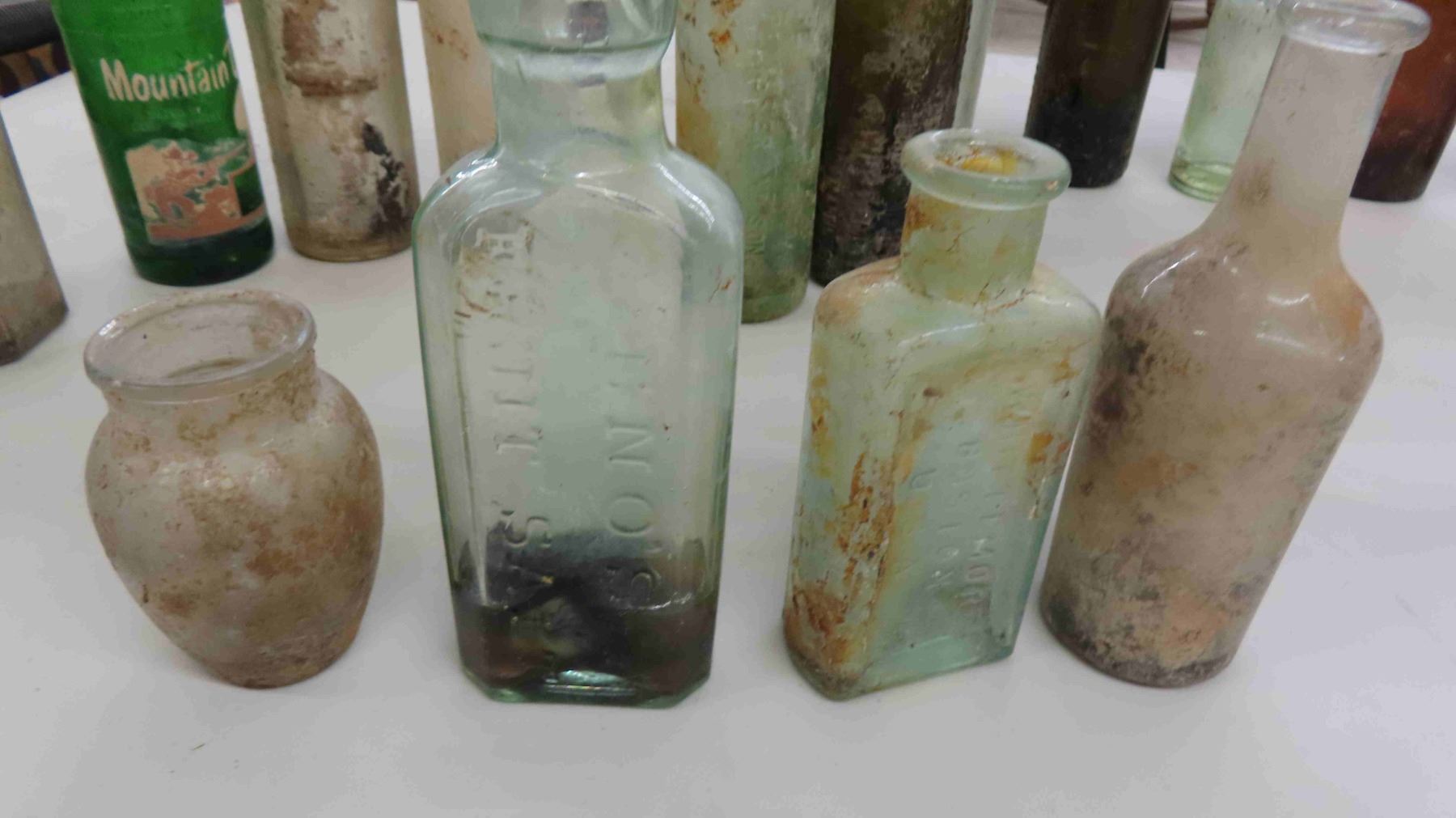 30 Misc. Bottles ; Mountain Dew, Eno's. Fruit Saek, plus many more 100 Years Old, Separate Lips