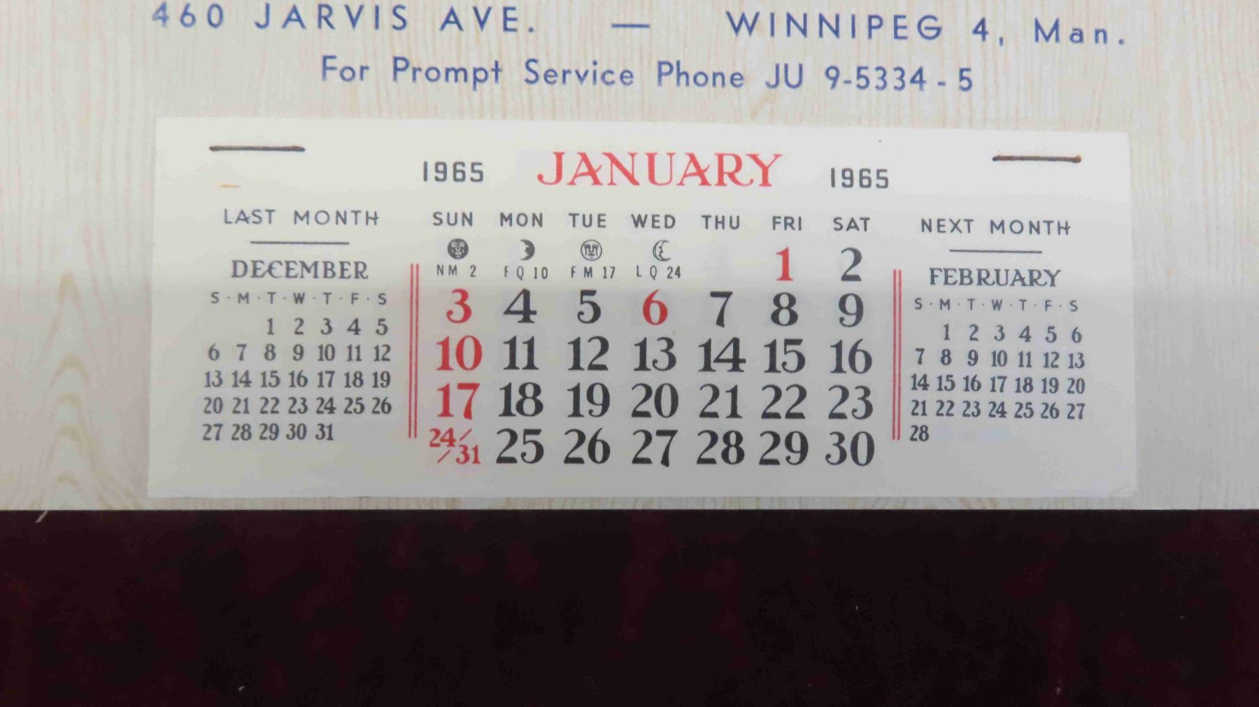 30 New Old Stock Calenders from 1962-1965 , 26 with Envelopes and 4 Loose - Advertising Wolfmans Fuel and Cratage Ltd on Jarvis Ave , Couple from Fonseca Roofing and Sheet Metal Co. on Riverton Ave