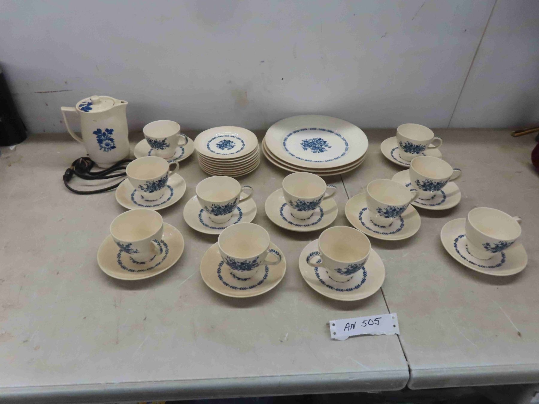 30 pieces royal flourence mayfair dinnerware with electriv ceramic kettle. Some chips on tea cups