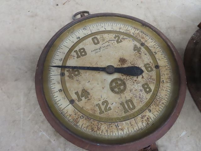 30LB Hanging Scale - Mfg John Chatillion 10"Rd, Brass Receiver Gauge Schaeffer & Budenberg
