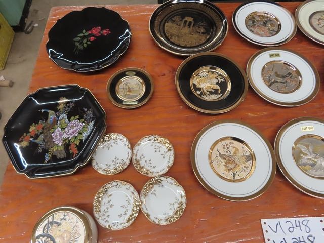 36Pcs - Various - 24Kt Gold Rimmed Plates, Pottery Pitcer, Carnival Glass, Little Bo Peep Dish, Camp