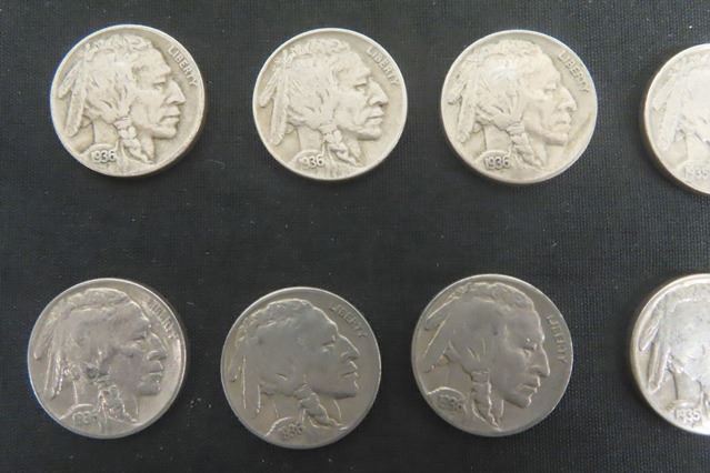 37 Indian Head/ Buffalo 5 cent Coins- USA, 1920's + 30's
