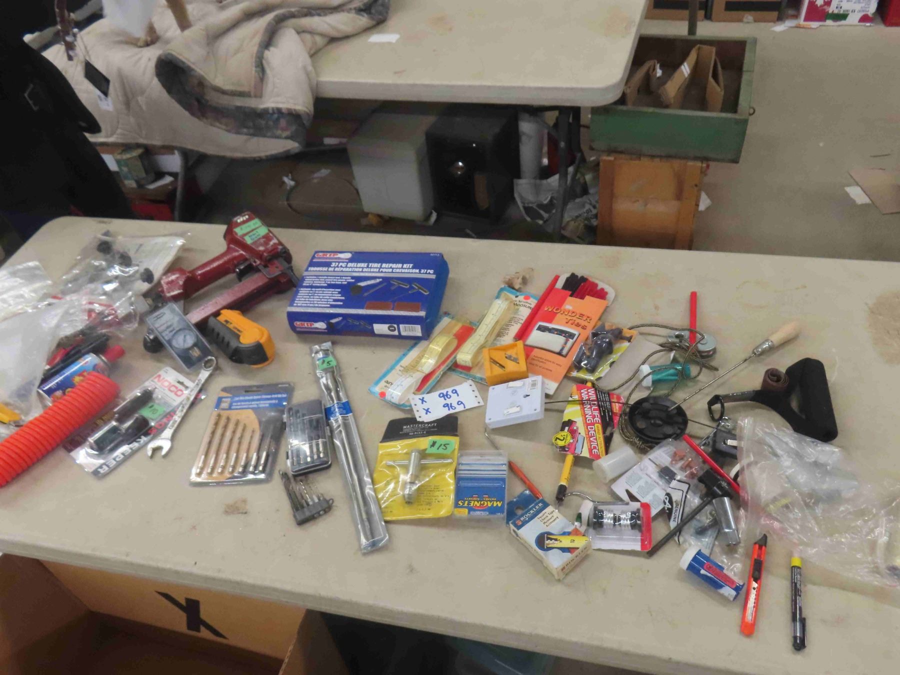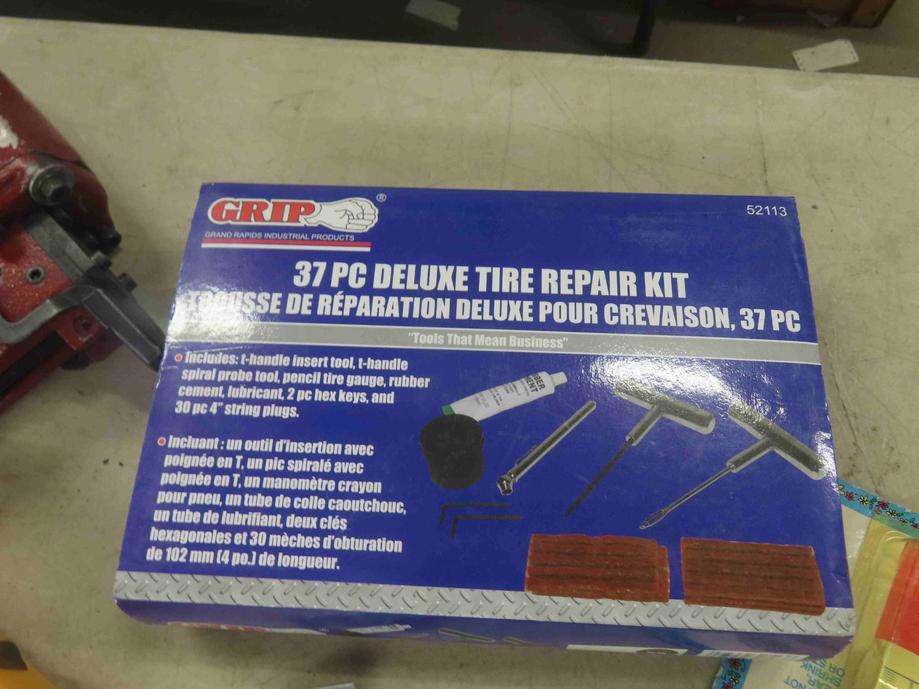 37 Piece Tire Repair Kit, Drill Bits, Air Nailer, Tape Measure, Shop Odds, Plus