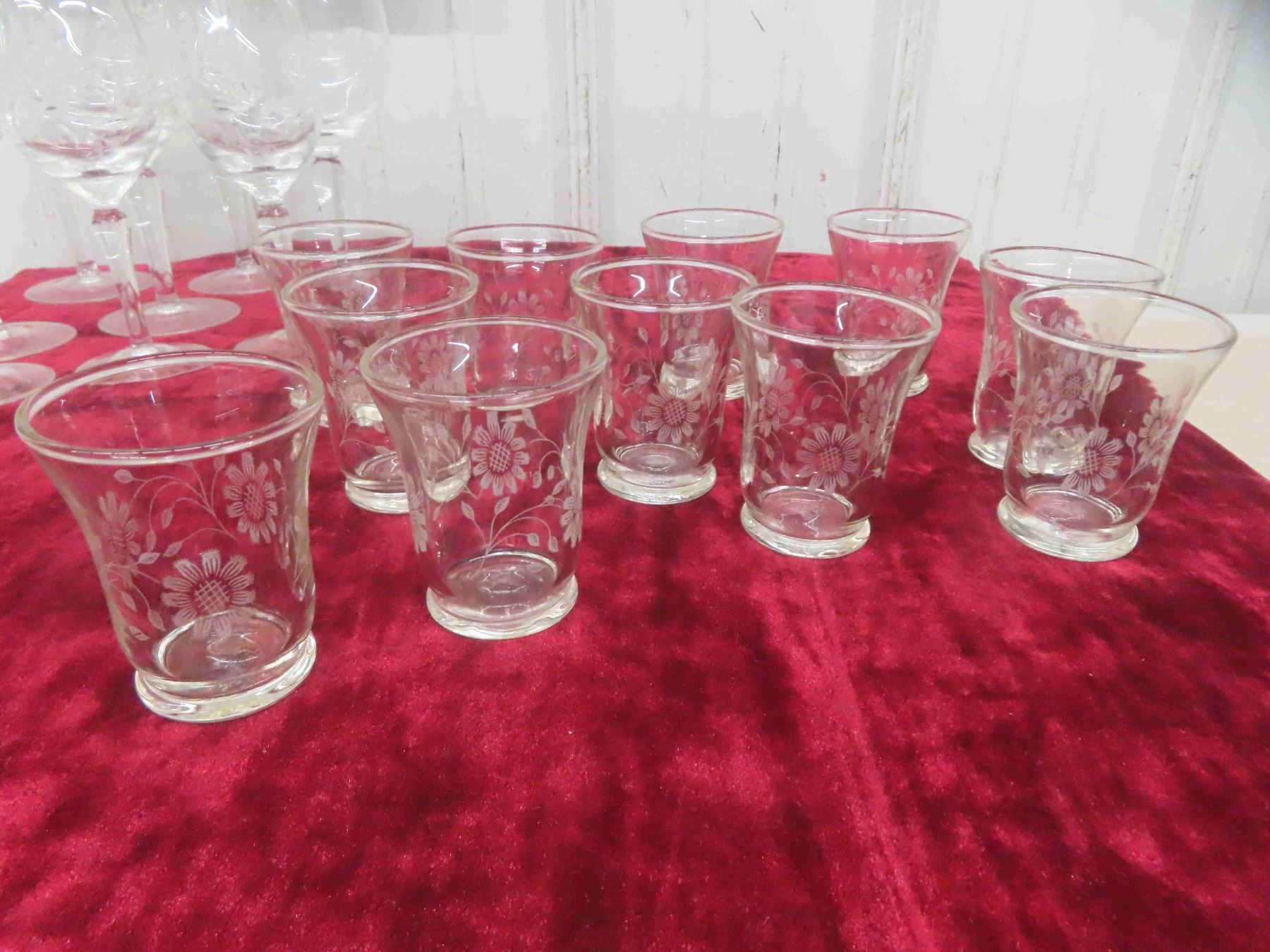 38 Pieces of Pattern Glassware : Wine , Juice Glasses, Coffee Mugs, Cream and Sugar, Plus